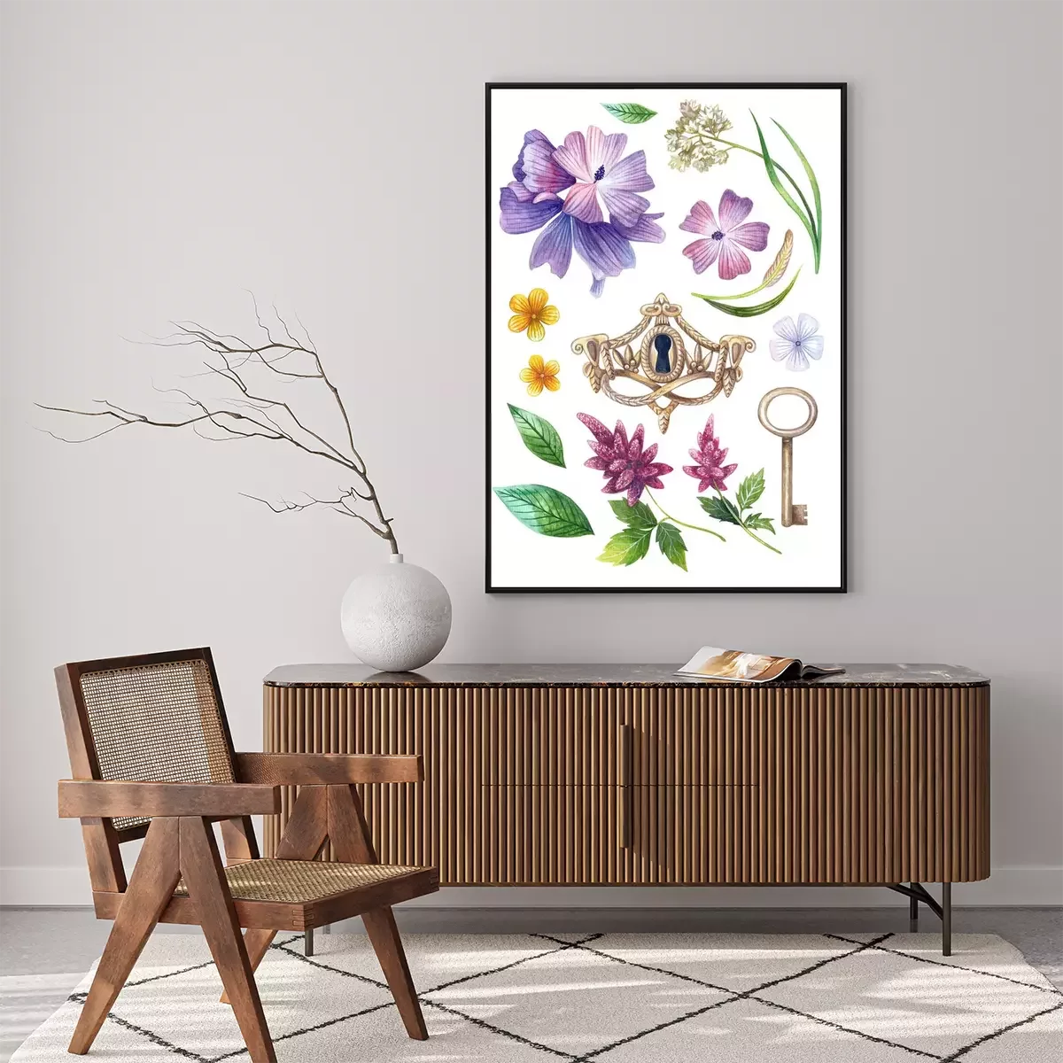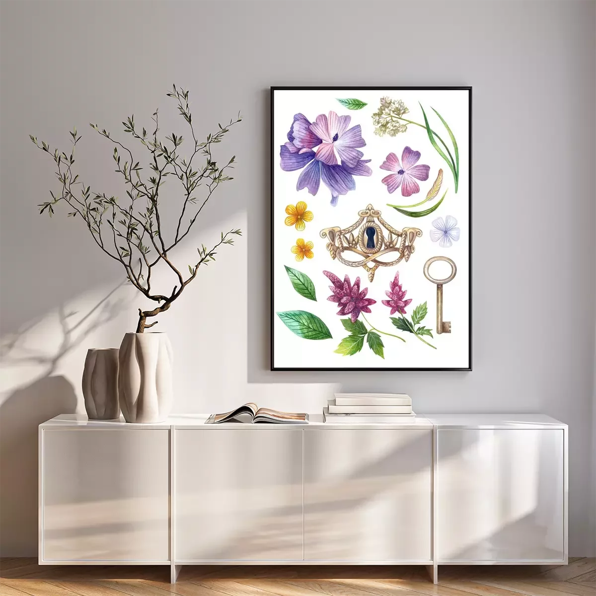 Poster Pflanzen geheimnisvoller Garten Schlüssel und Schloss