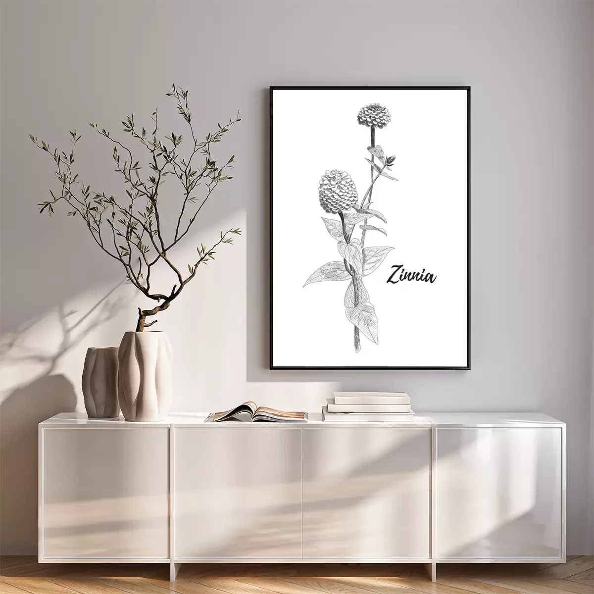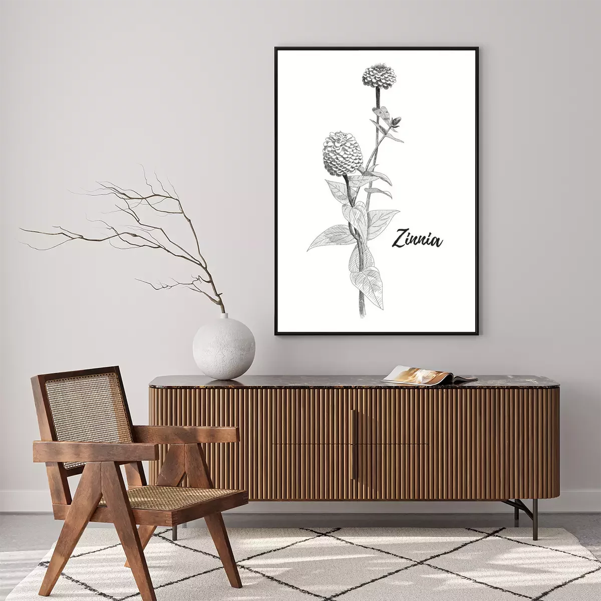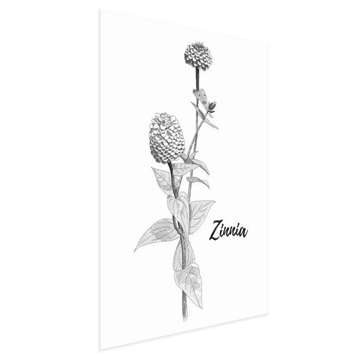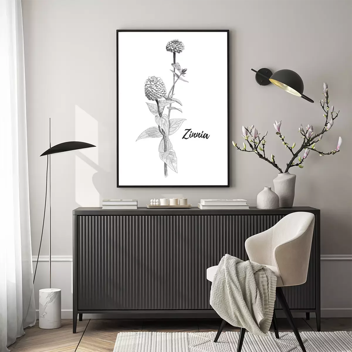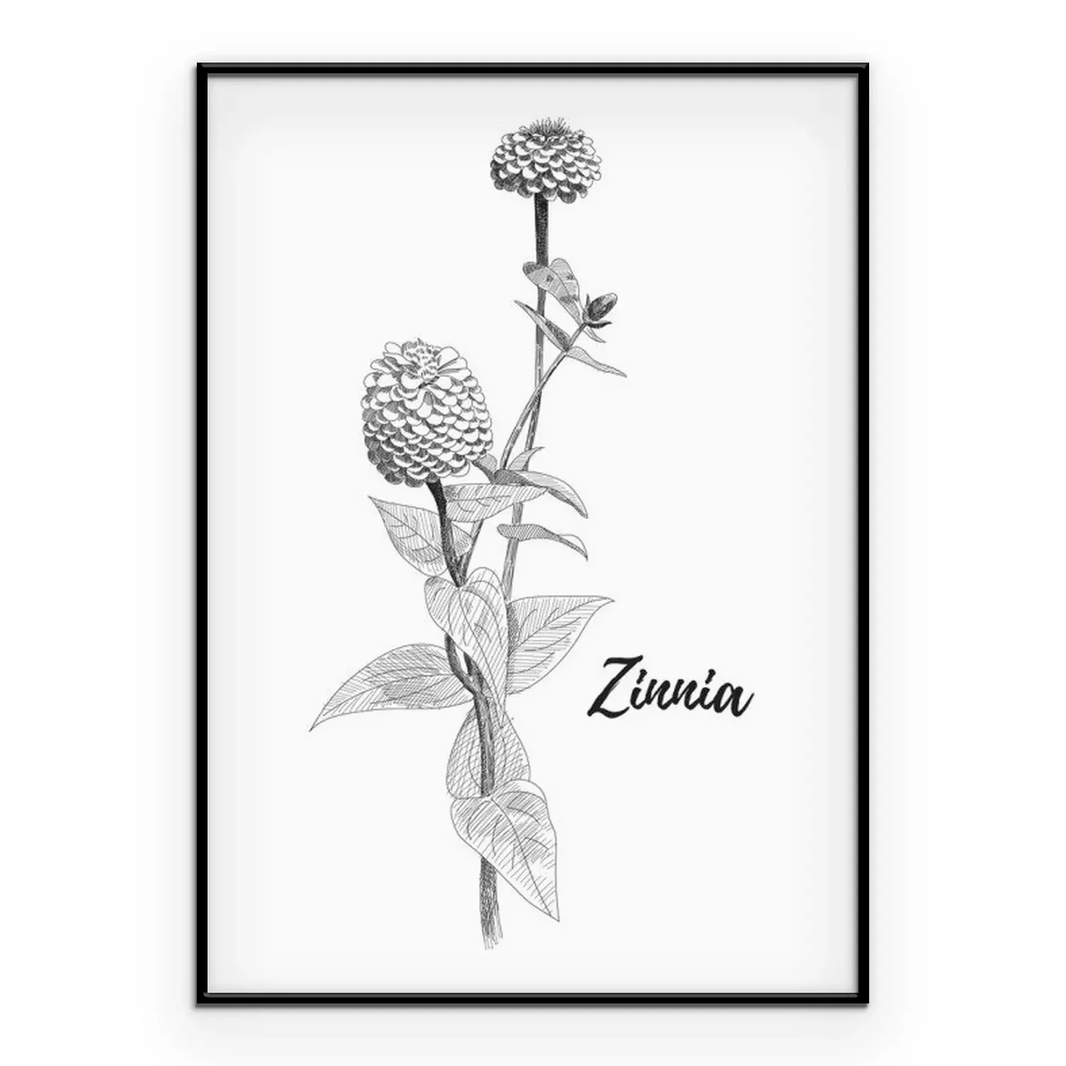 Poster: Pflanzen schwarz-weiße Zeichnung Zinnie