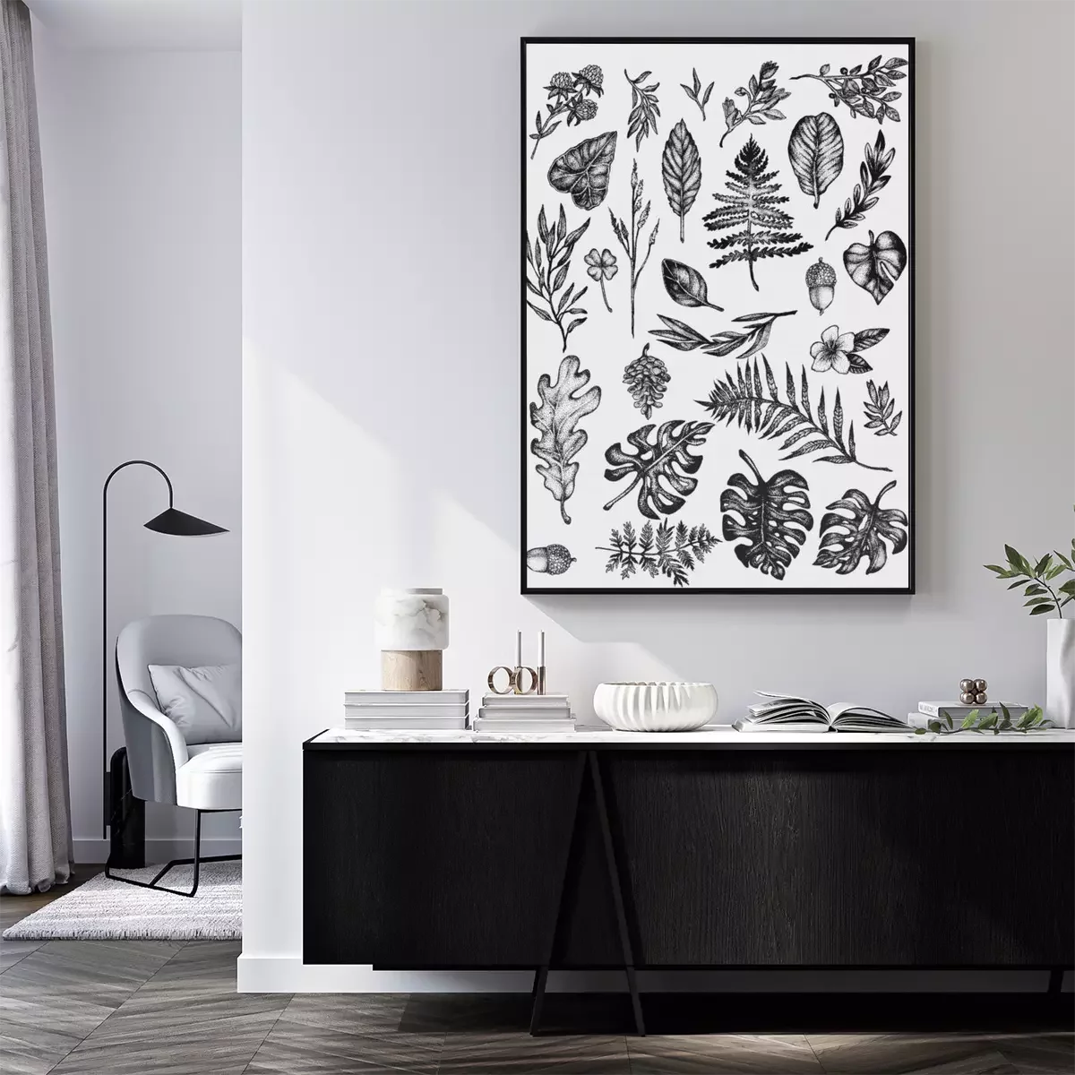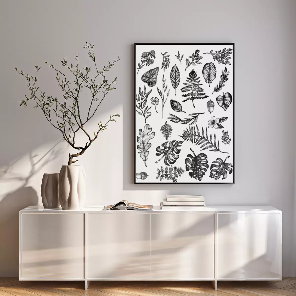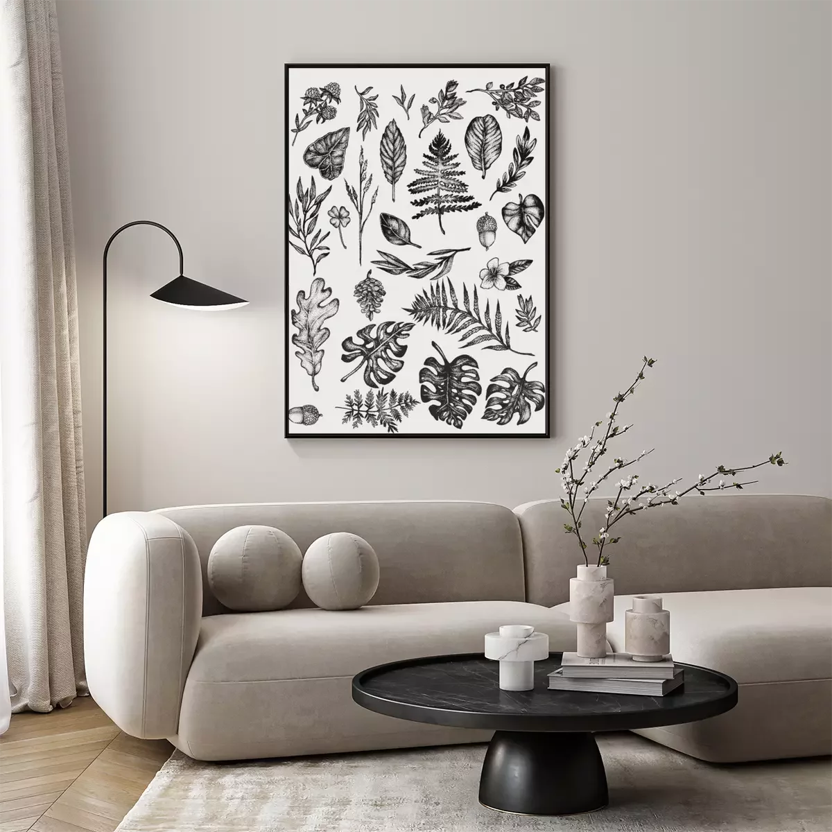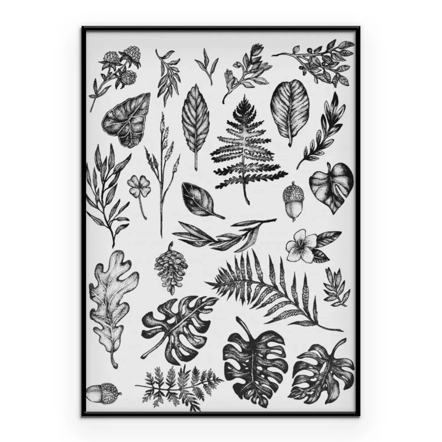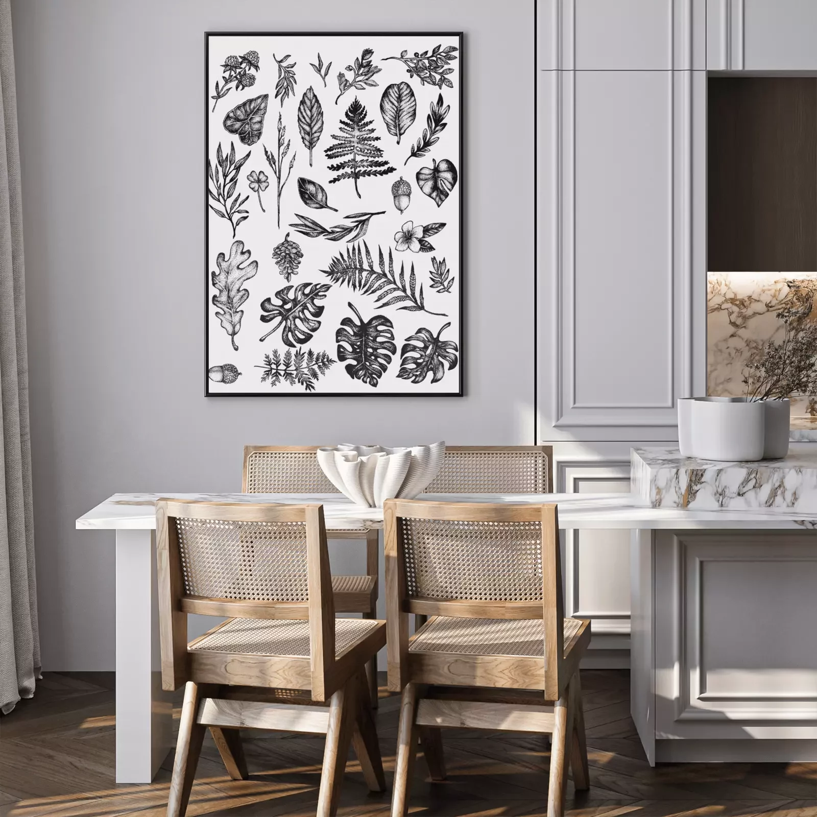 Poster: Pflanzen verschiedene Blätter in Skizze-Ästhetik