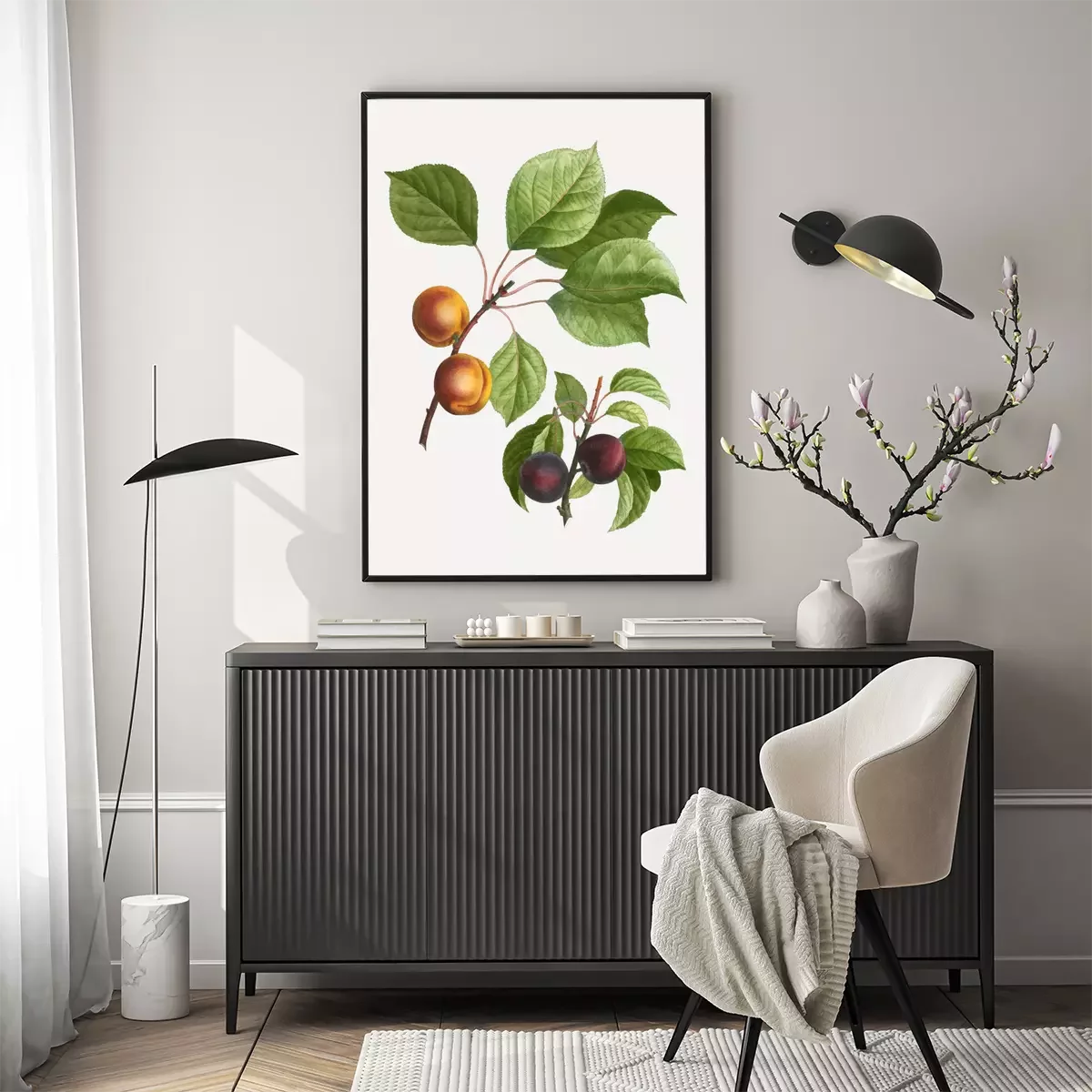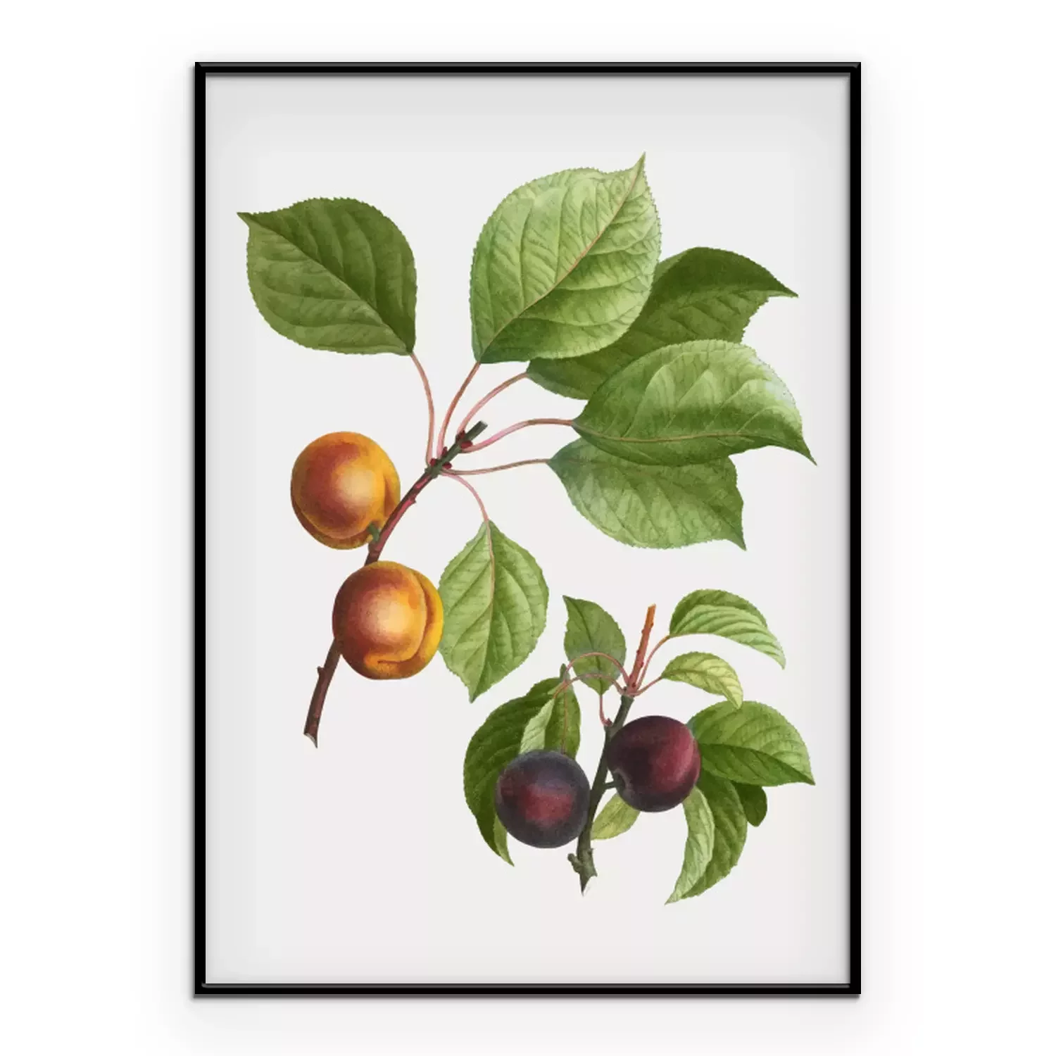 Poster Pflaumen- und Aprikosenzweige nebeneinander
