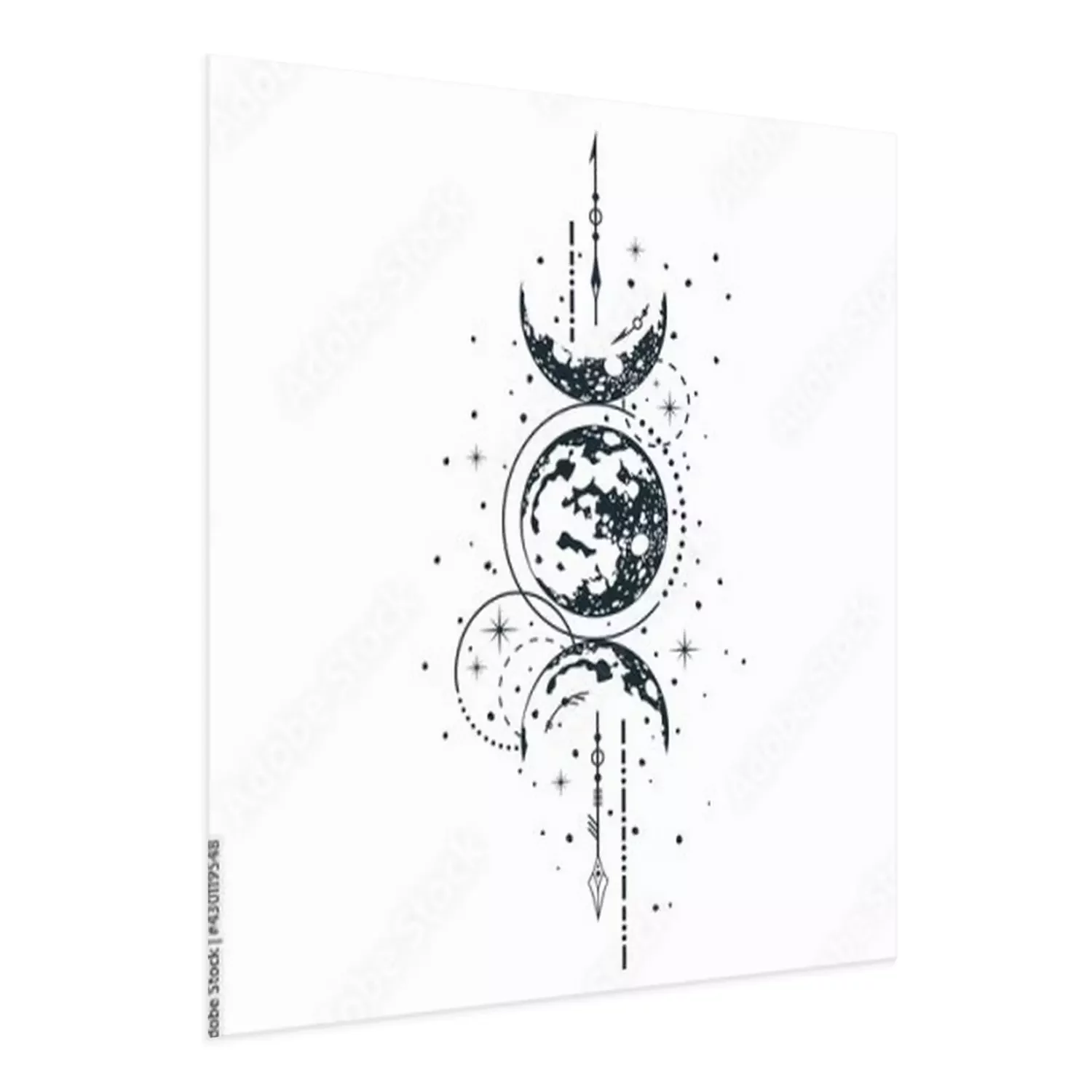 Poster Phasen des Mondes auf einer künstlerischen Skizze