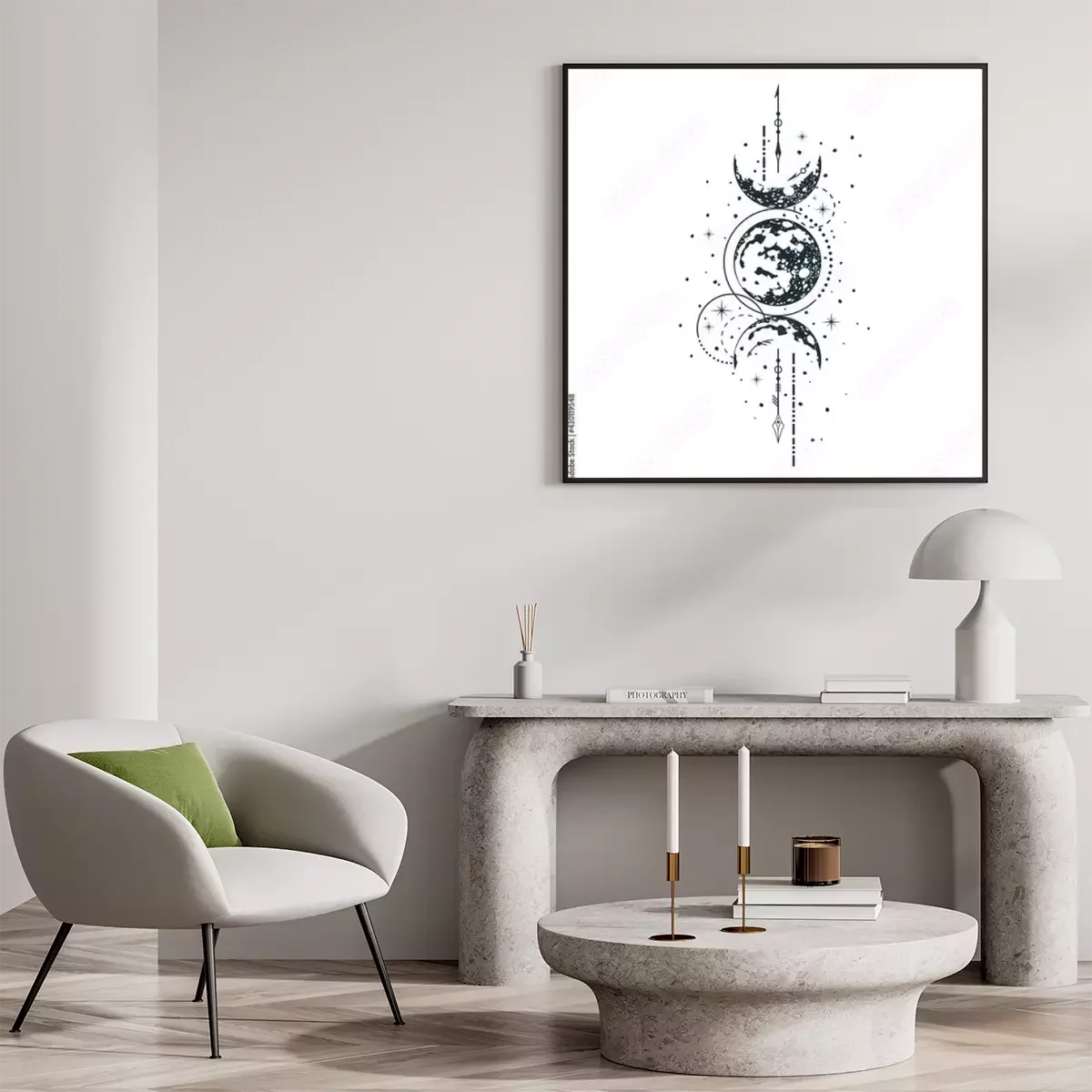 Poster: Phasen des Mondes auf einer künstlerischen Skizze