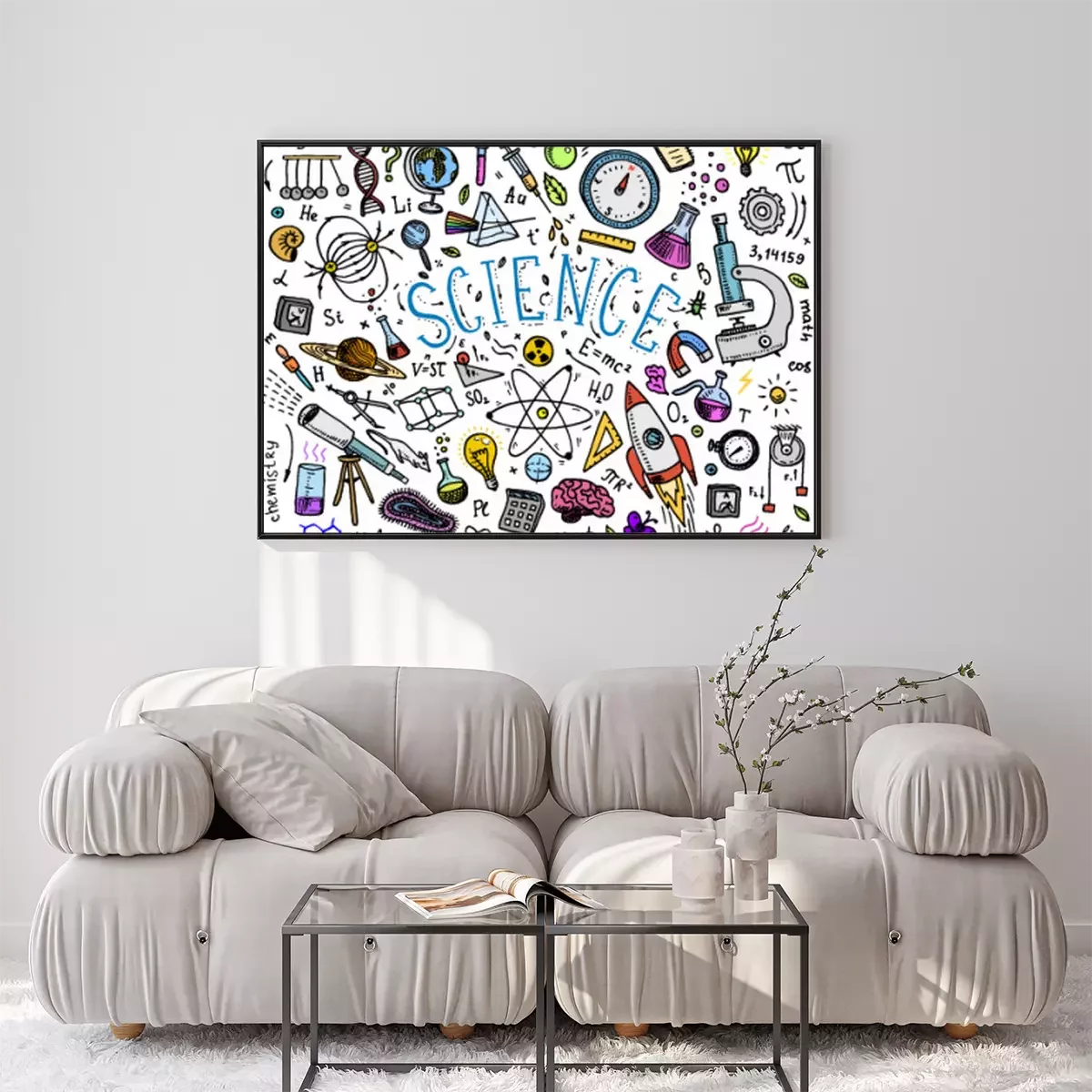 Poster: Physikalische und mathematische Formeln auf einer Tafel