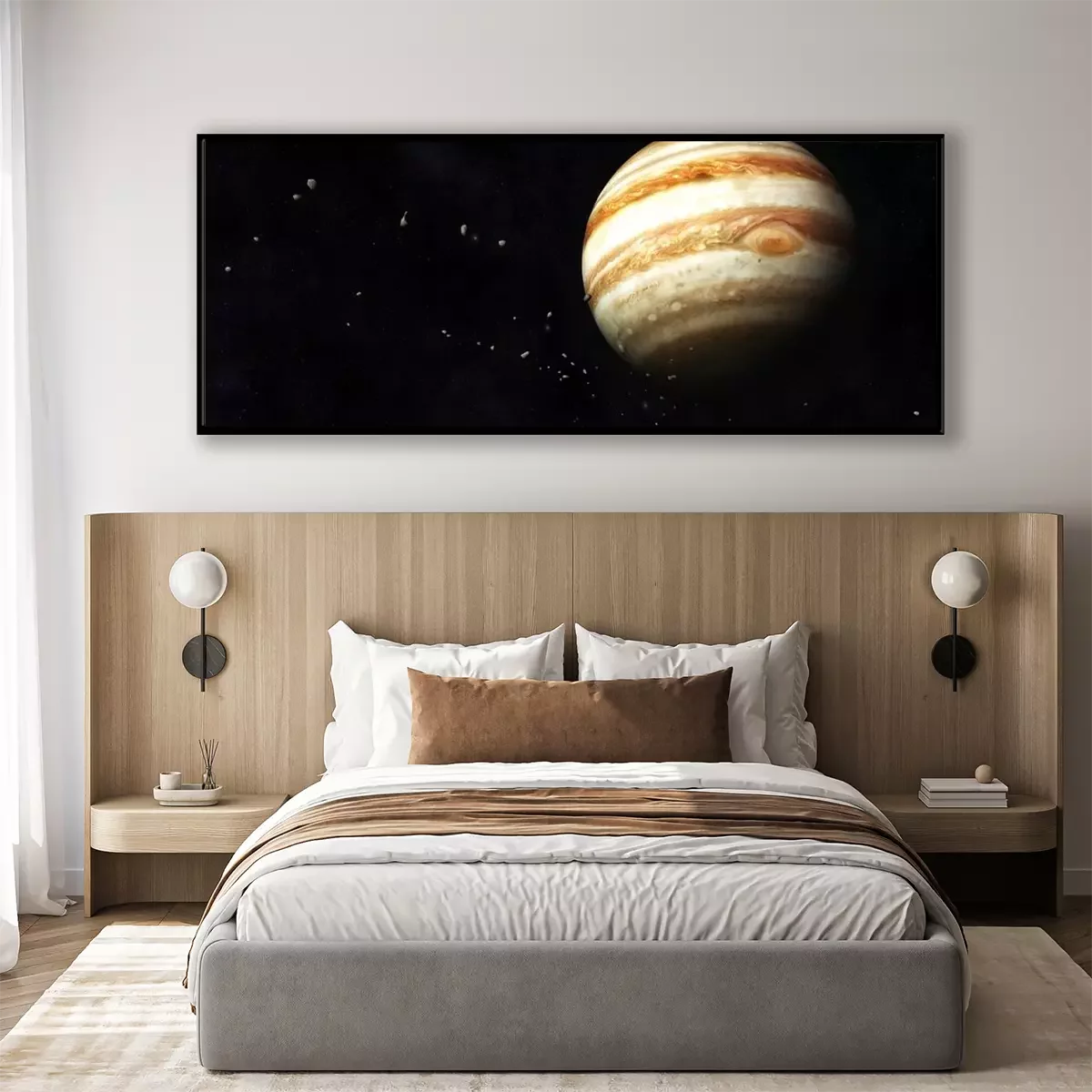 Poster: Planet Jupiter und driftende Asteroiden