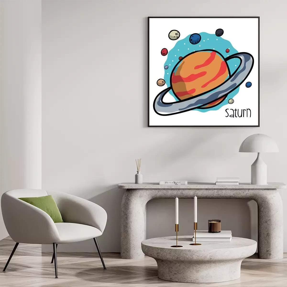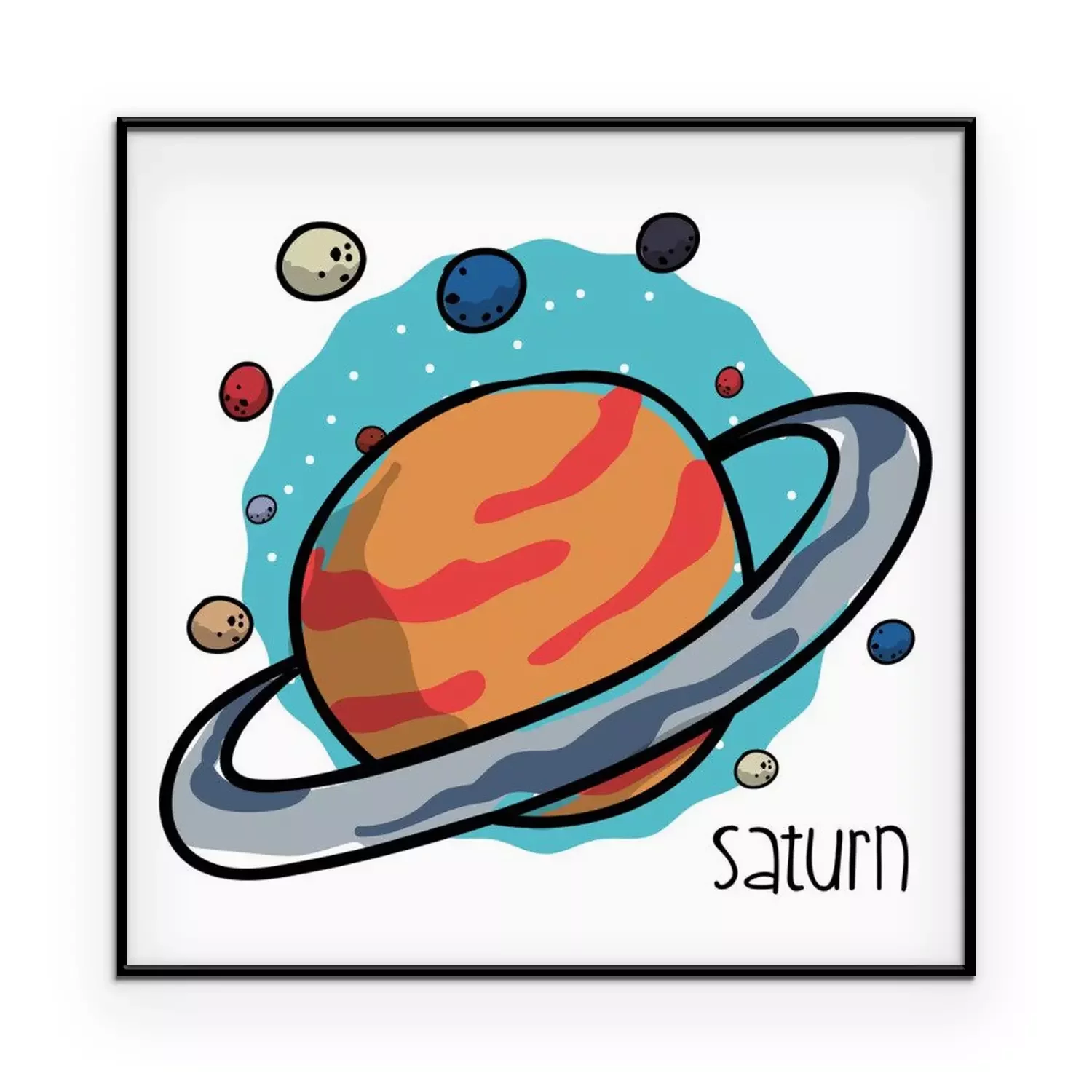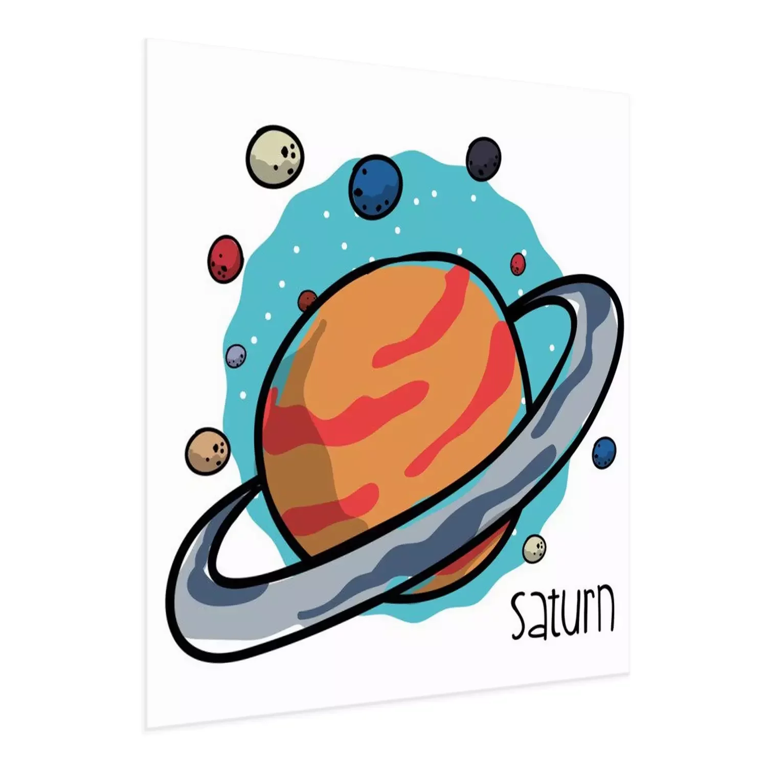 Poster Planeten des Sonnensystems Saturn in einer Cartoon-Version