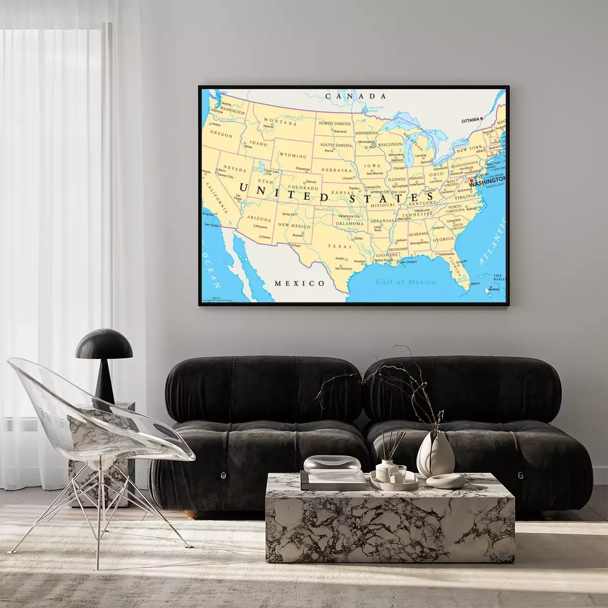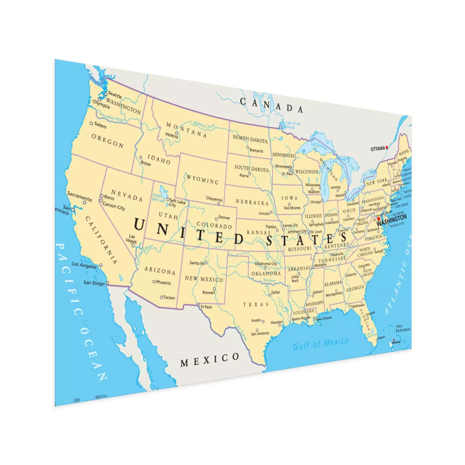 Poster Politische Karte der Vereinigten Staaten in englischer Sprache