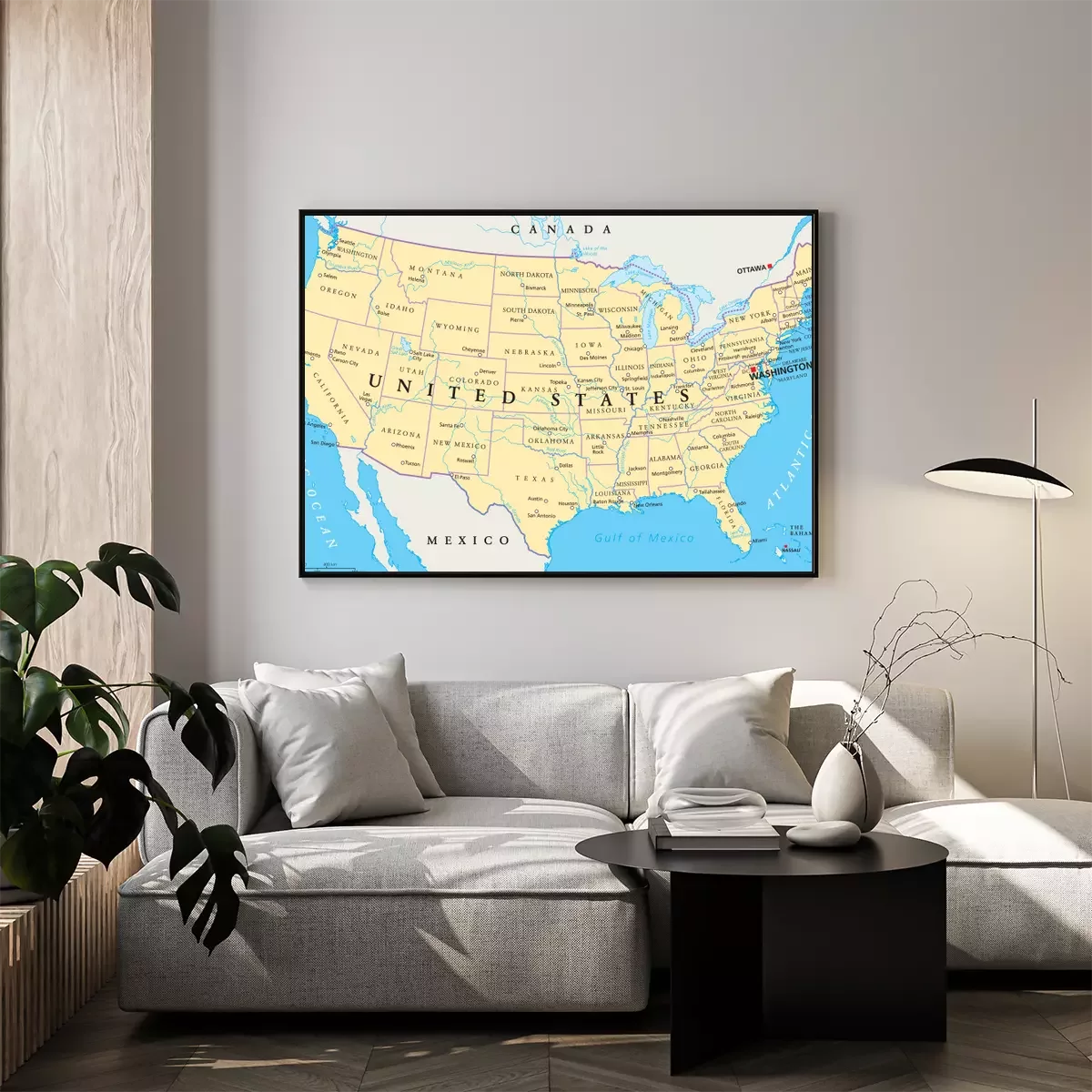 Poster: Politische Karte der Vereinigten Staaten in englischer Sprache