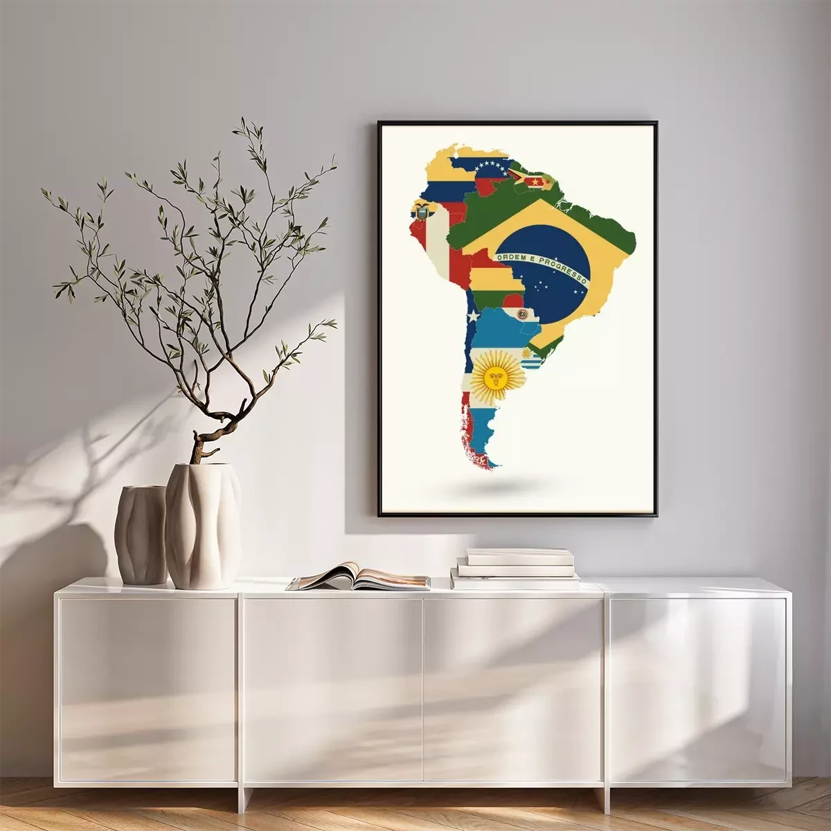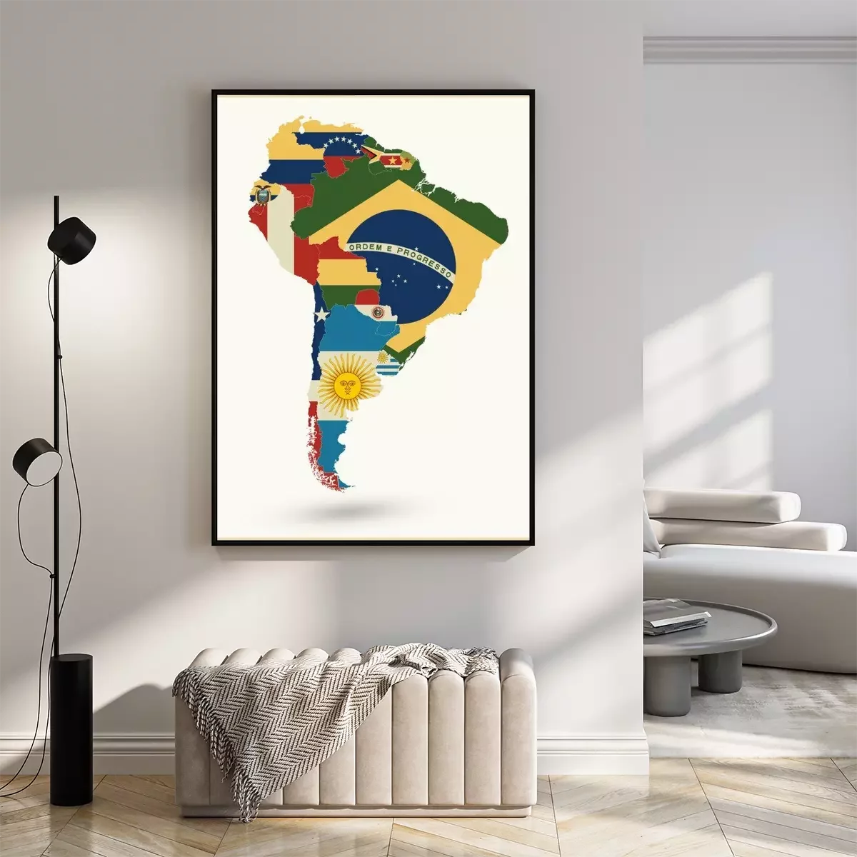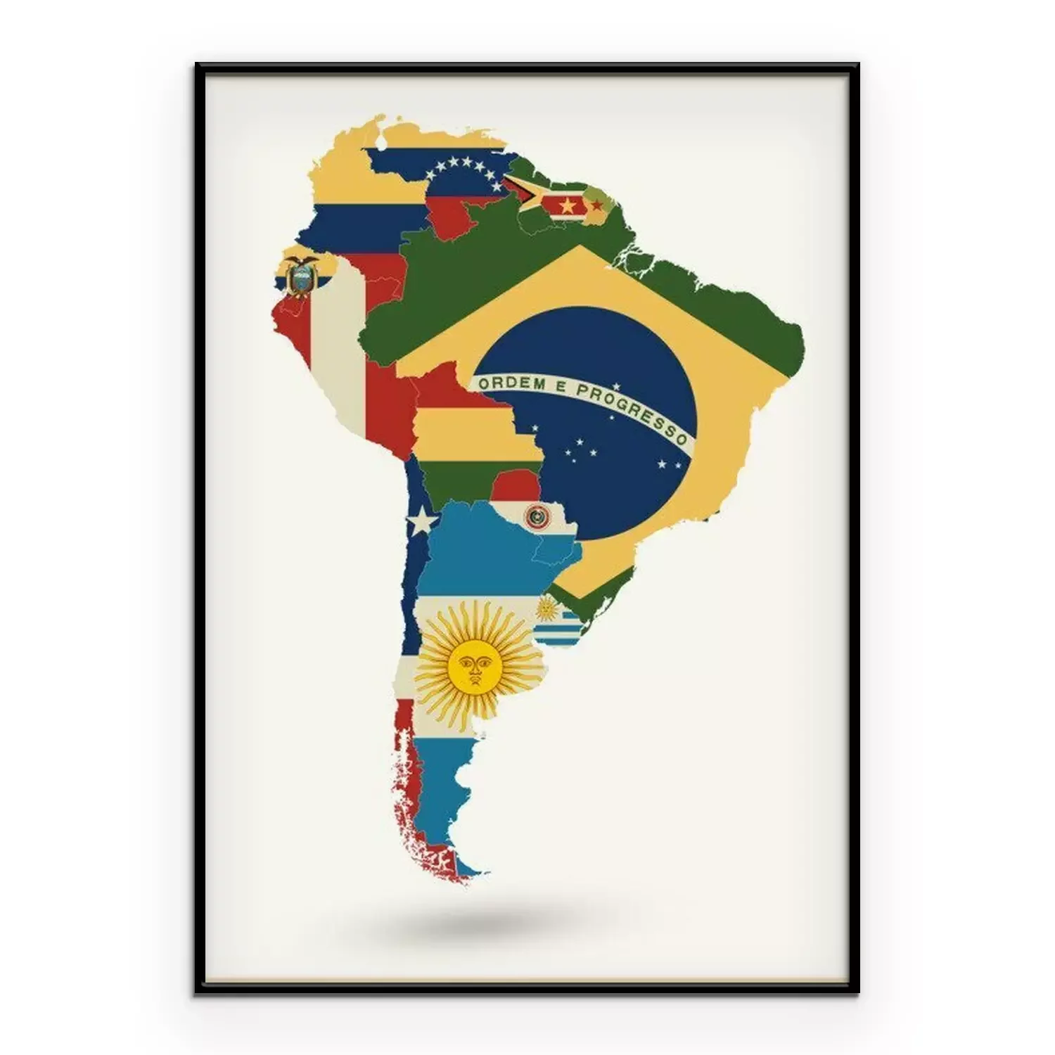Poster: Politische Karte von Südamerika mit Flaggen