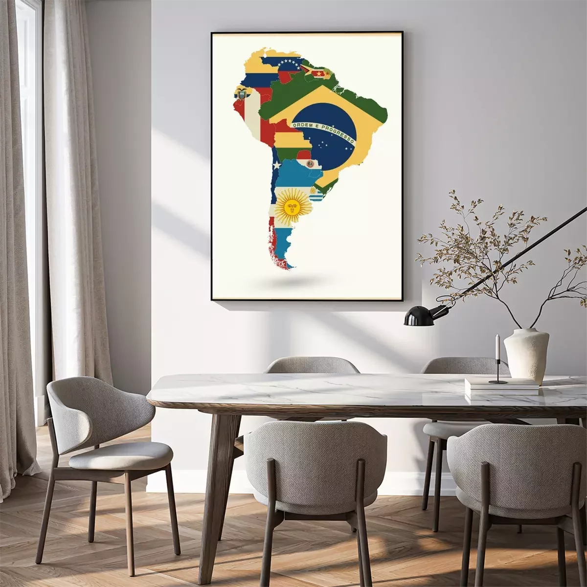 Poster Politische Karte von Südamerika mit Flaggen