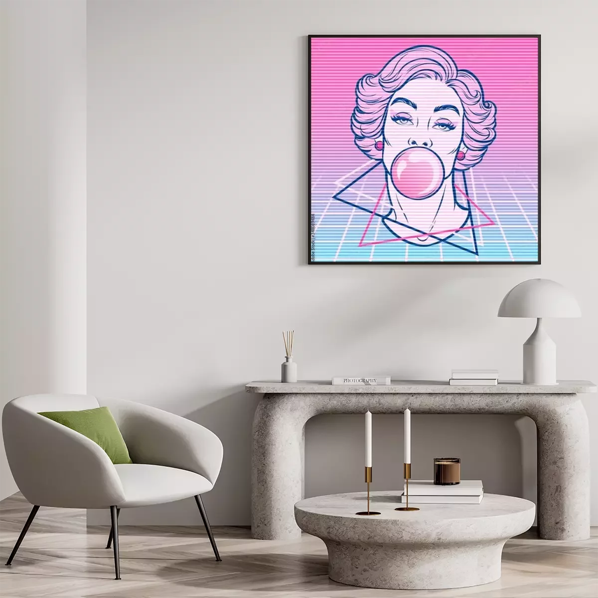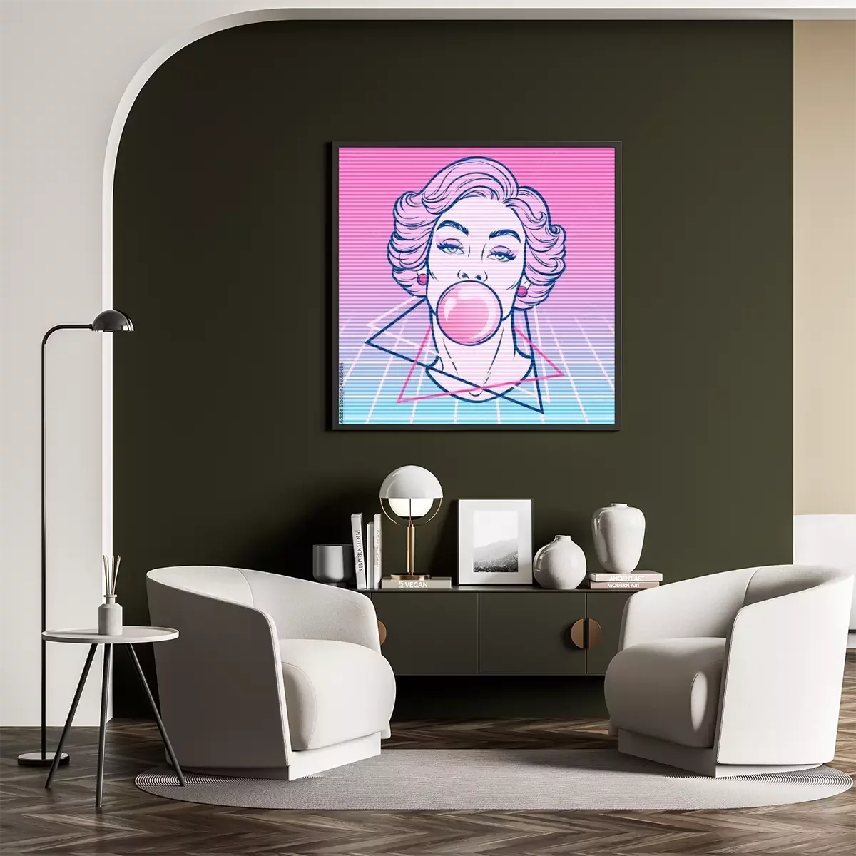 Poster: Pop-Art-Grafik einer Frau mit Kaugummi