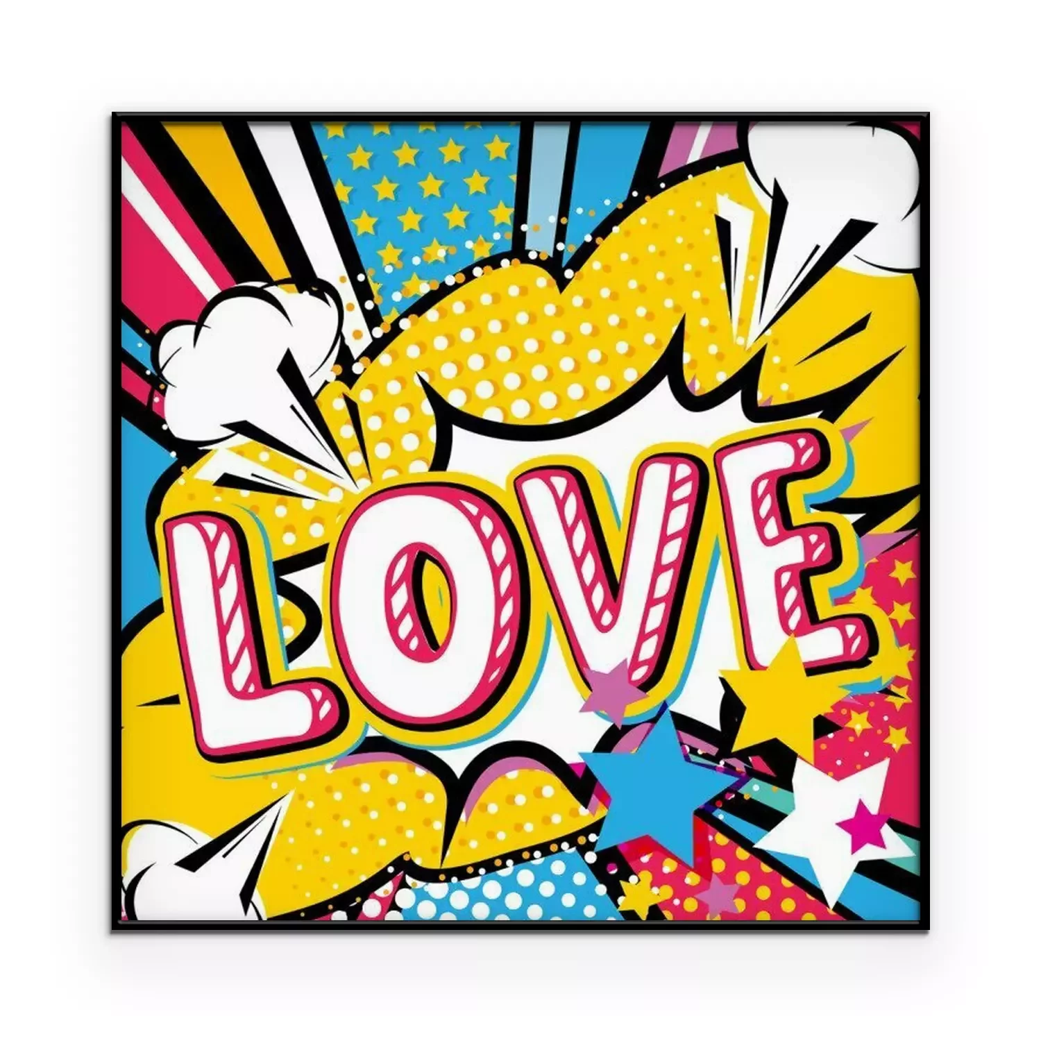 Poster Popkunst Liebe zitieren Art. Bang, Explosion dekorative Halbton-Poster-Vorlage Vektor-Illustration.