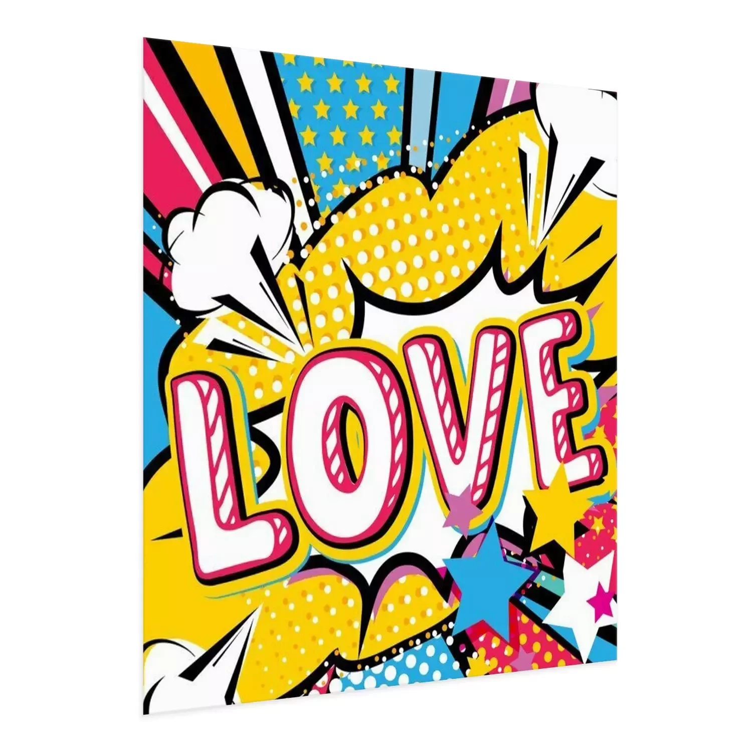 Poster: Popkunst Liebe zitieren Art. Bang, Explosion dekorative Halbton-Poster-Vorlage Vektor-Illustration.