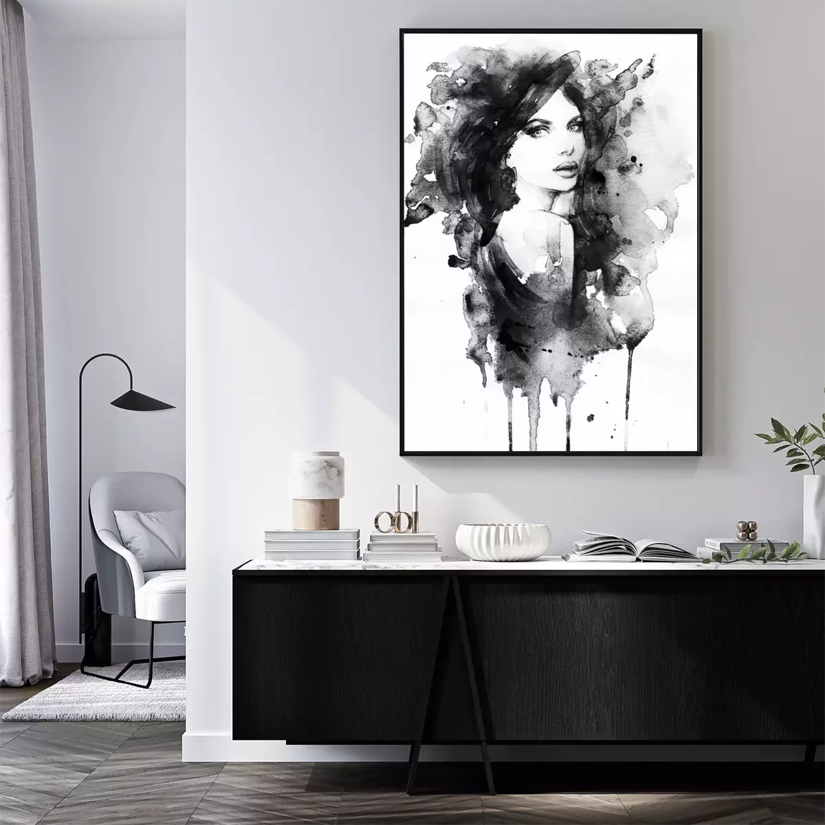 Poster: Porträt einer Frau in Aquarell-Ästhetik