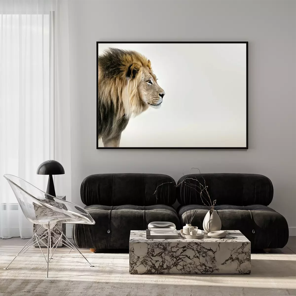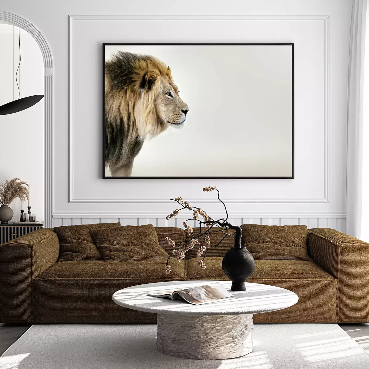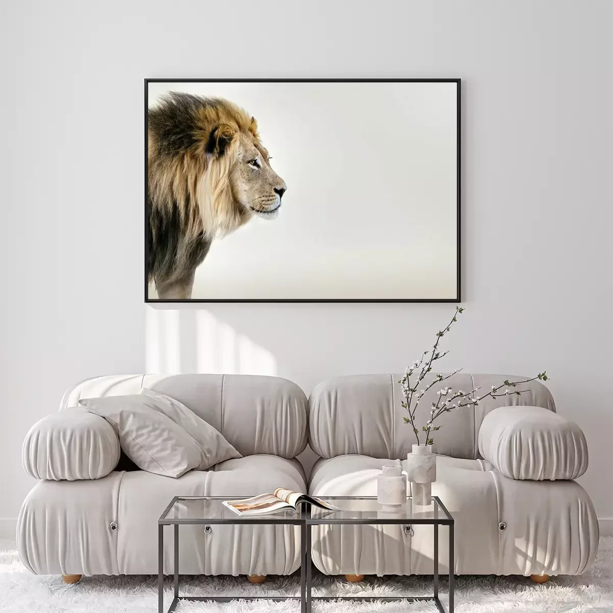 Poster: Porträt eines Löwen auf beigem Hintergrund