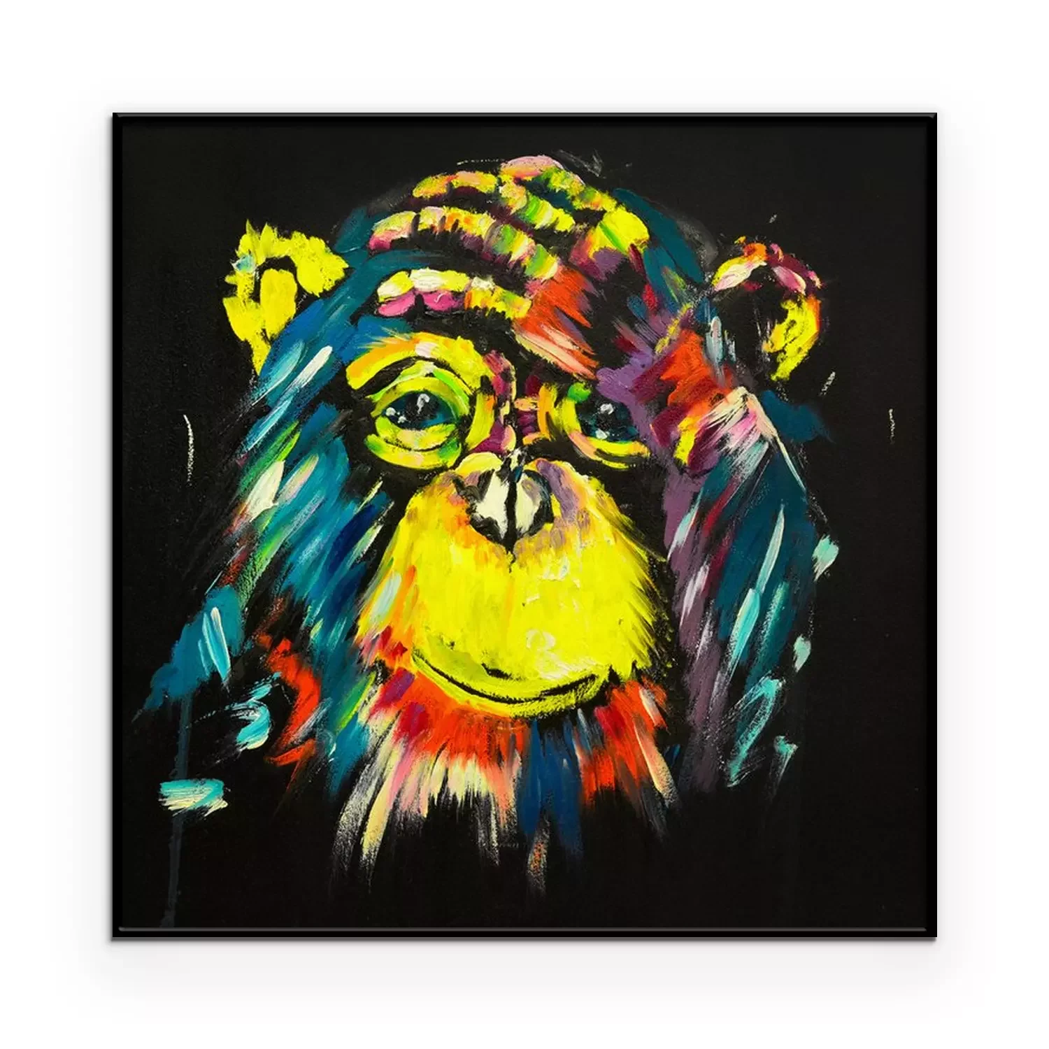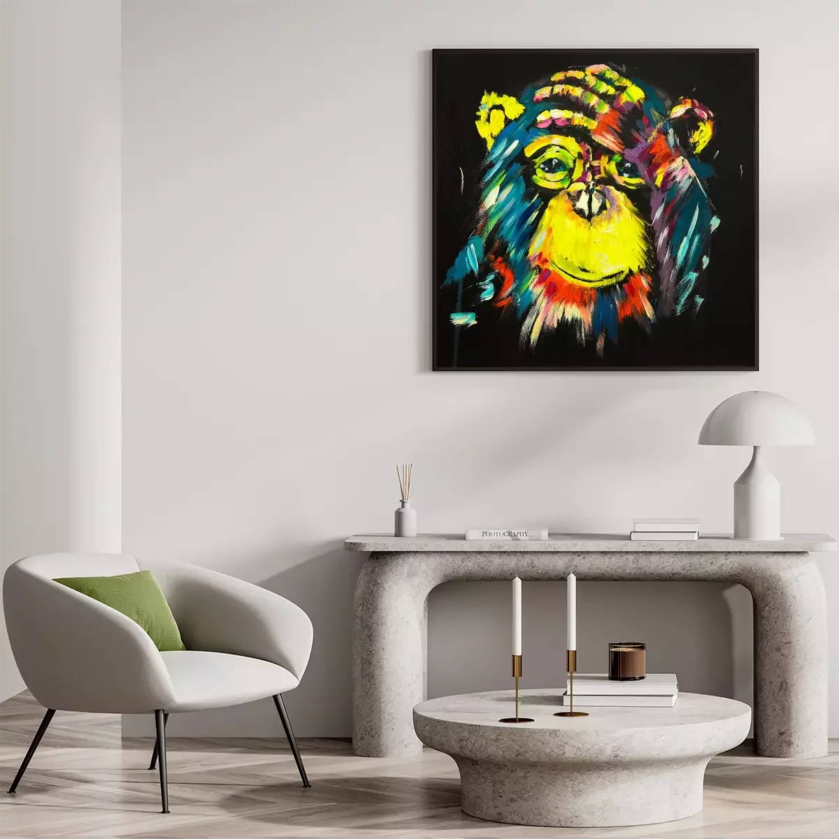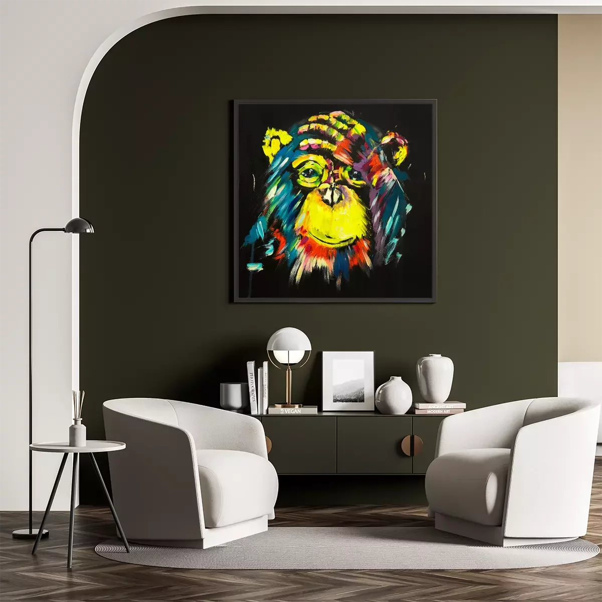 Poster: Porträt mit Affen gemalt auf schwarzem Hintergrund