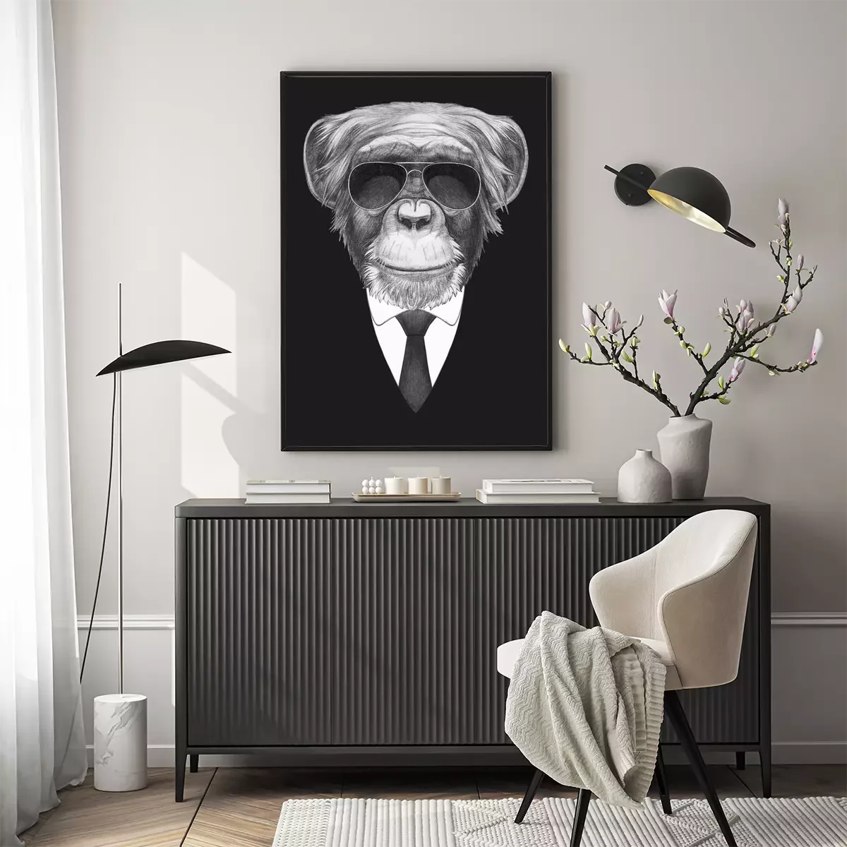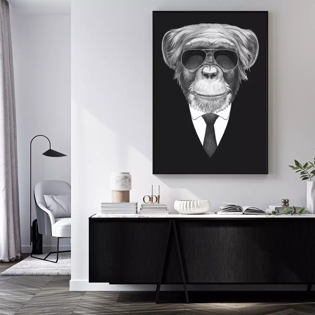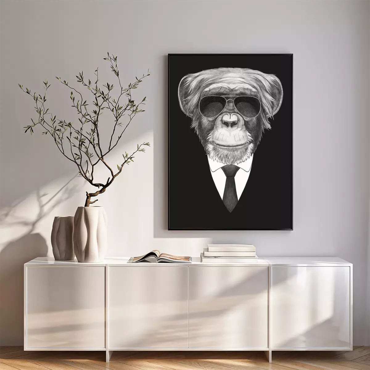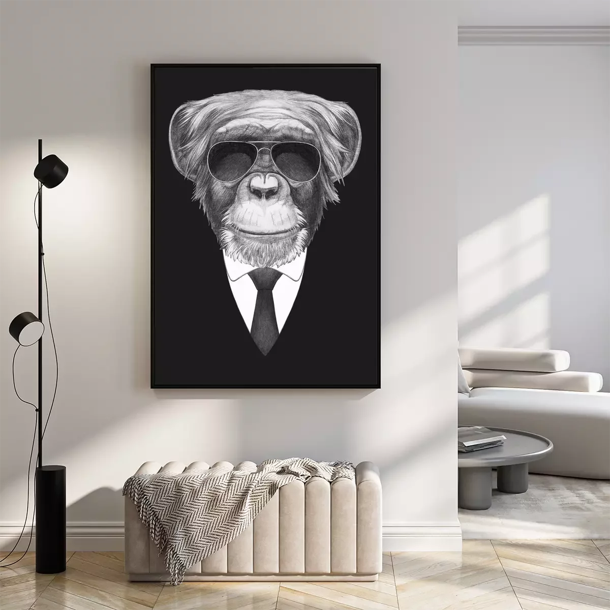Poster: Porträt mit Affen im Anzug