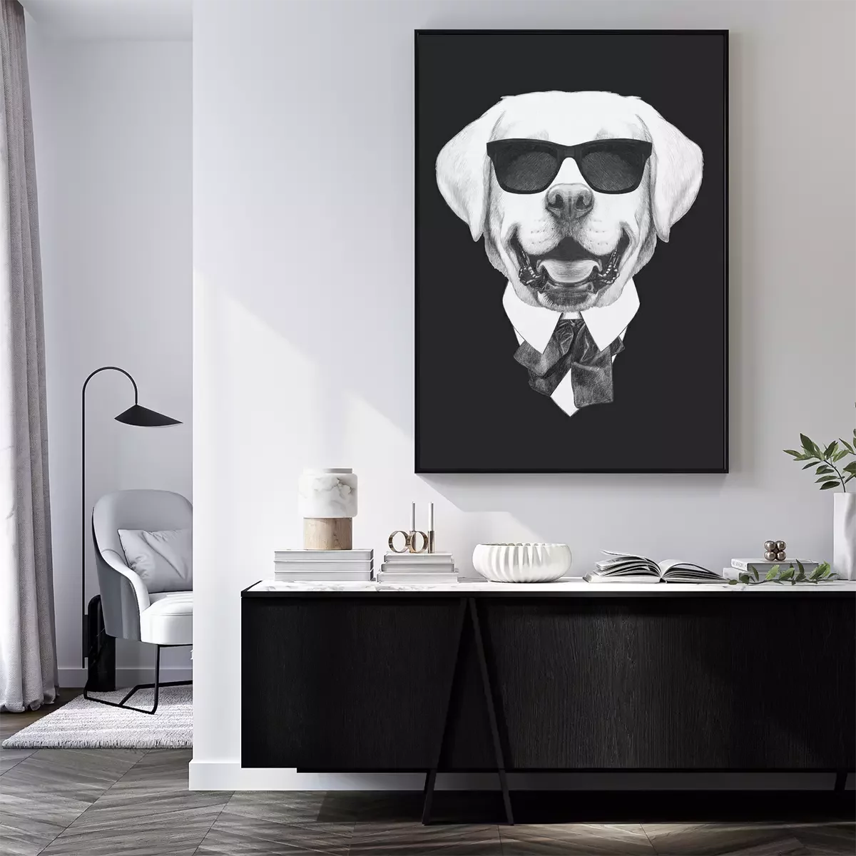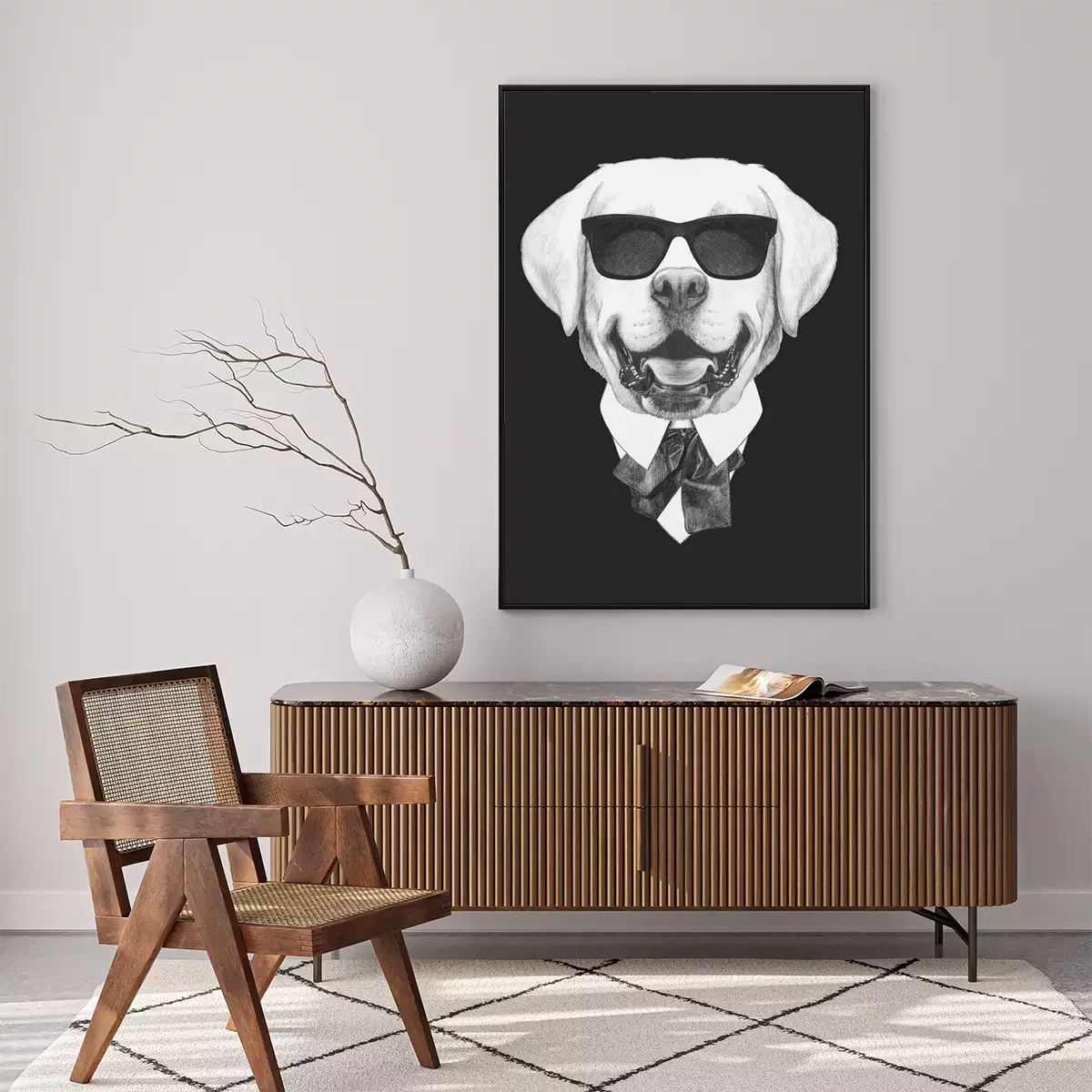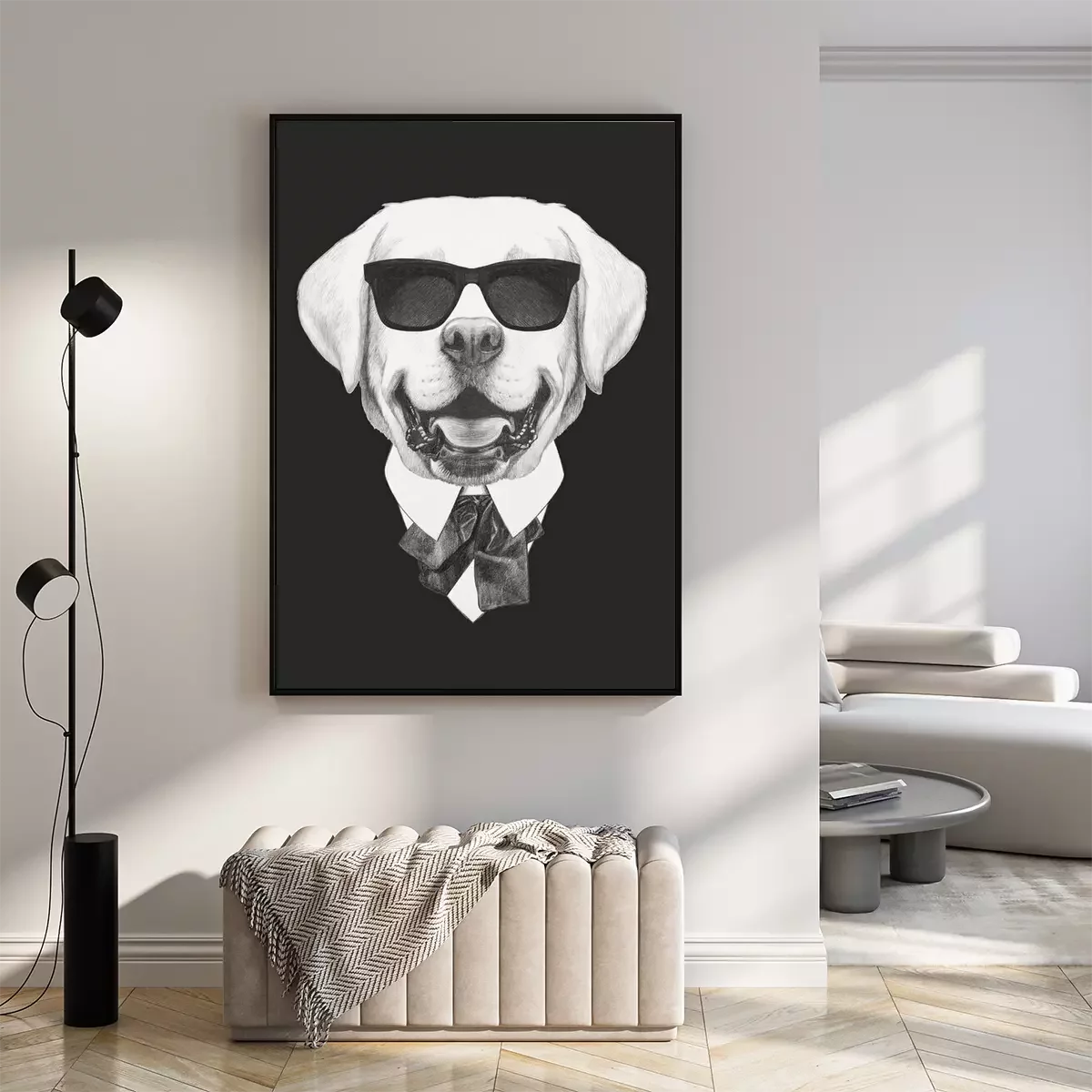 Poster Porträt von Labrador in Anzug. Hand gezeichnete Abbildung.