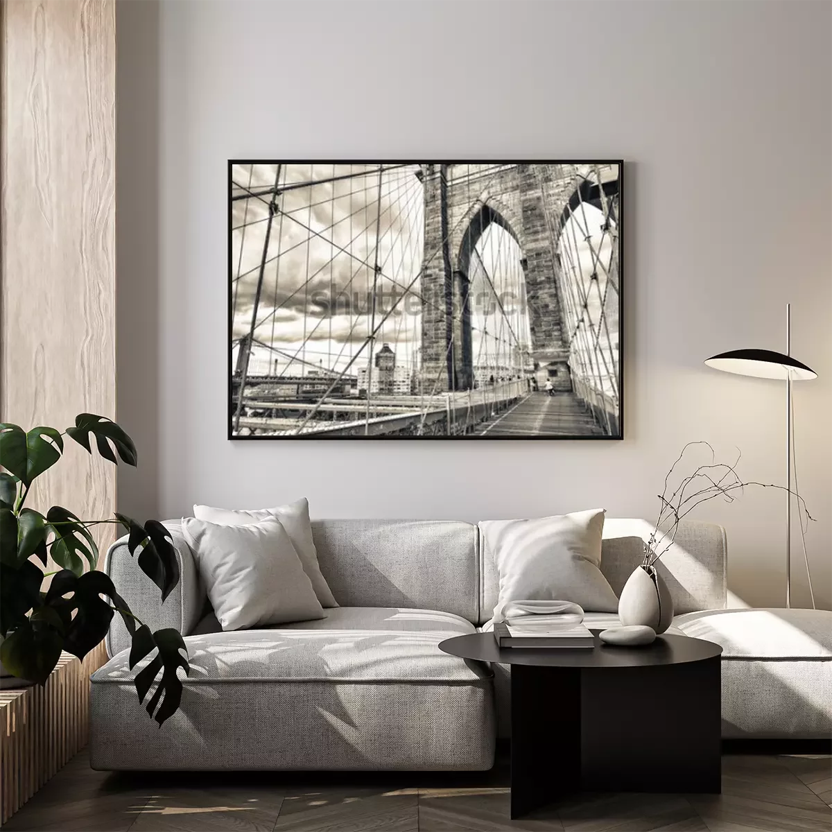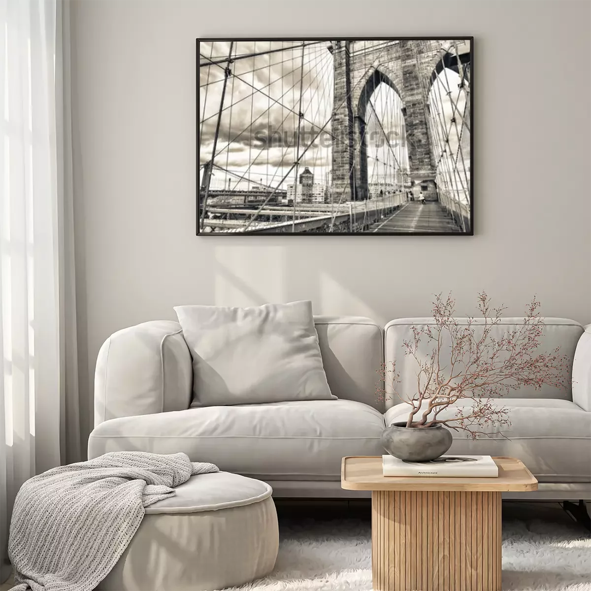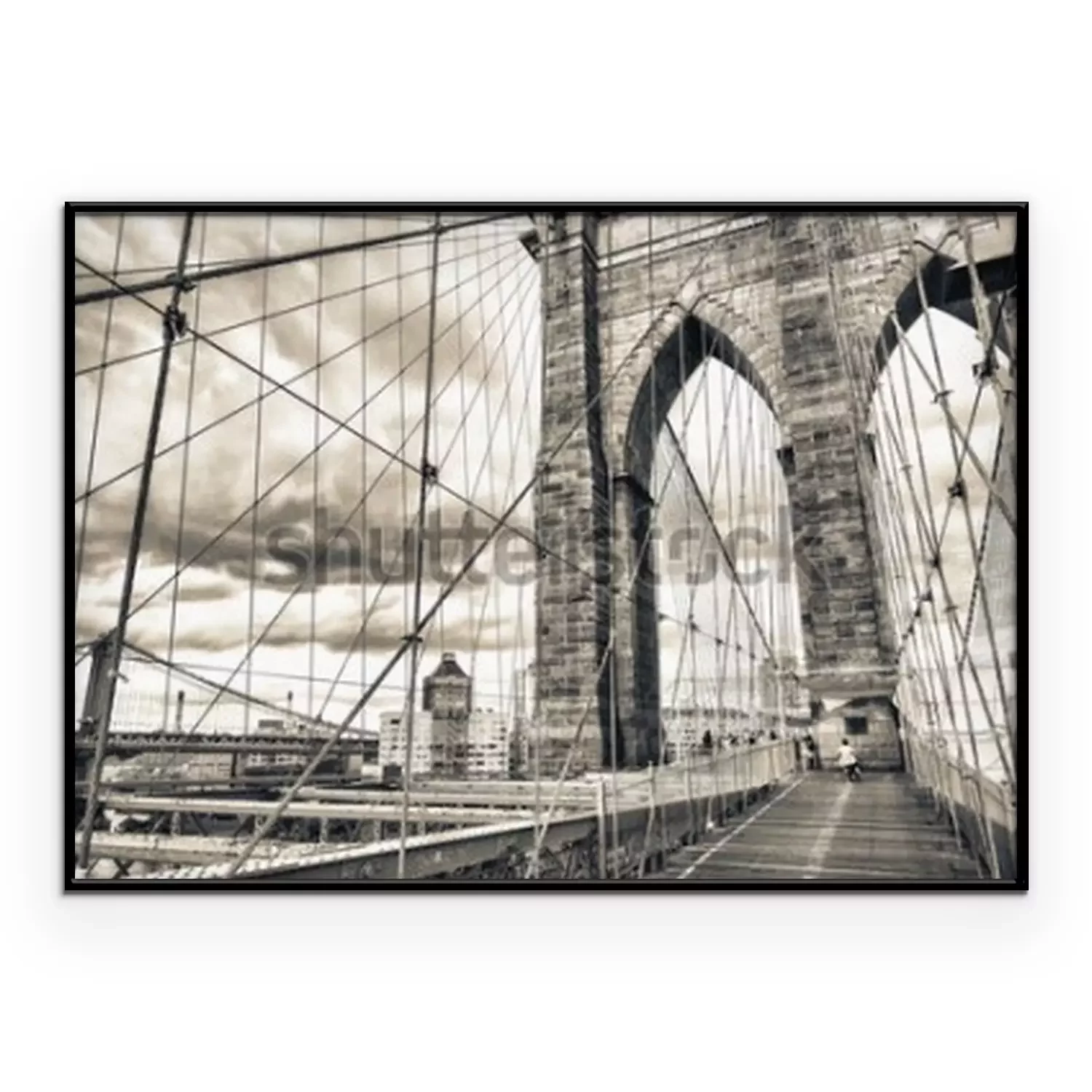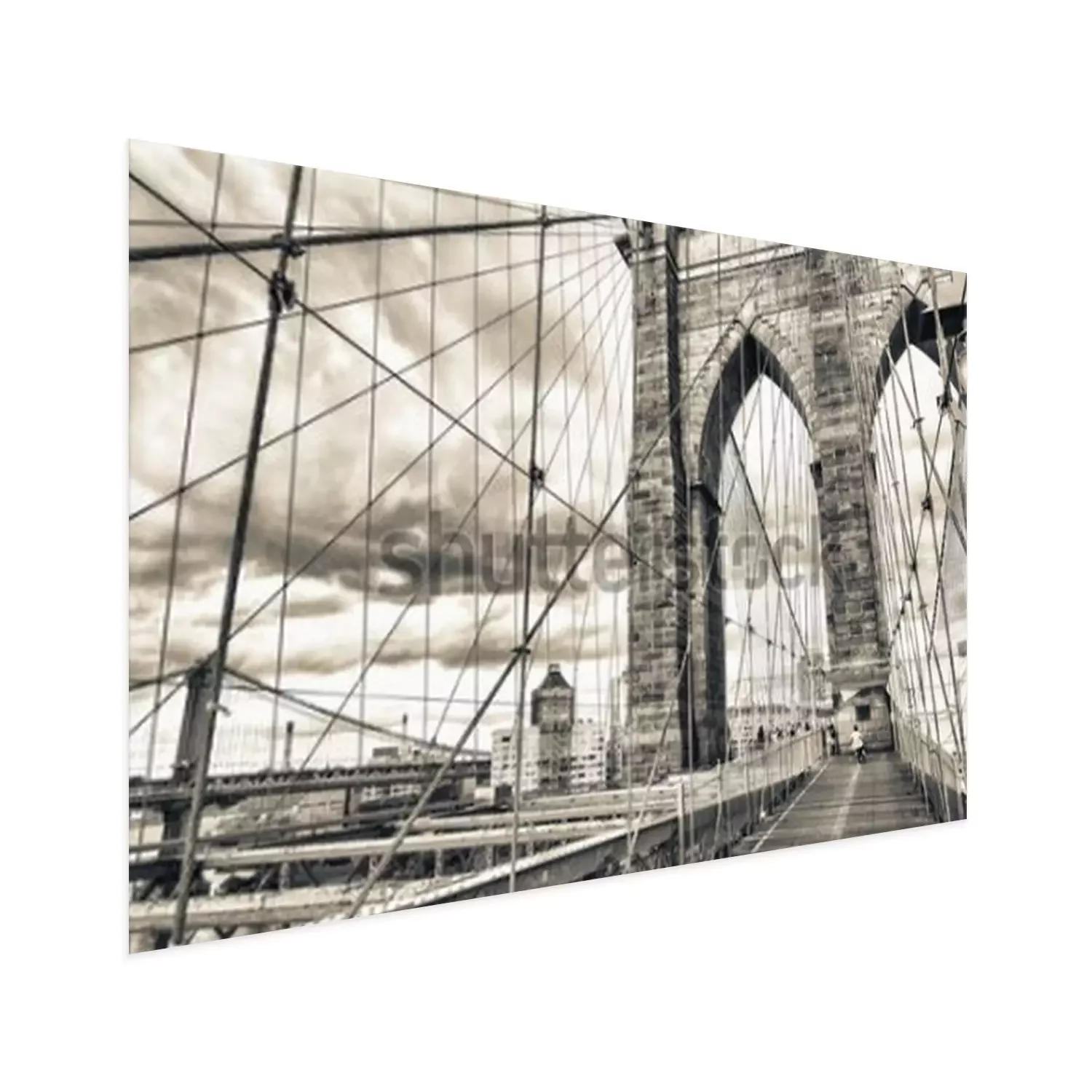 Poster Prächtige Struktur der Brooklyn Bridge mit Sonnenuntergangshimmel - NYC