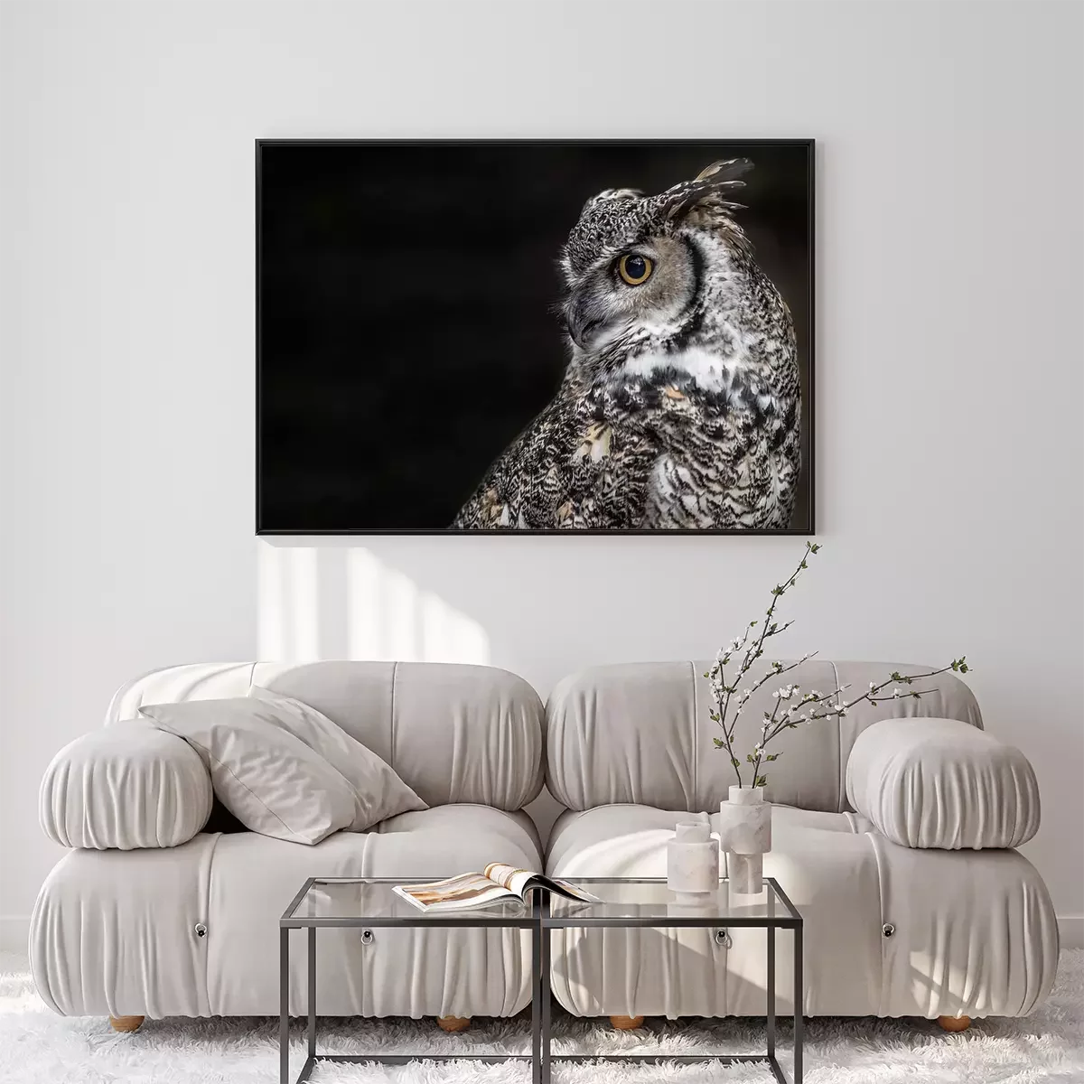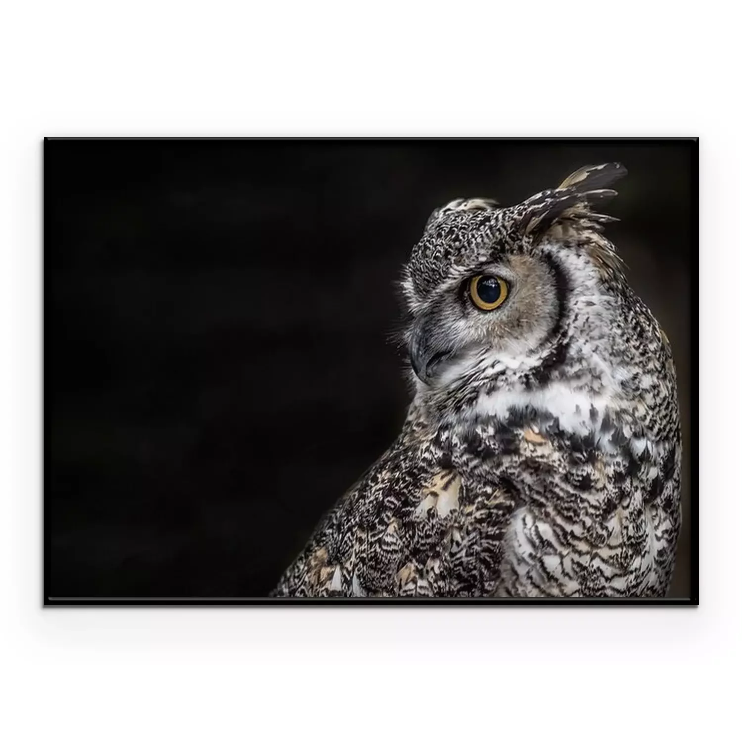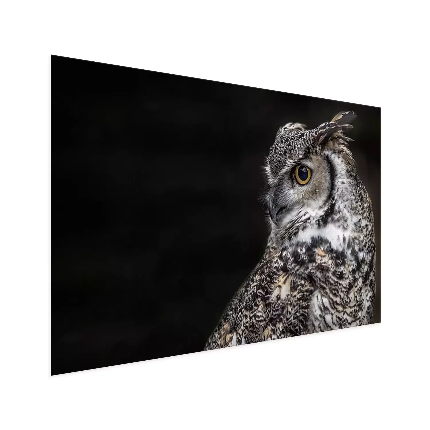 Poster: Profil eines Waldkauzes auf schwarzem Hintergrund