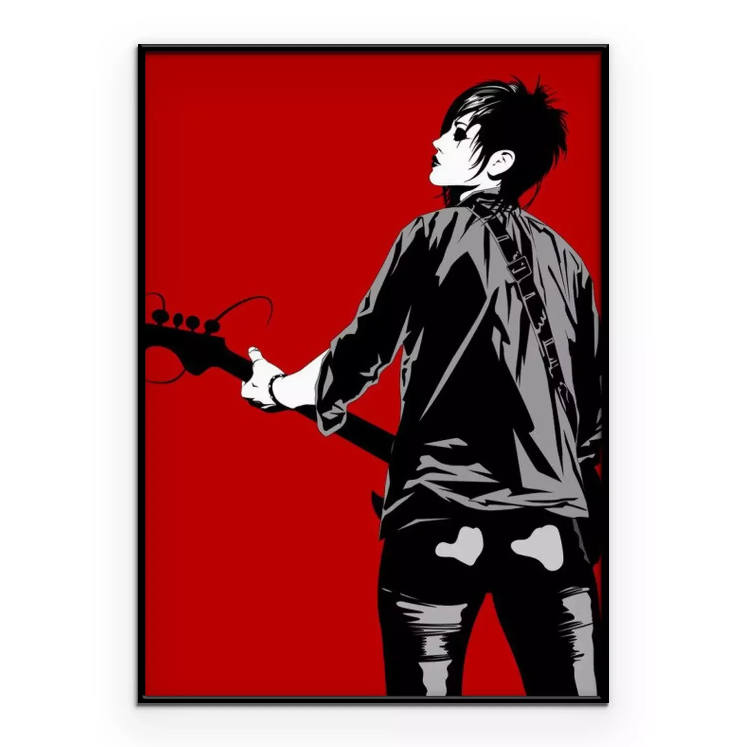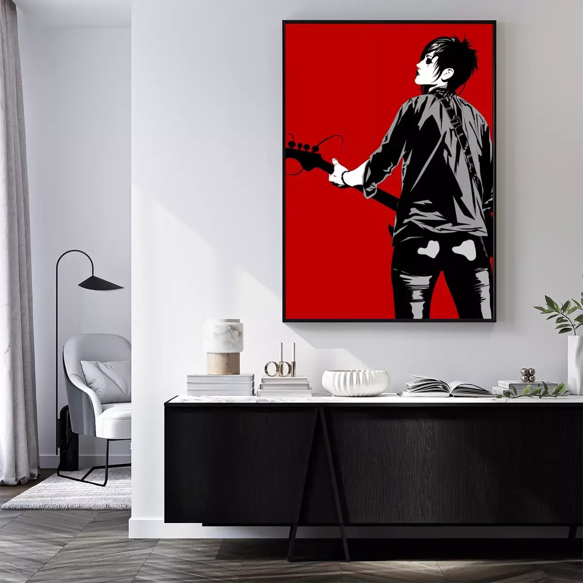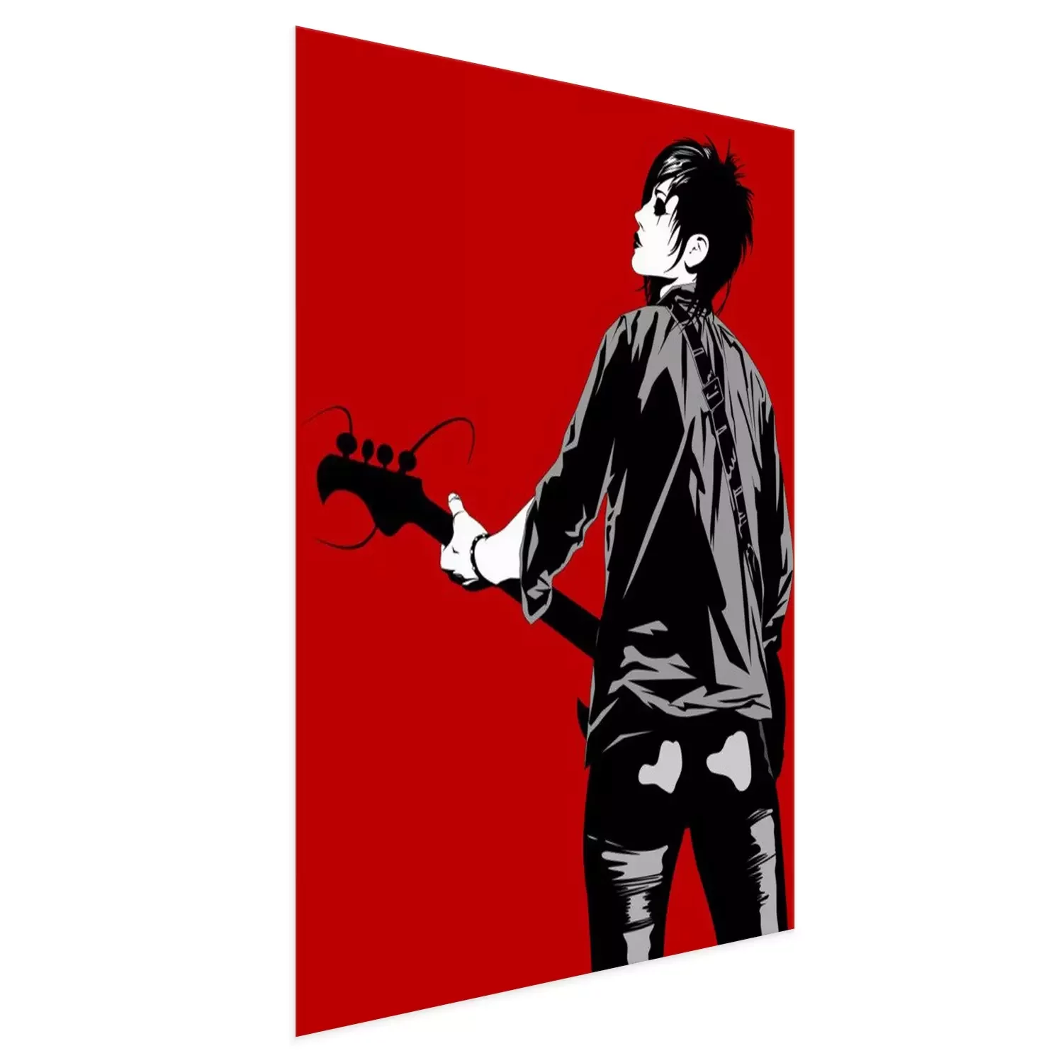 Poster: Punk-Gitarristin auf rotem Hintergrund