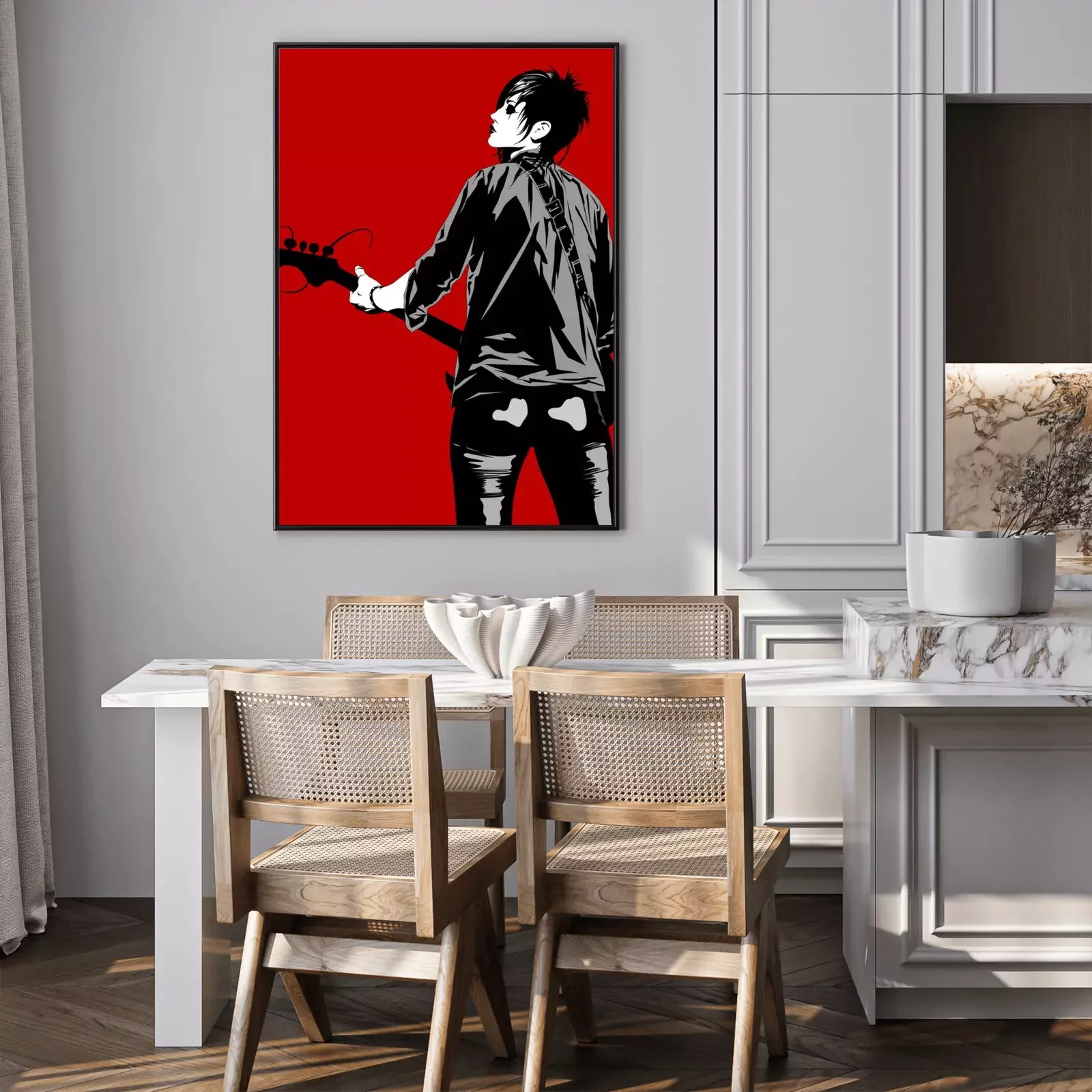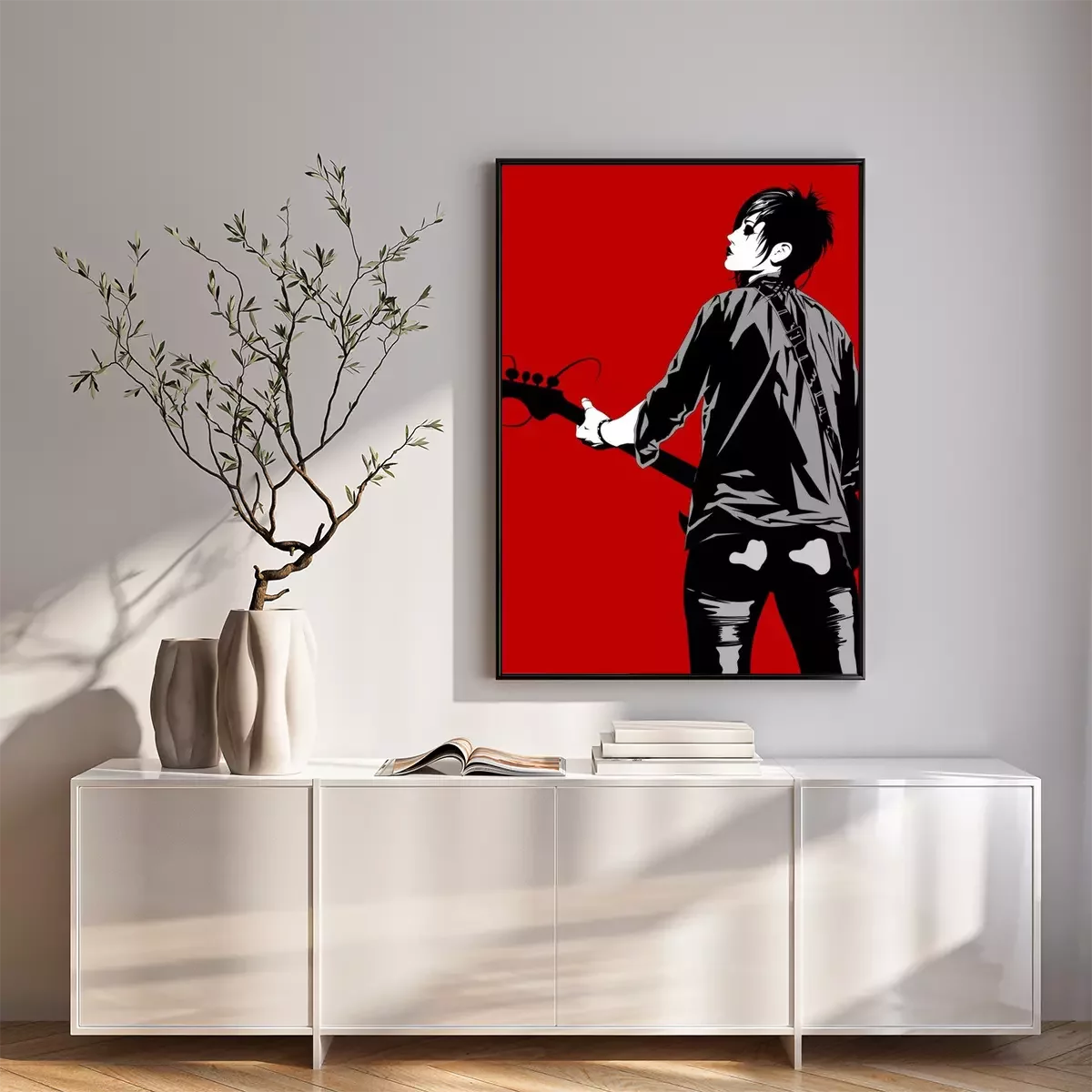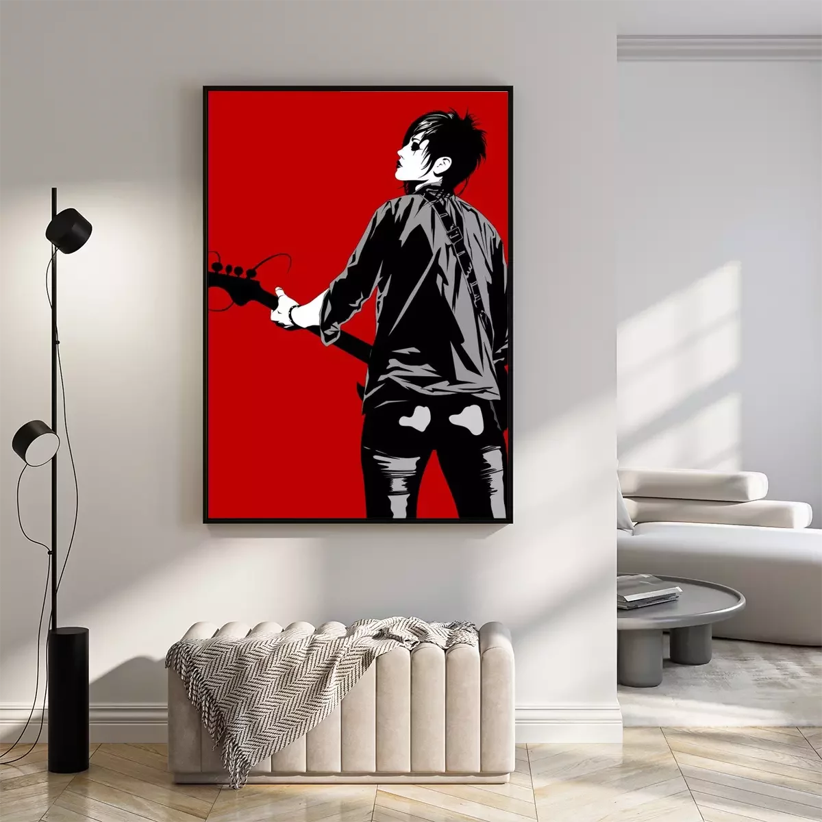 Poster: Punk-Gitarristin auf rotem Hintergrund