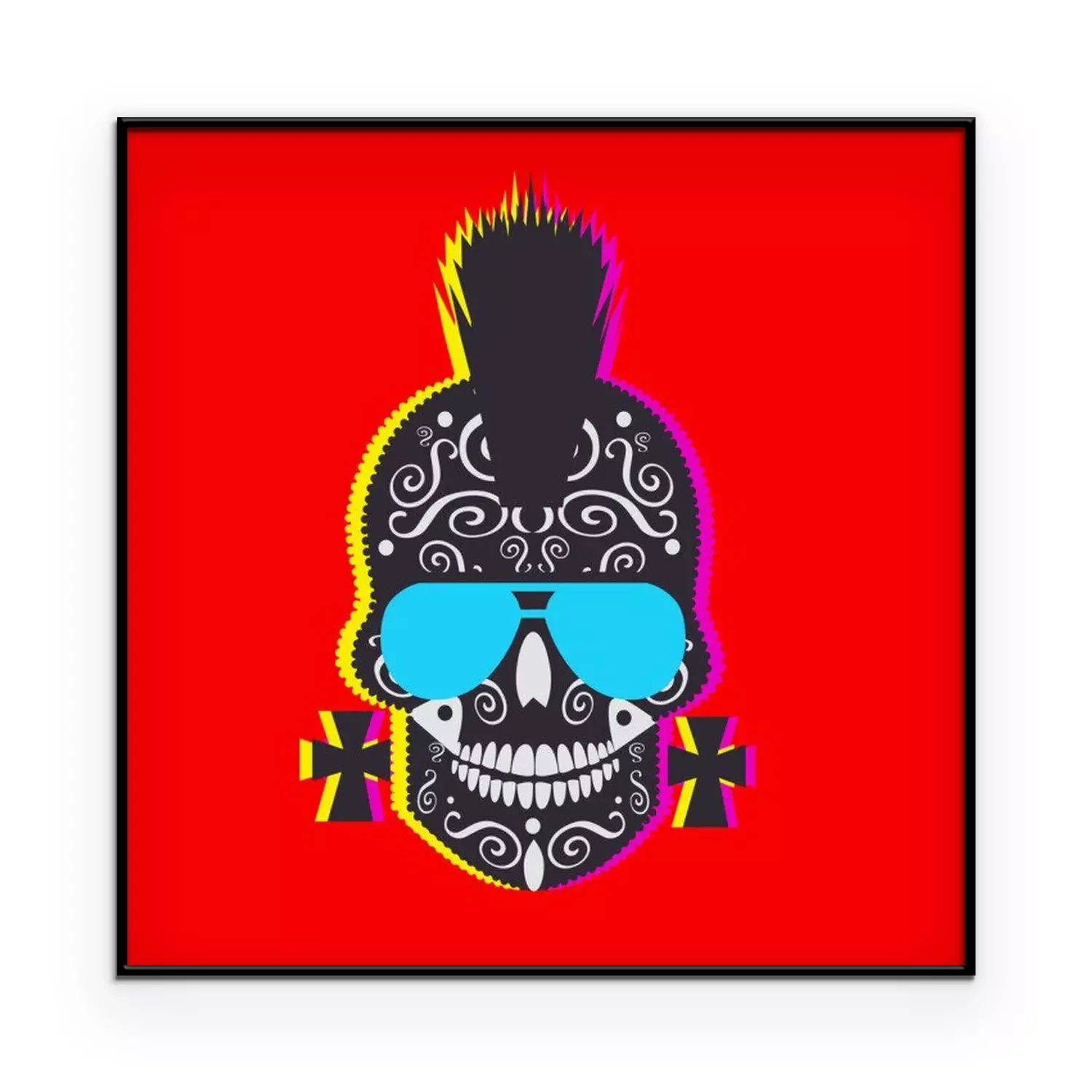 Poster Punk-Totenkopf auf rotem Hintergrund