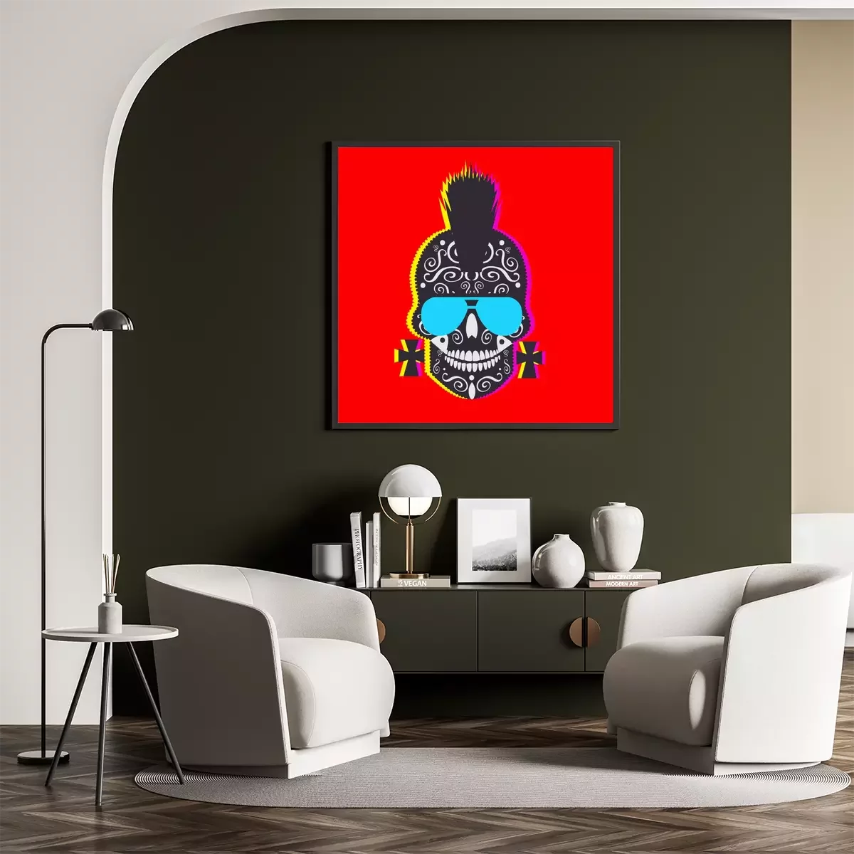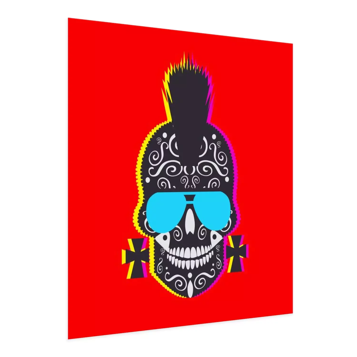 Poster: Punk-Totenkopf auf rotem Hintergrund
