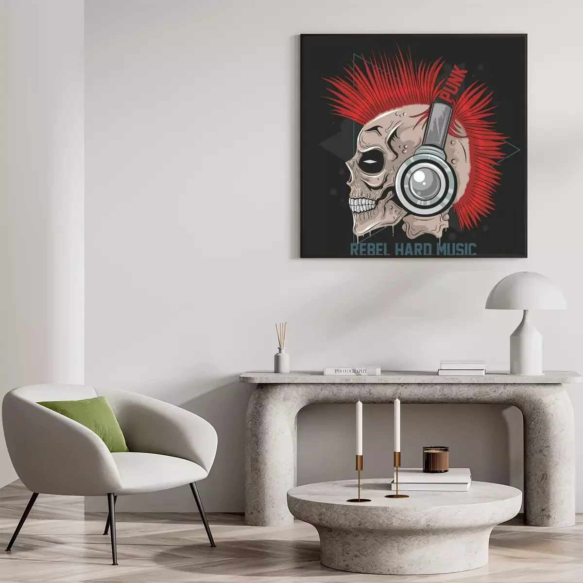 Poster: Punk-Totenkopf mit Kopfhörer