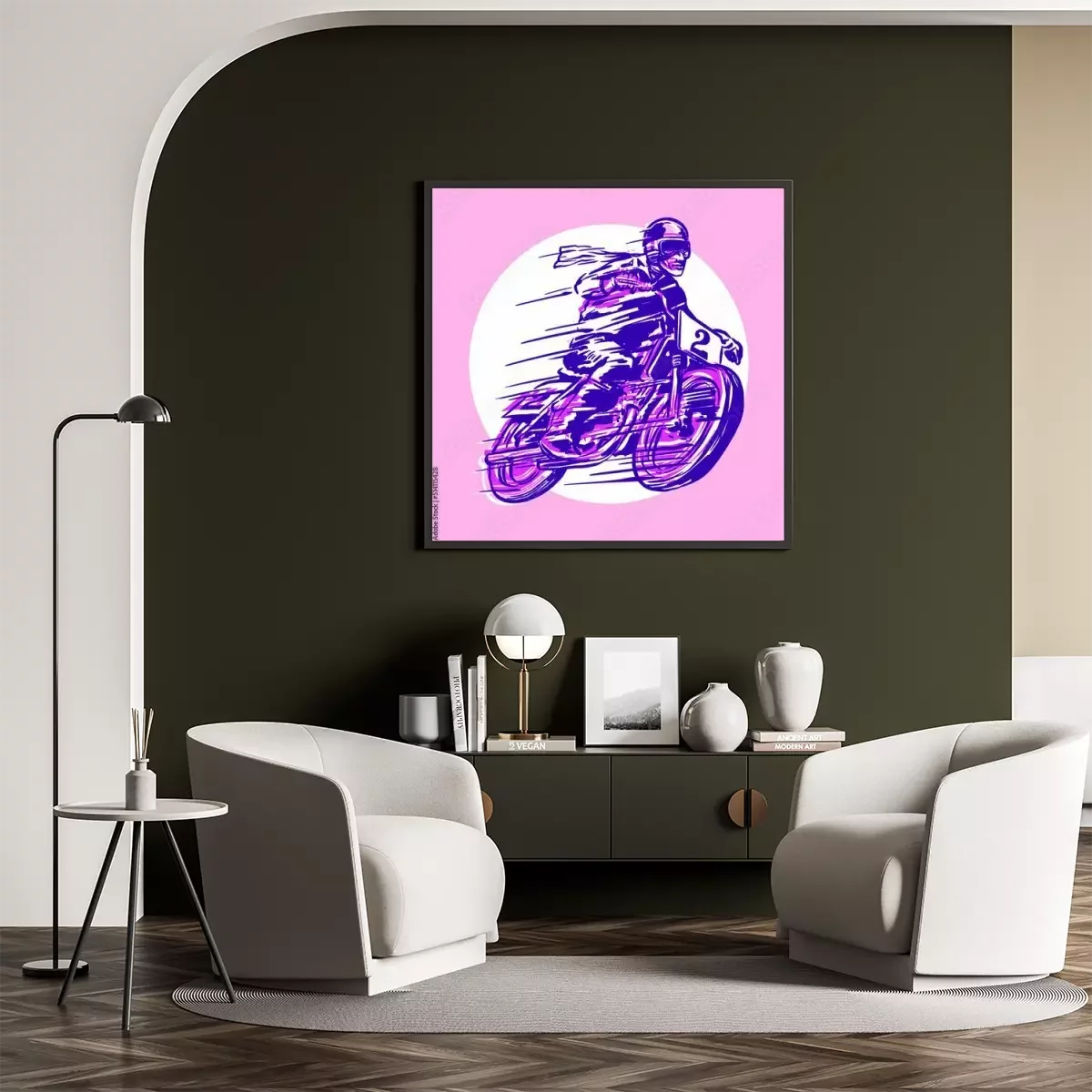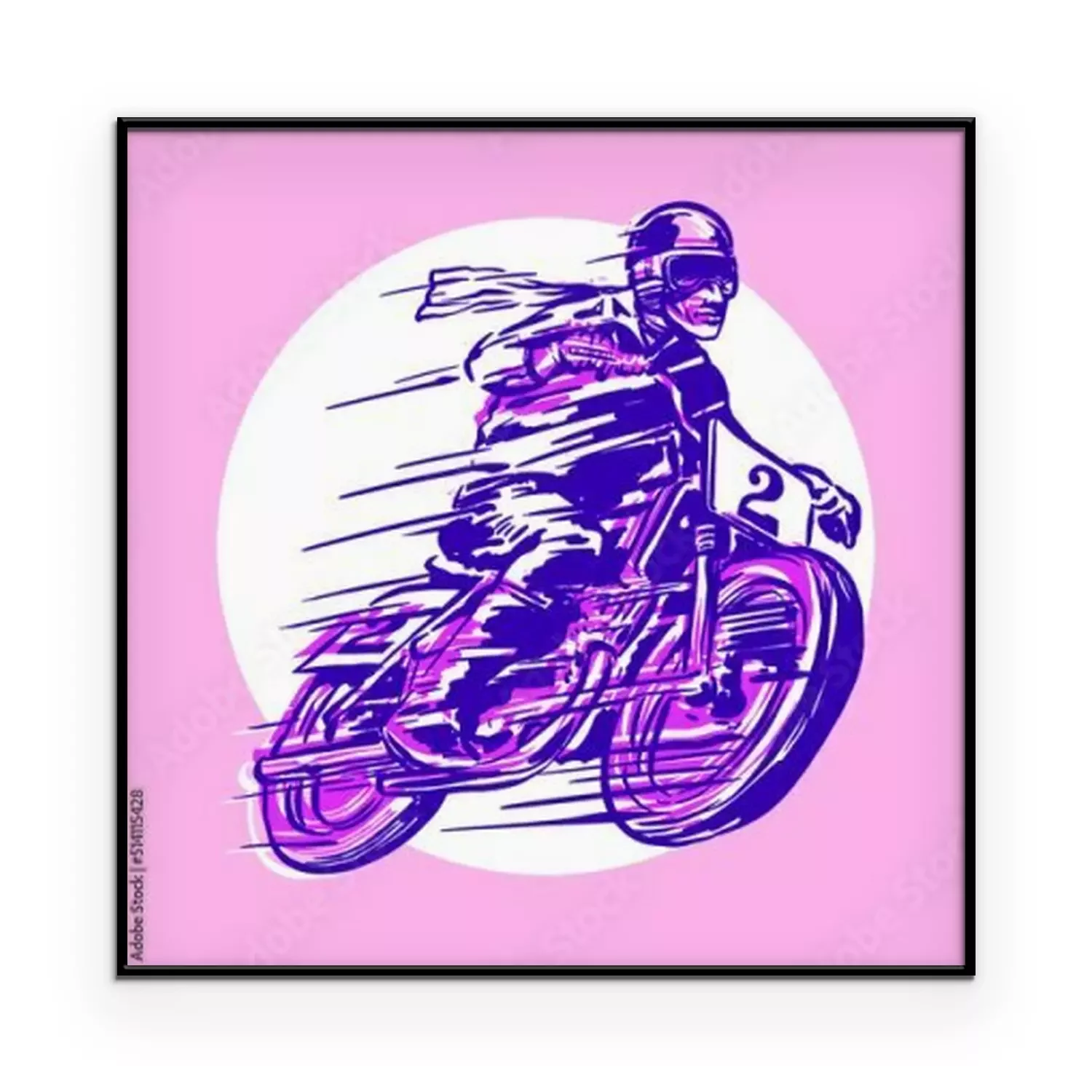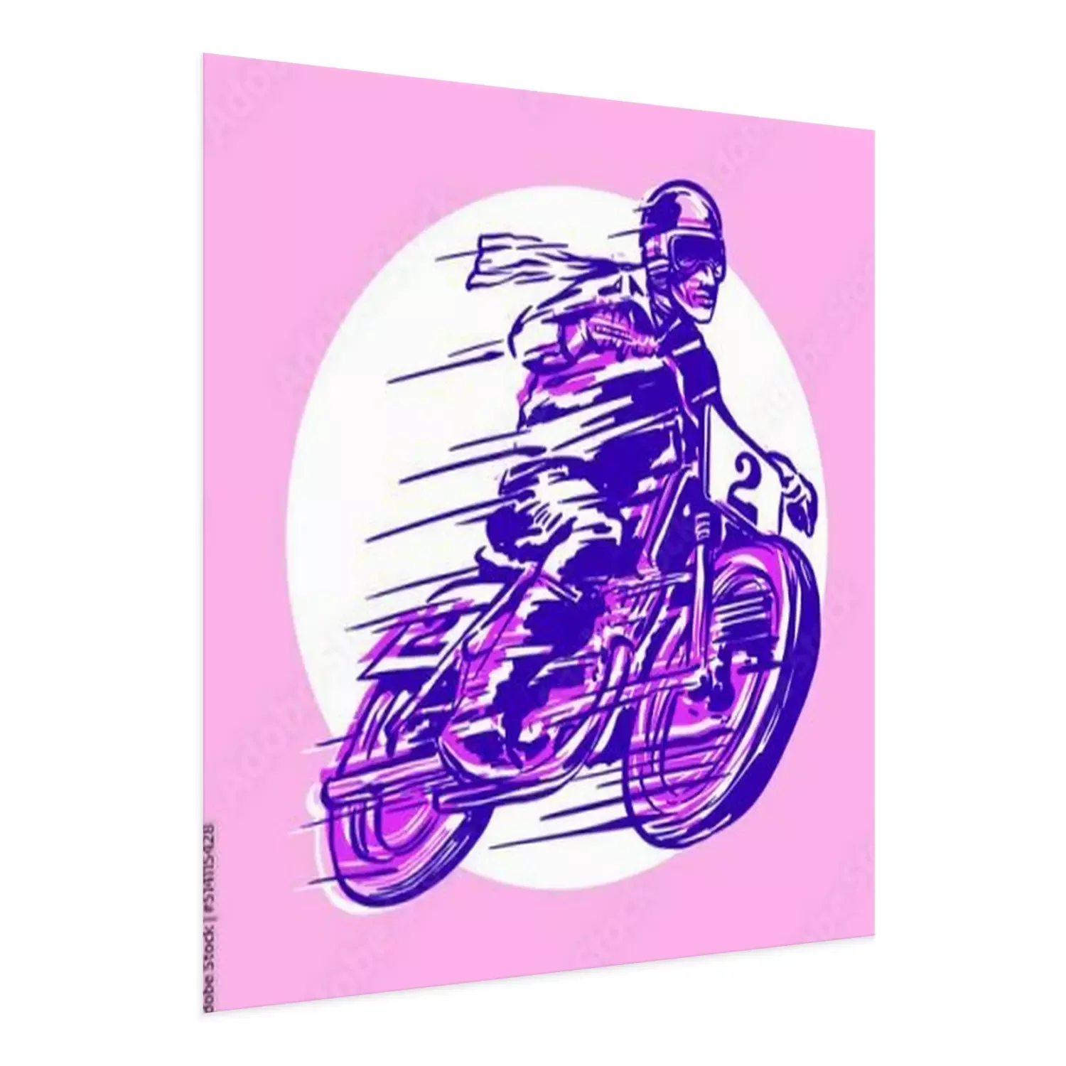 Poster: Racer with motorcycle objects in retro hand drawing style