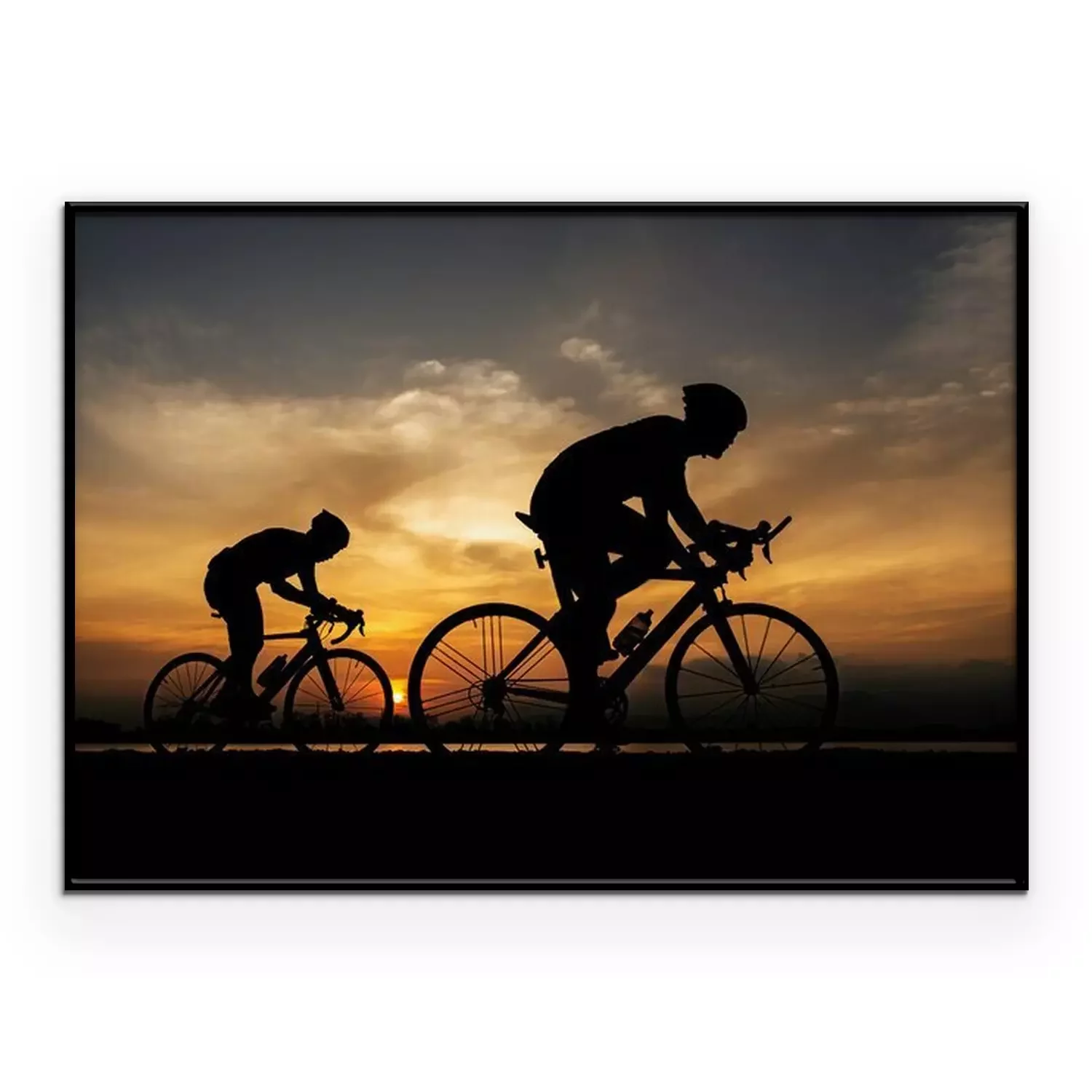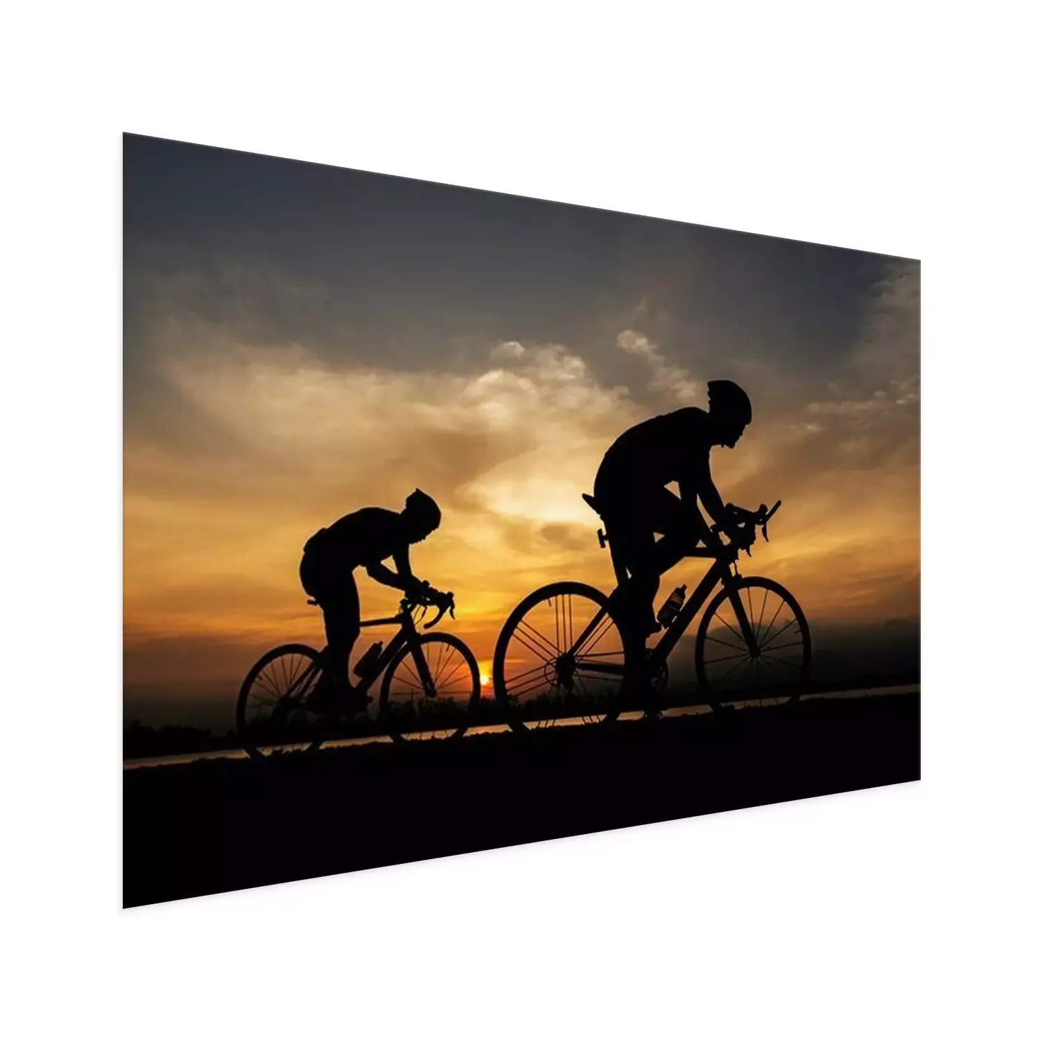 Poster: Radfahrer vor einem Hintergrund des Sonnenuntergangs