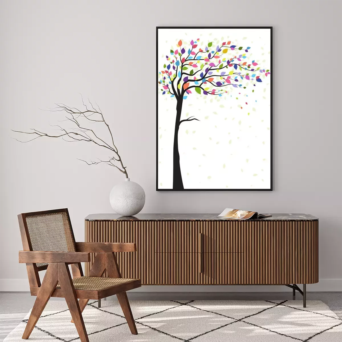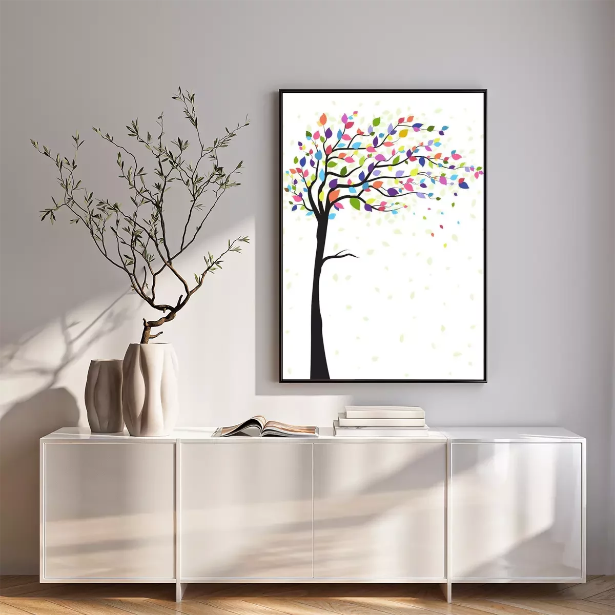 Poster: Regenbogenbaum bei sehr starkem Wind
