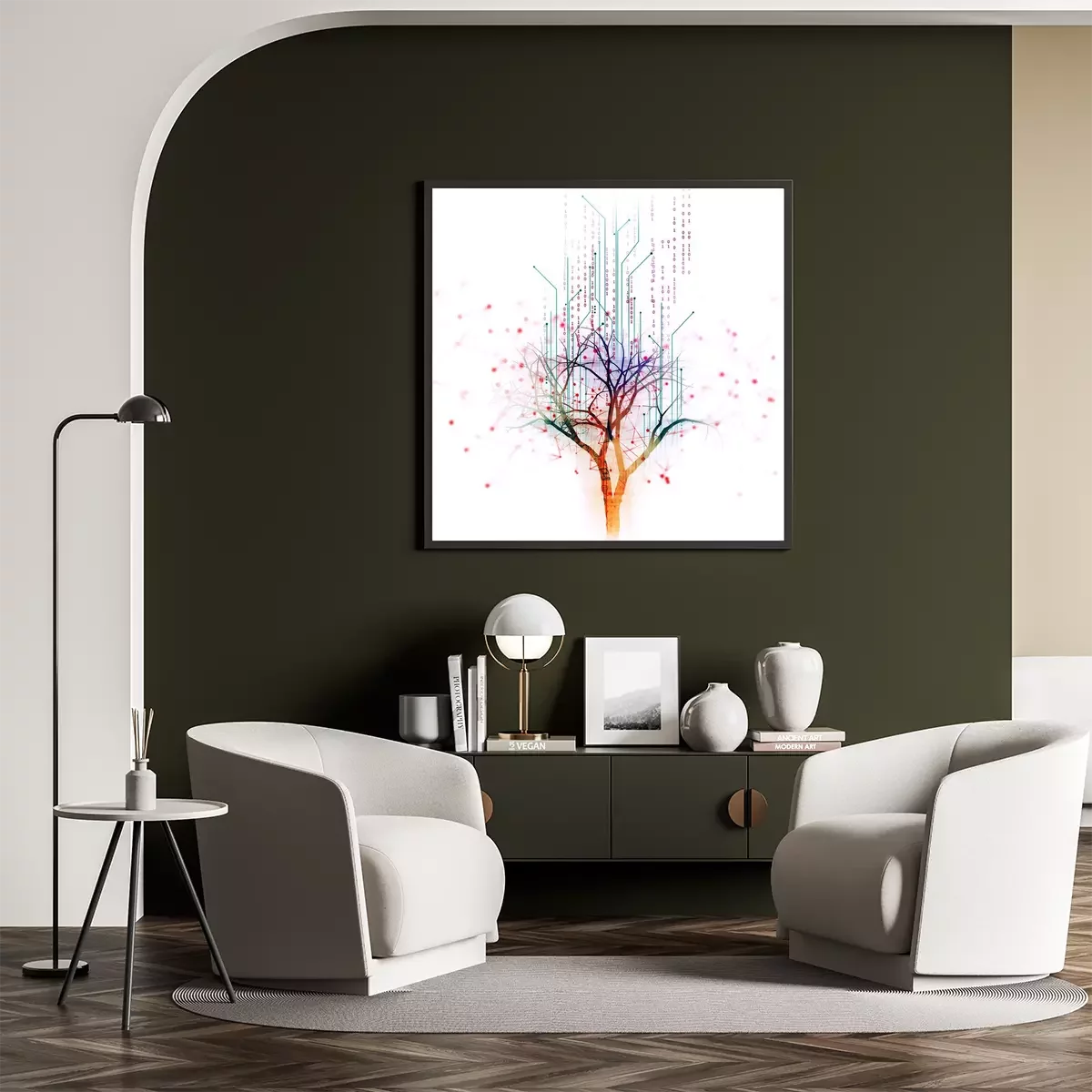 Poster: Regenbogenbaum Grafik im futuristischen Stil