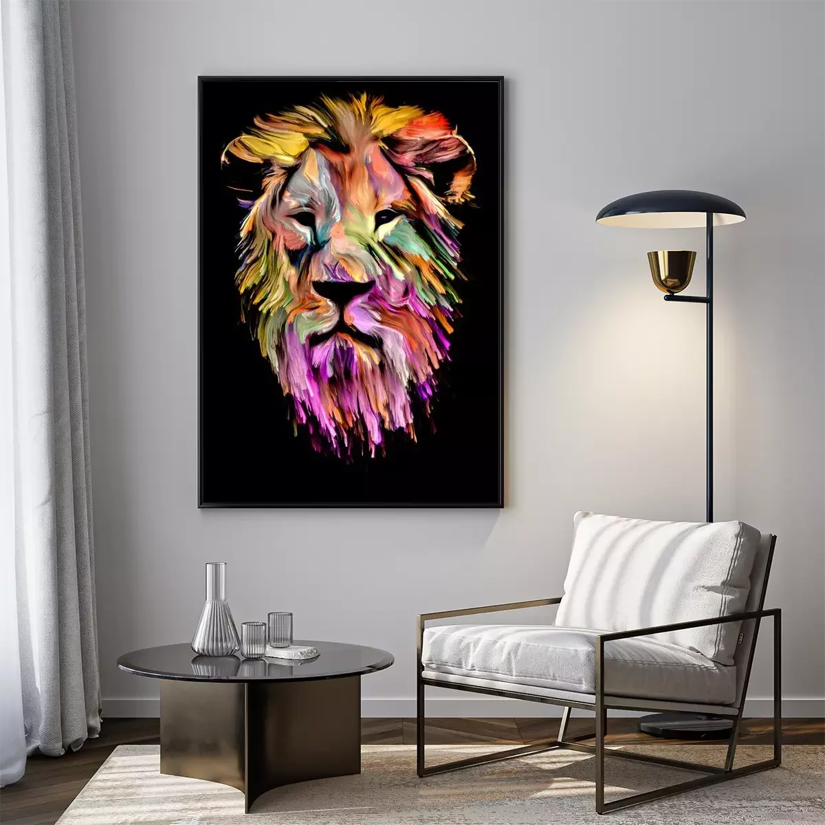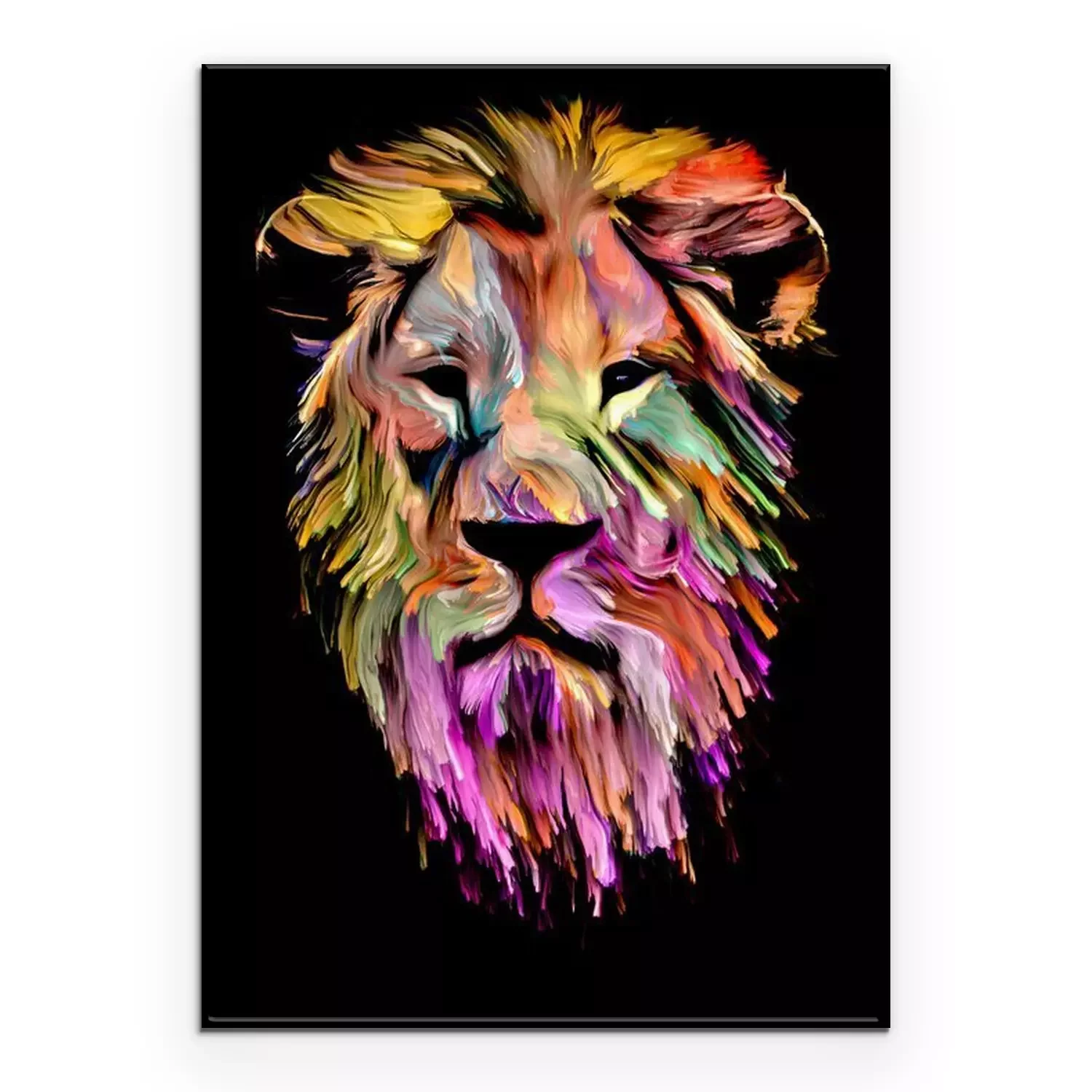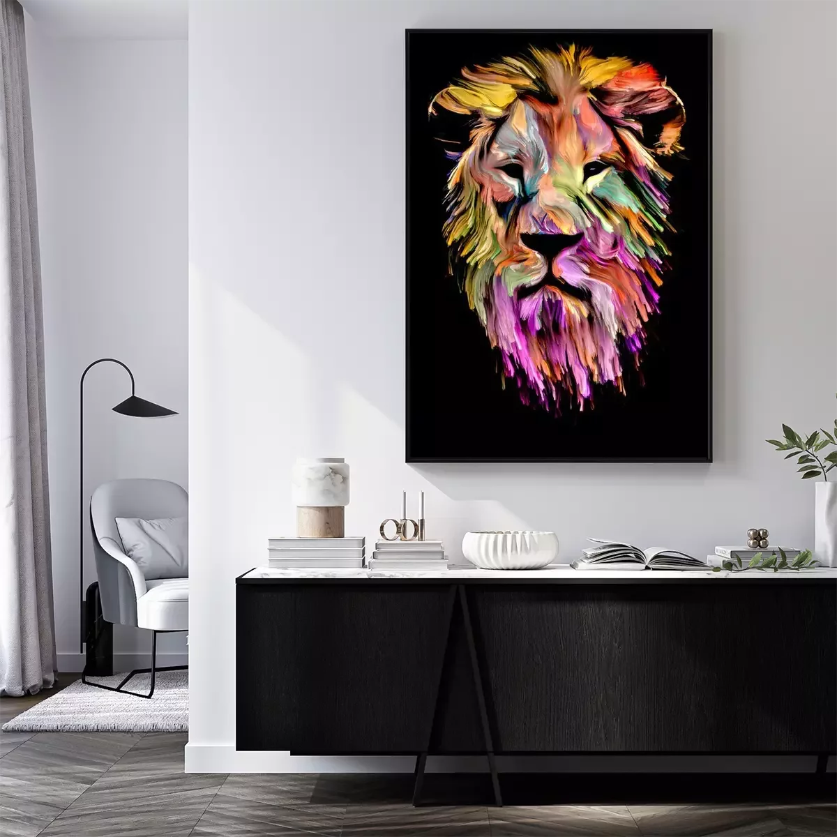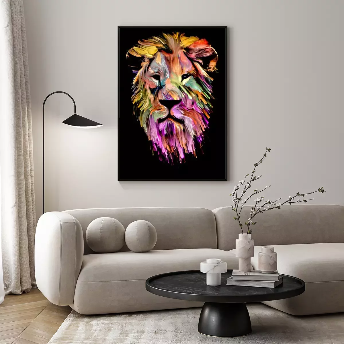 Poster: Regenbogenfarbener Löwe auf schwarzem Hintergrund