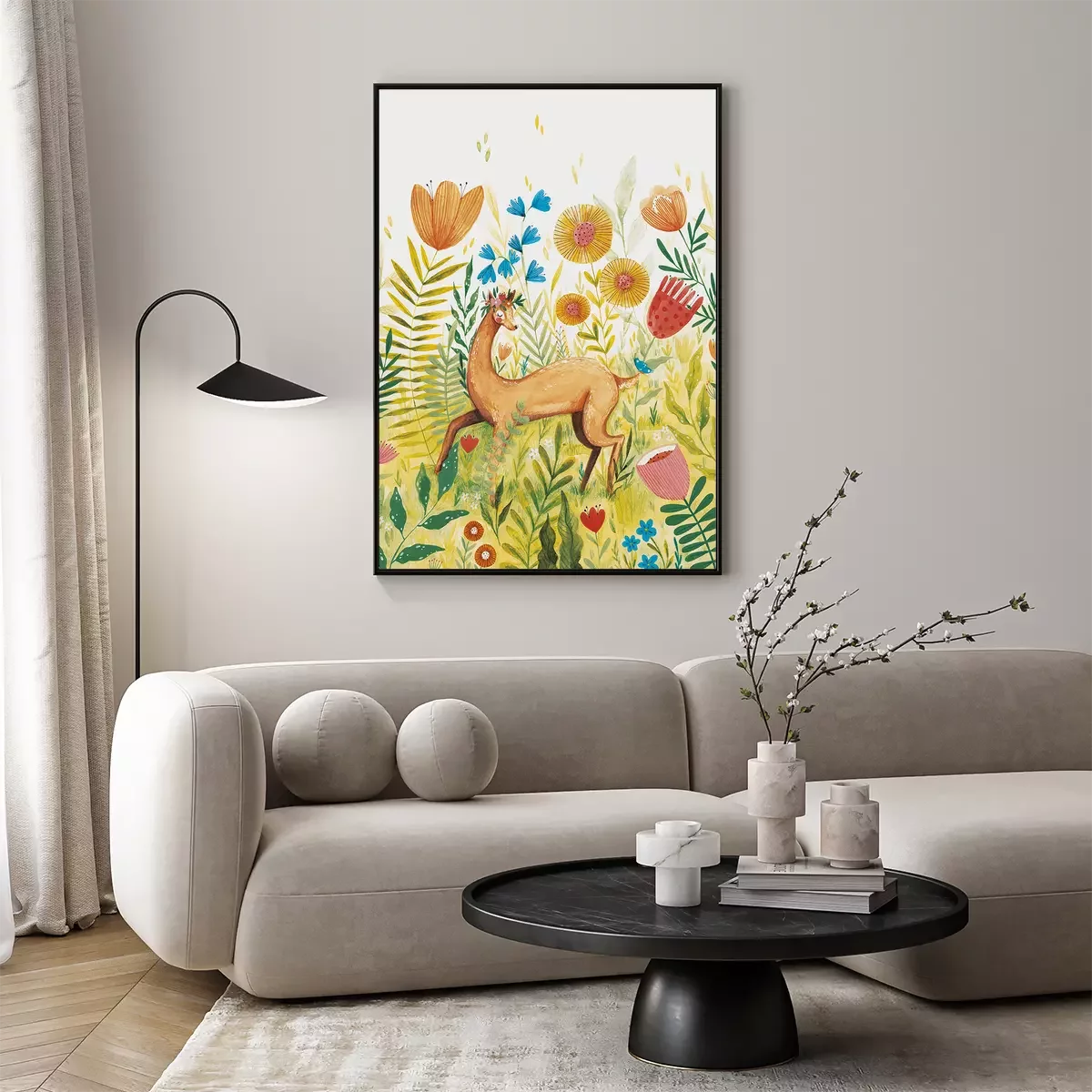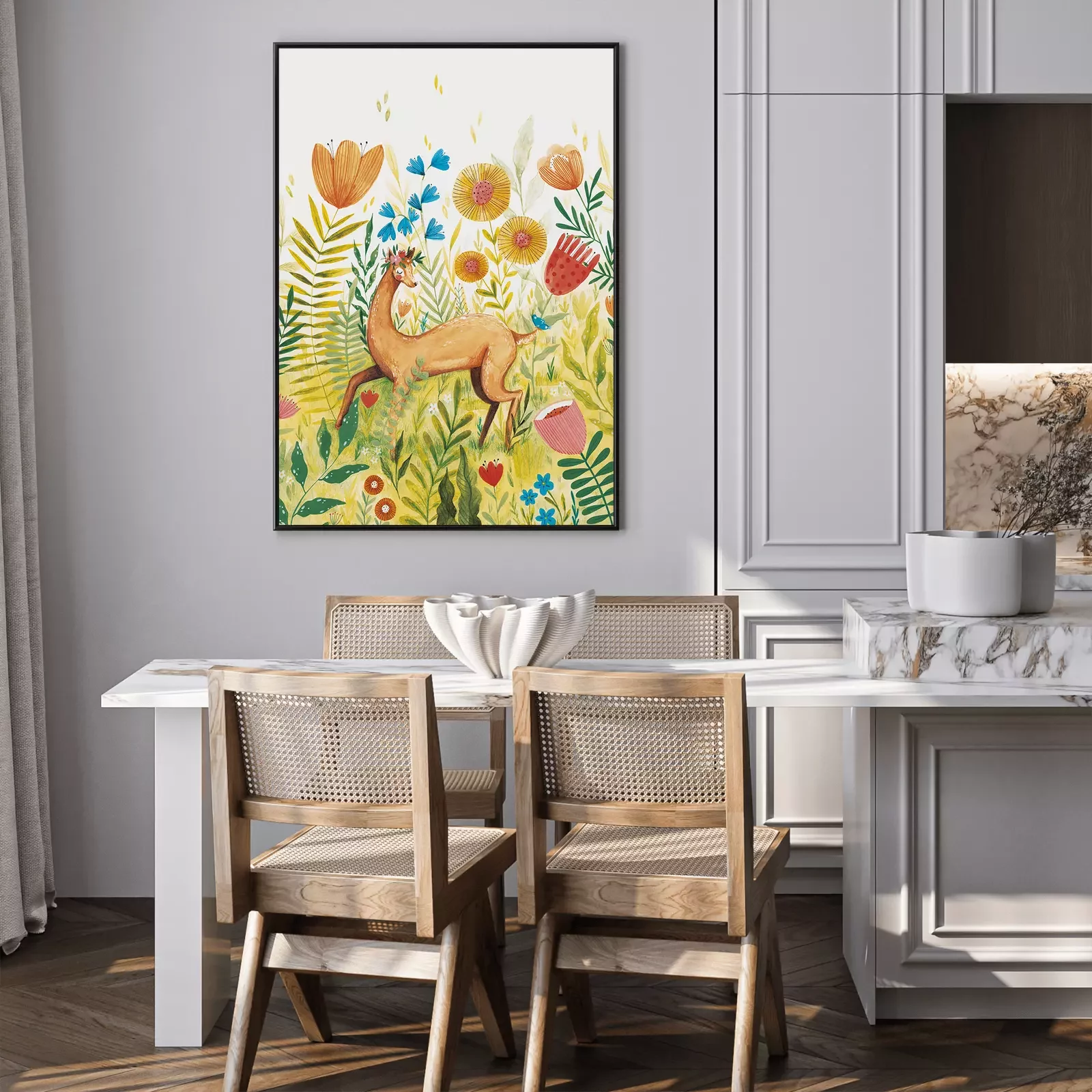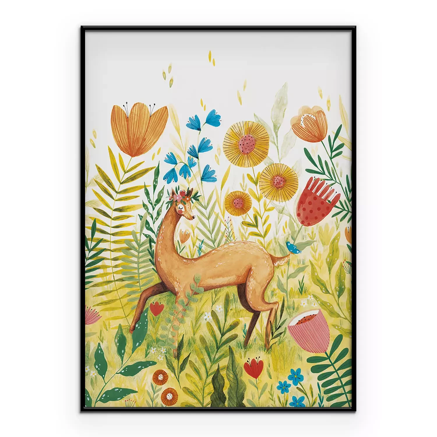 Poster: Rehlein auf der Blumenwiese