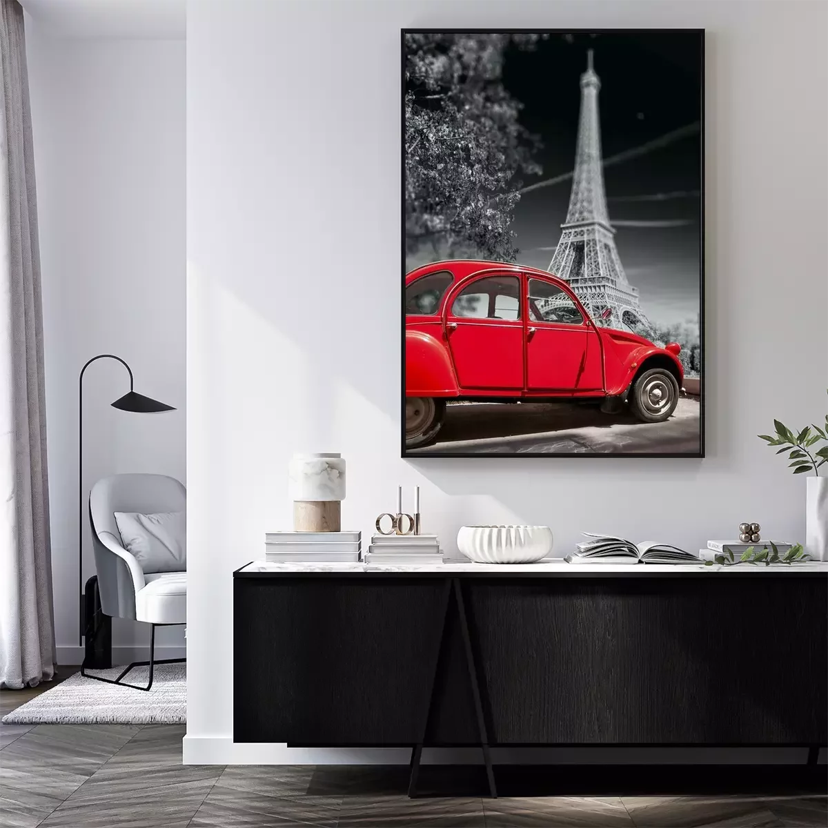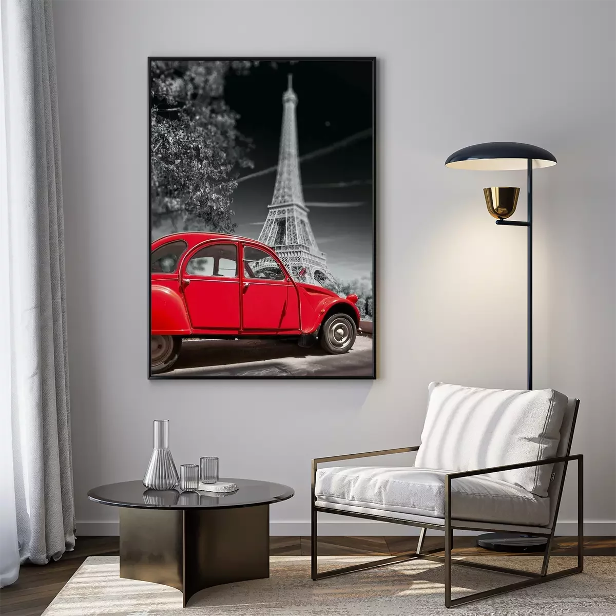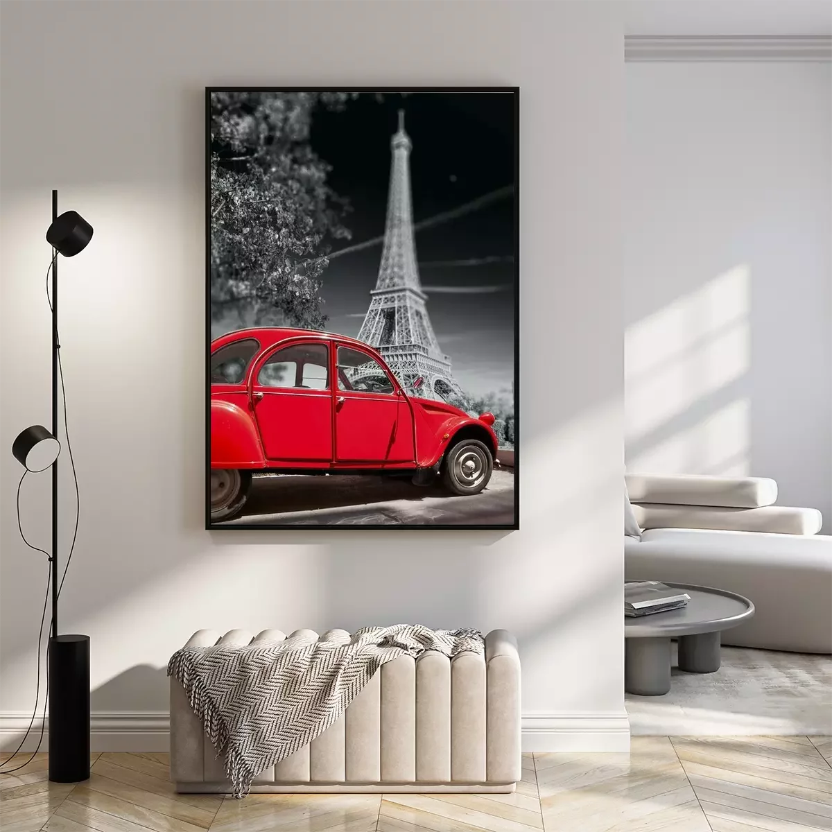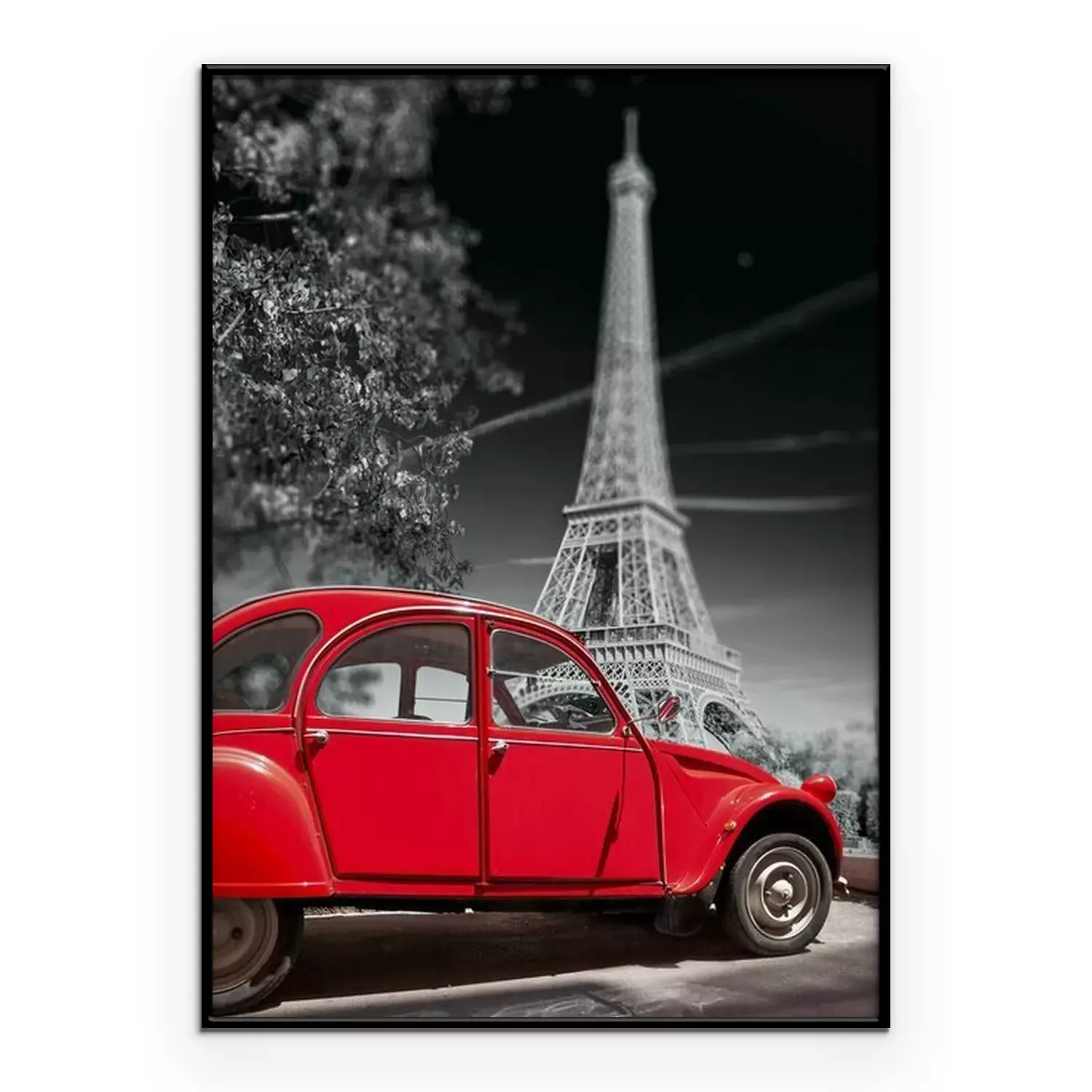 Paris schwarz-weißer Eiffelturm und VW Käfer