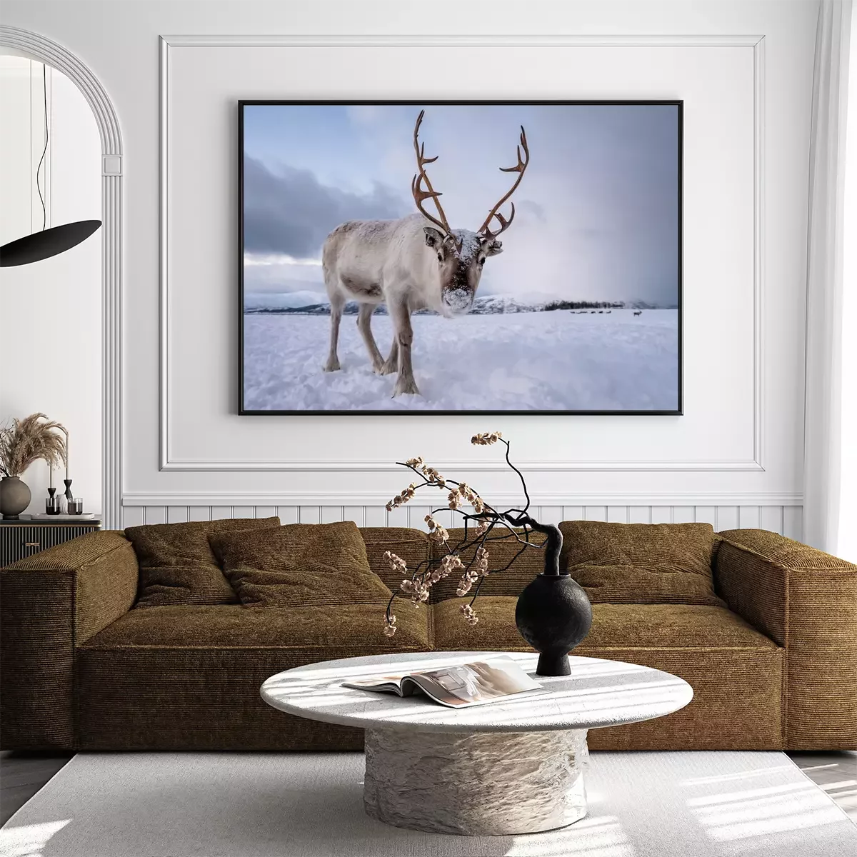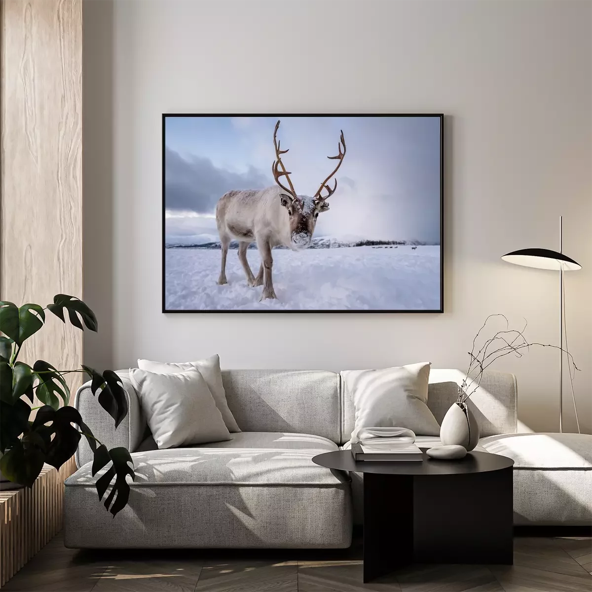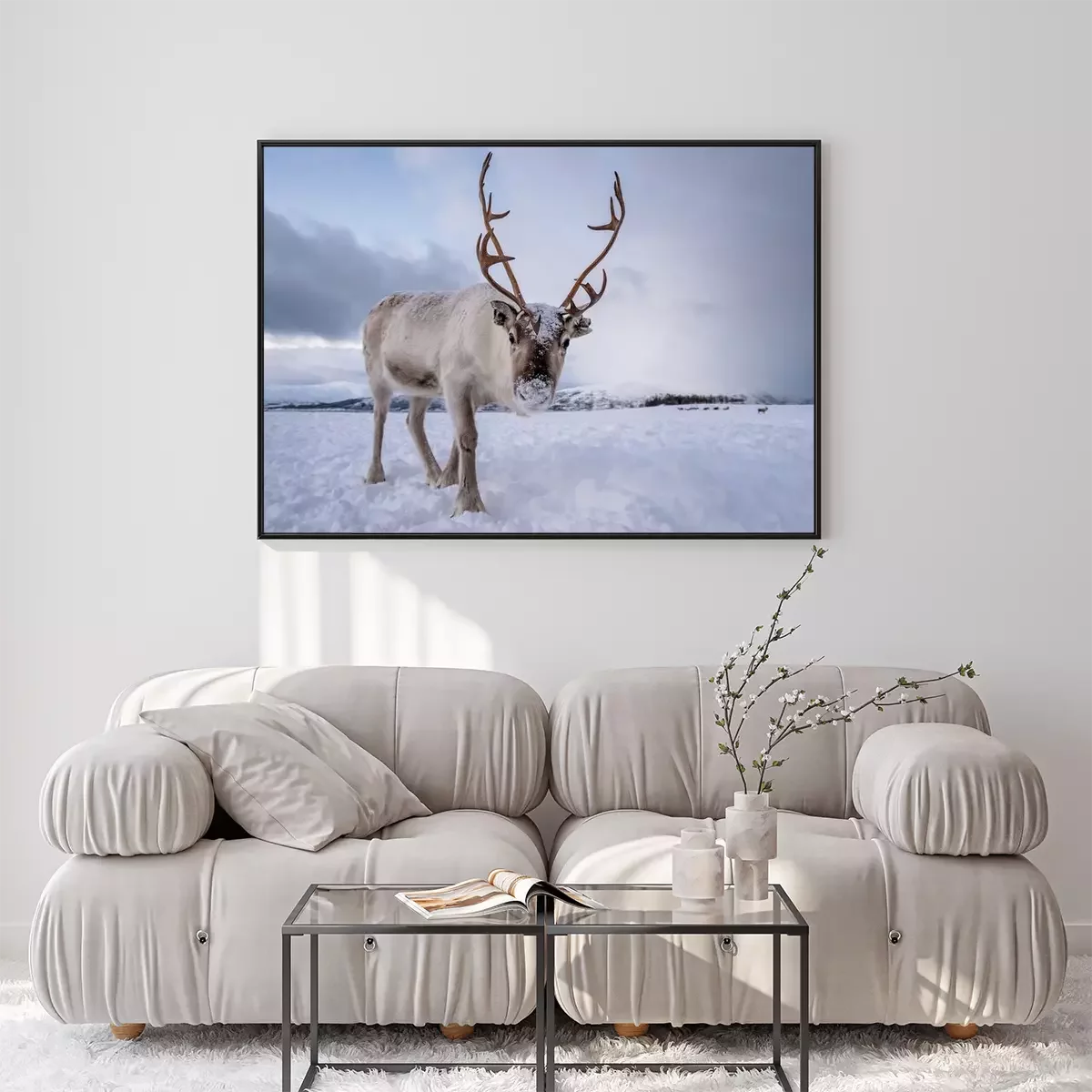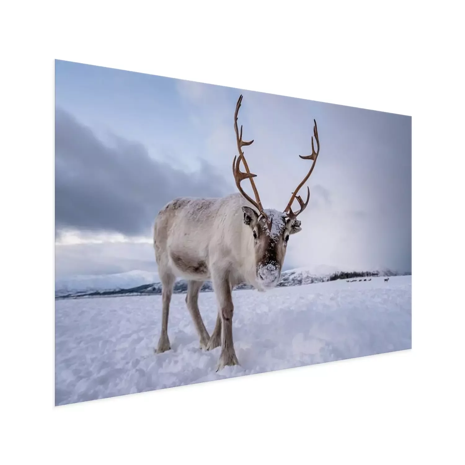 Poster: Rentier vor dem Hintergrund der Gebirgskette