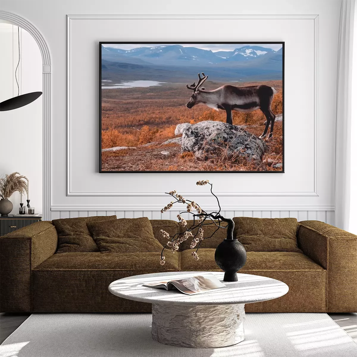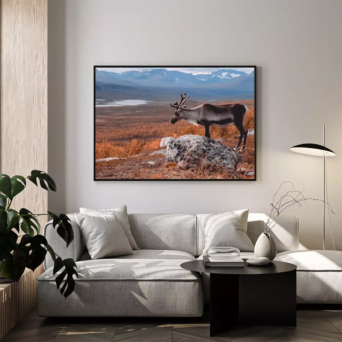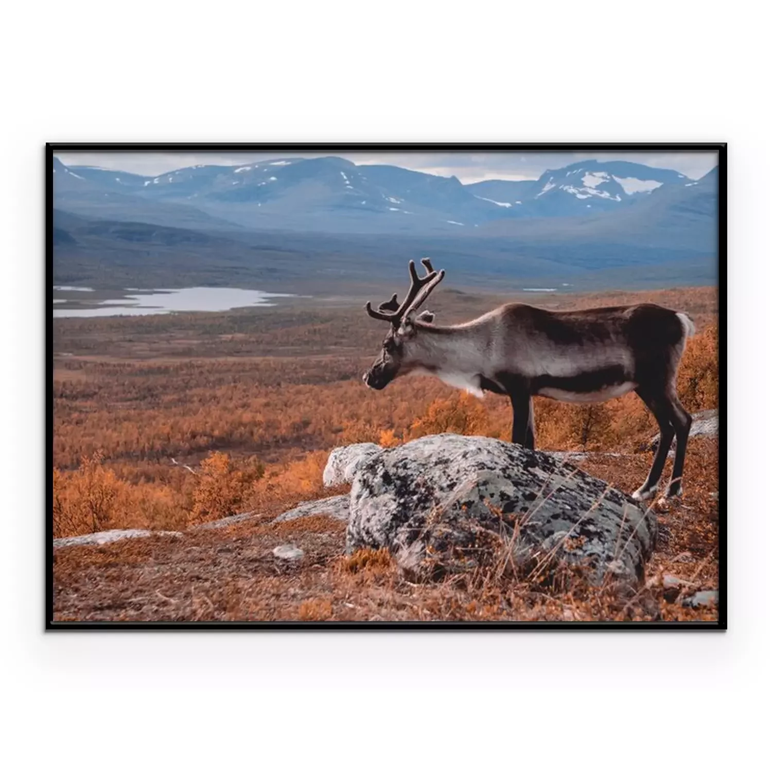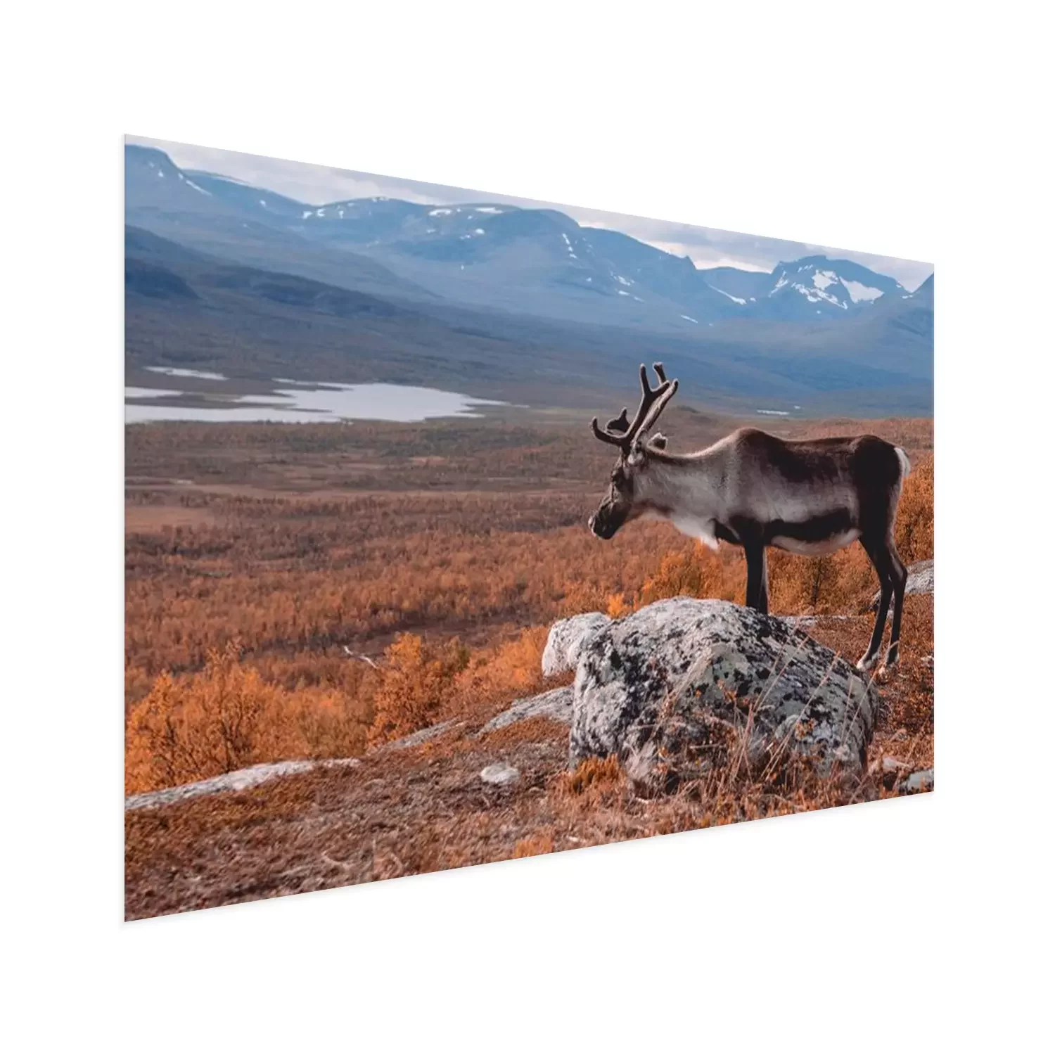 Poster: Rentier vor dem Hintergrund einer Landschaft in Herbstfarben