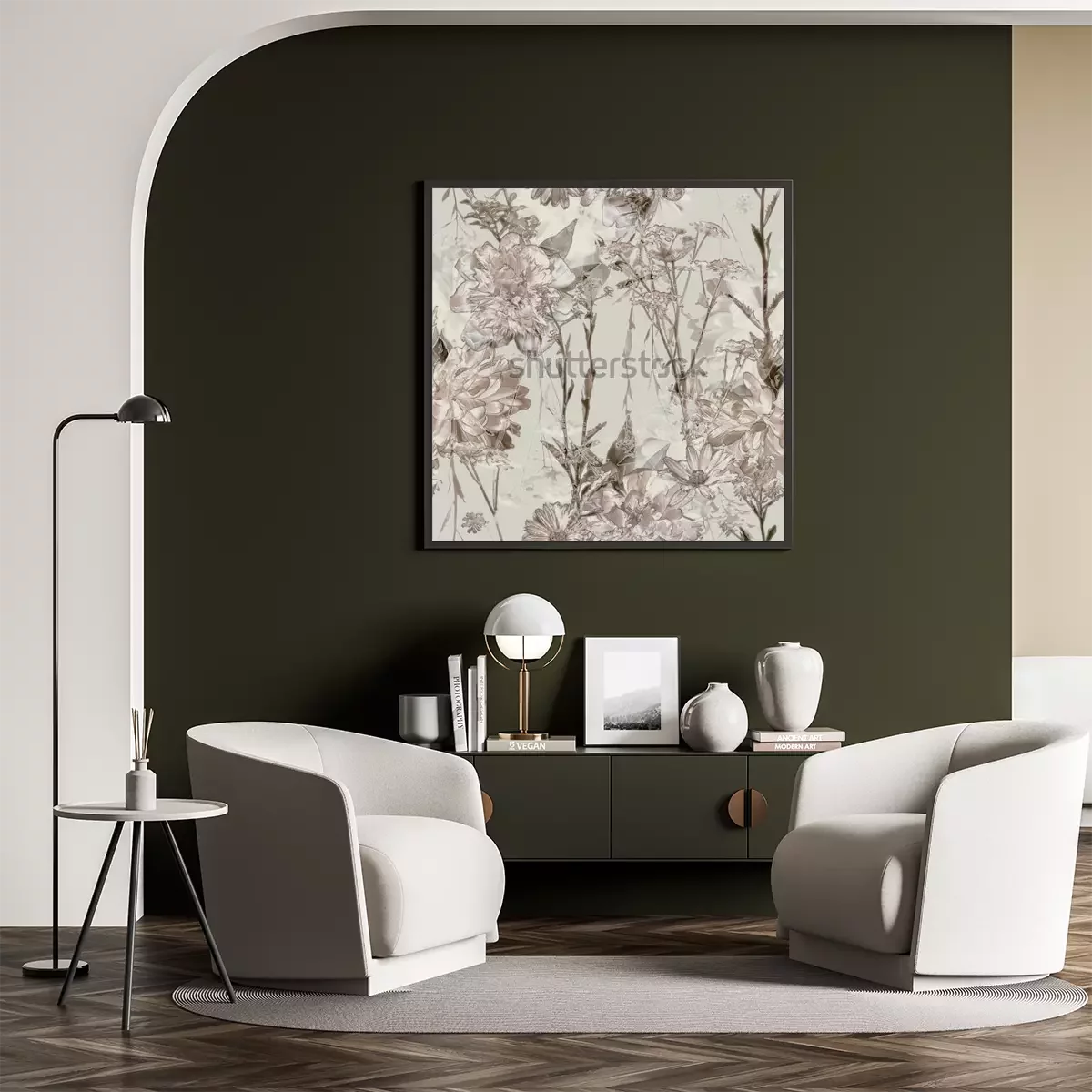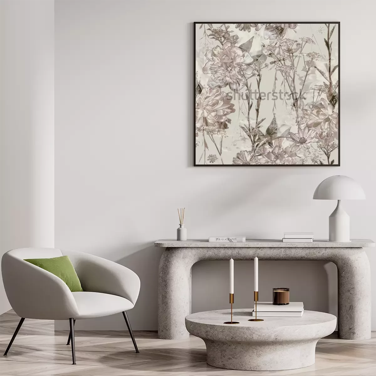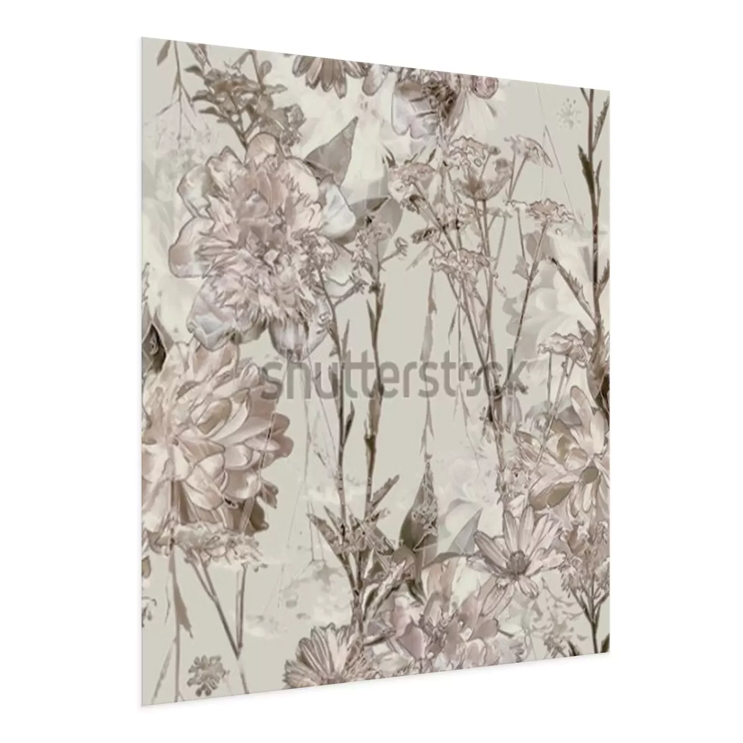 Poster: Retro-Blumen in Beigetönen