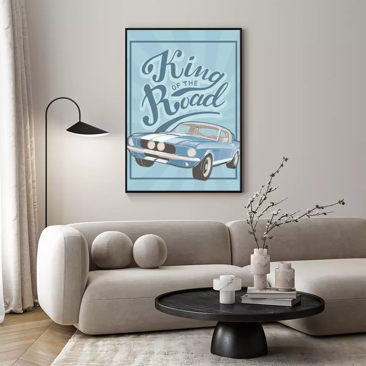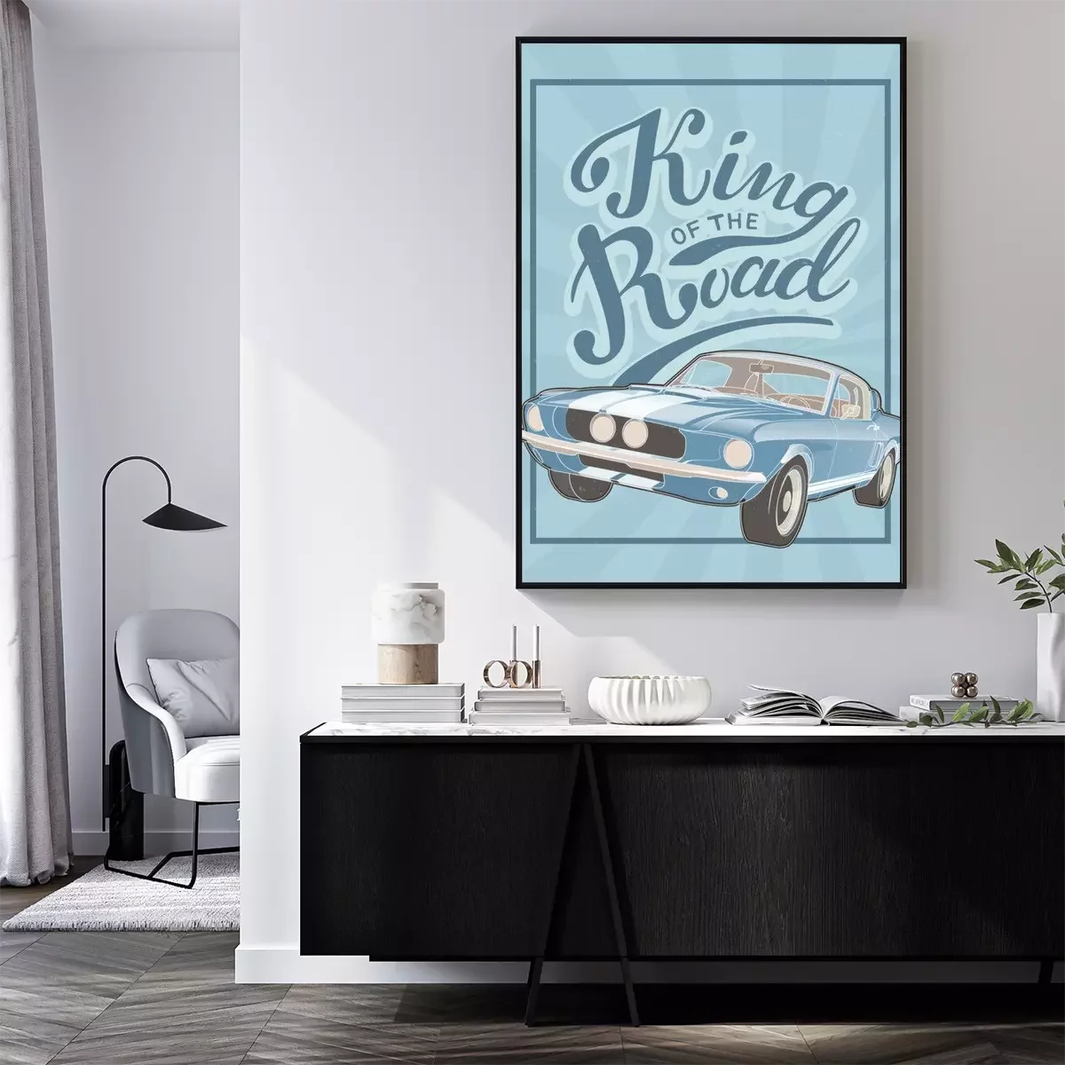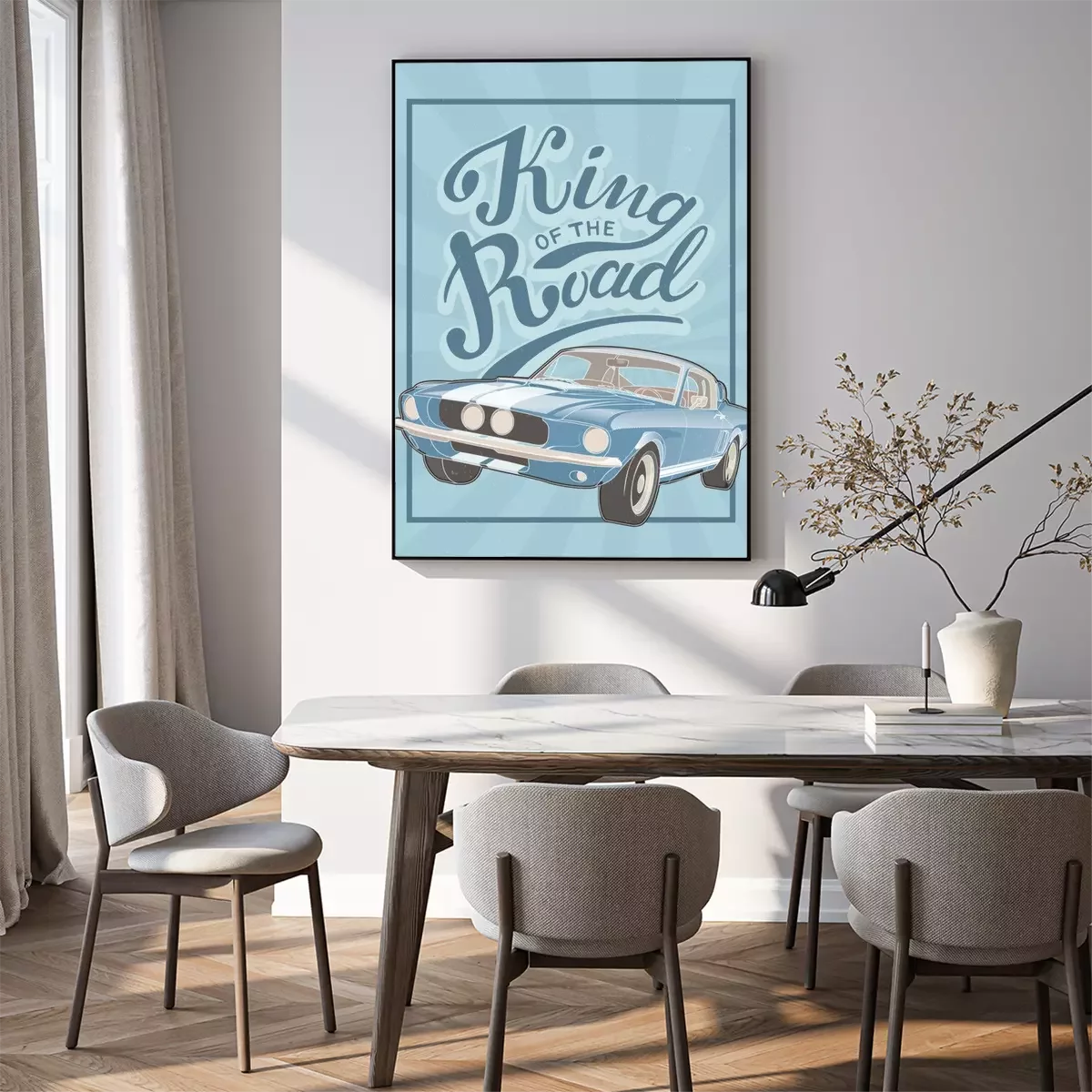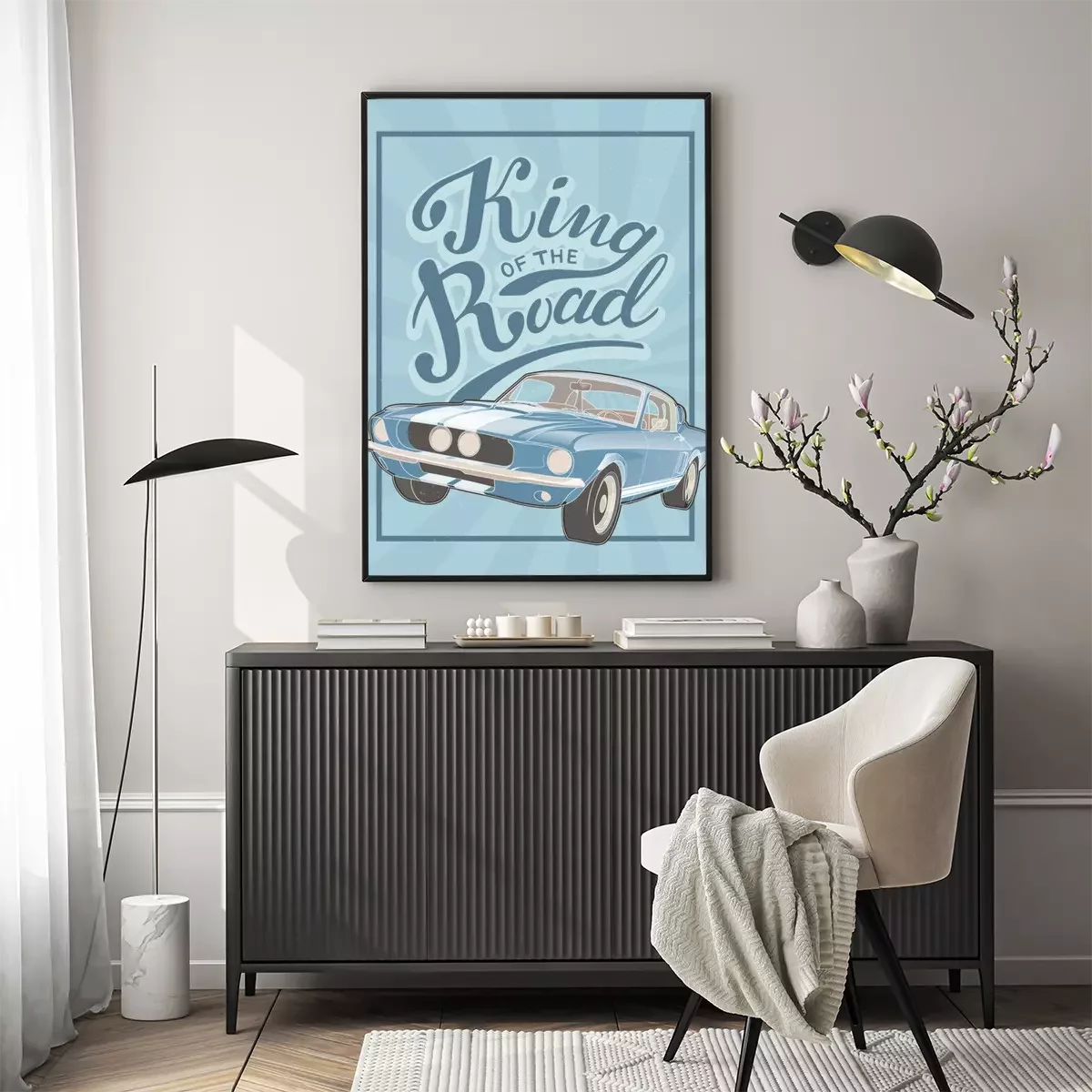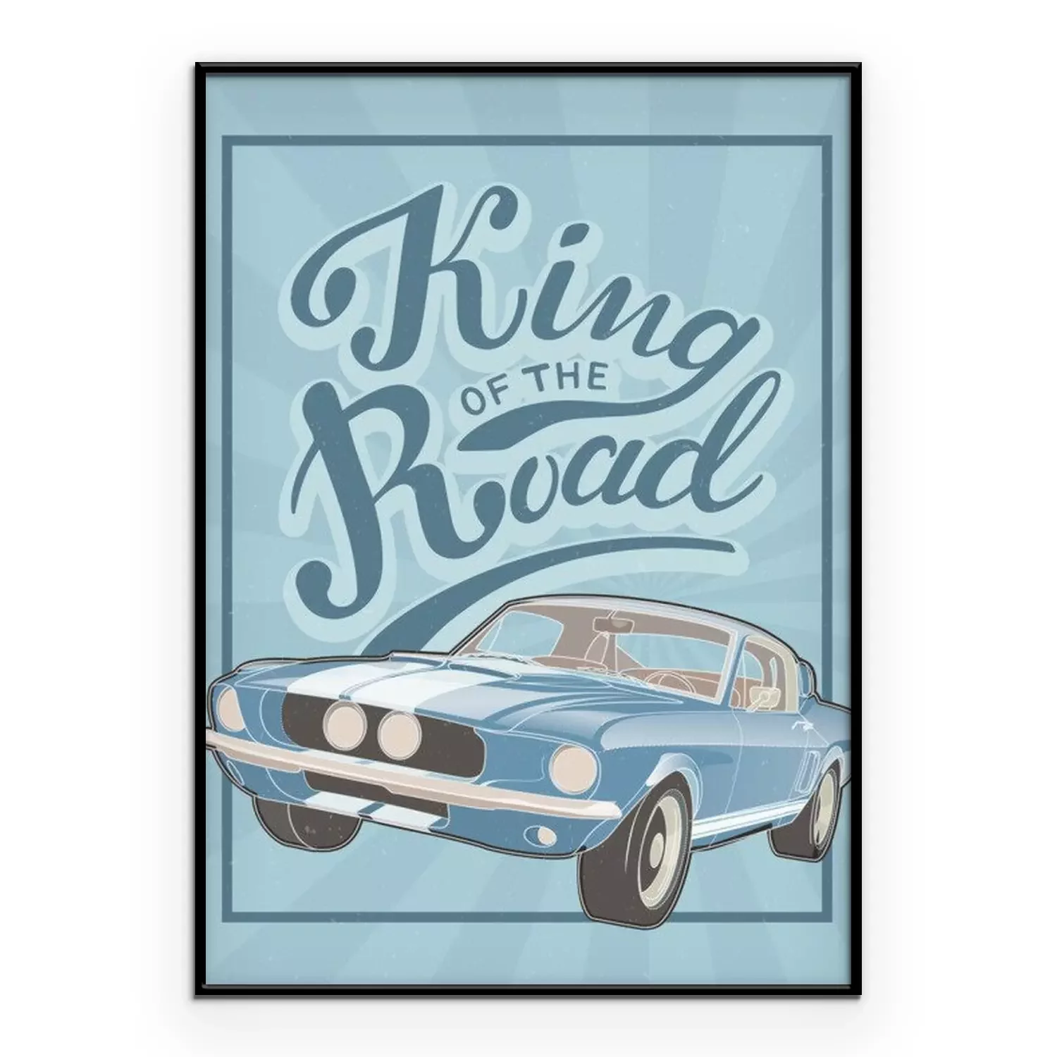 Poster: Retro Design mit blauem Auto