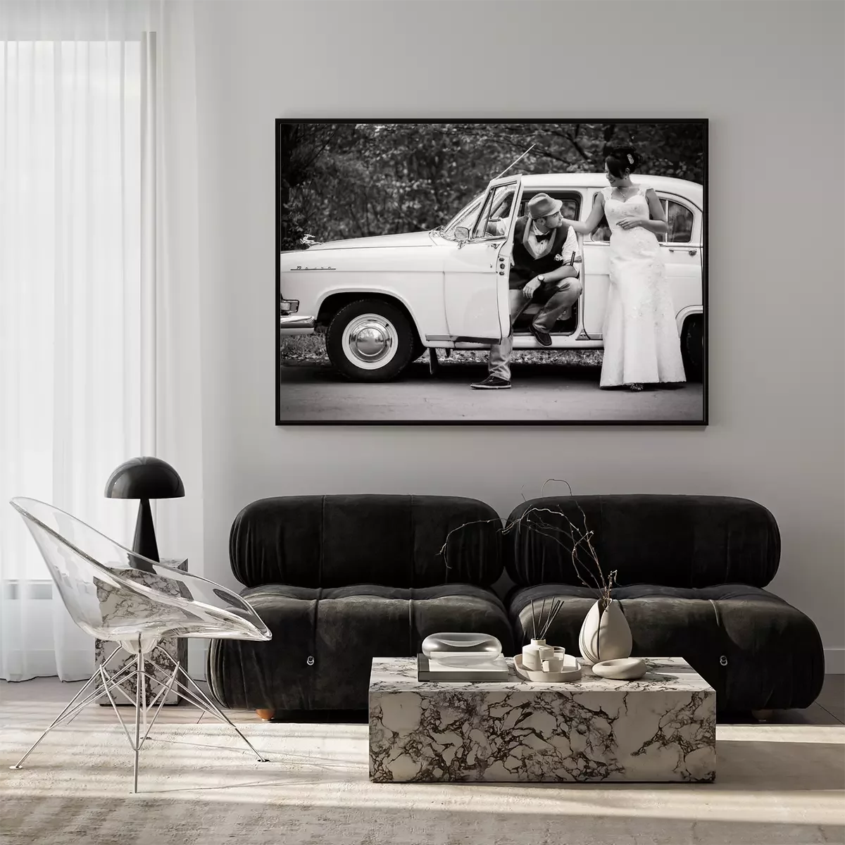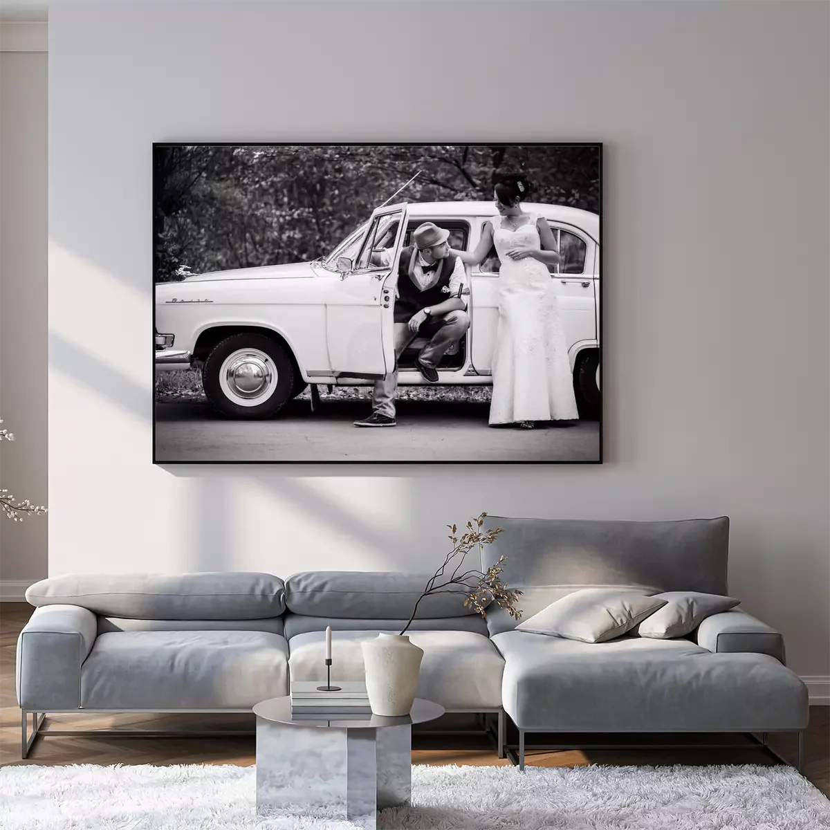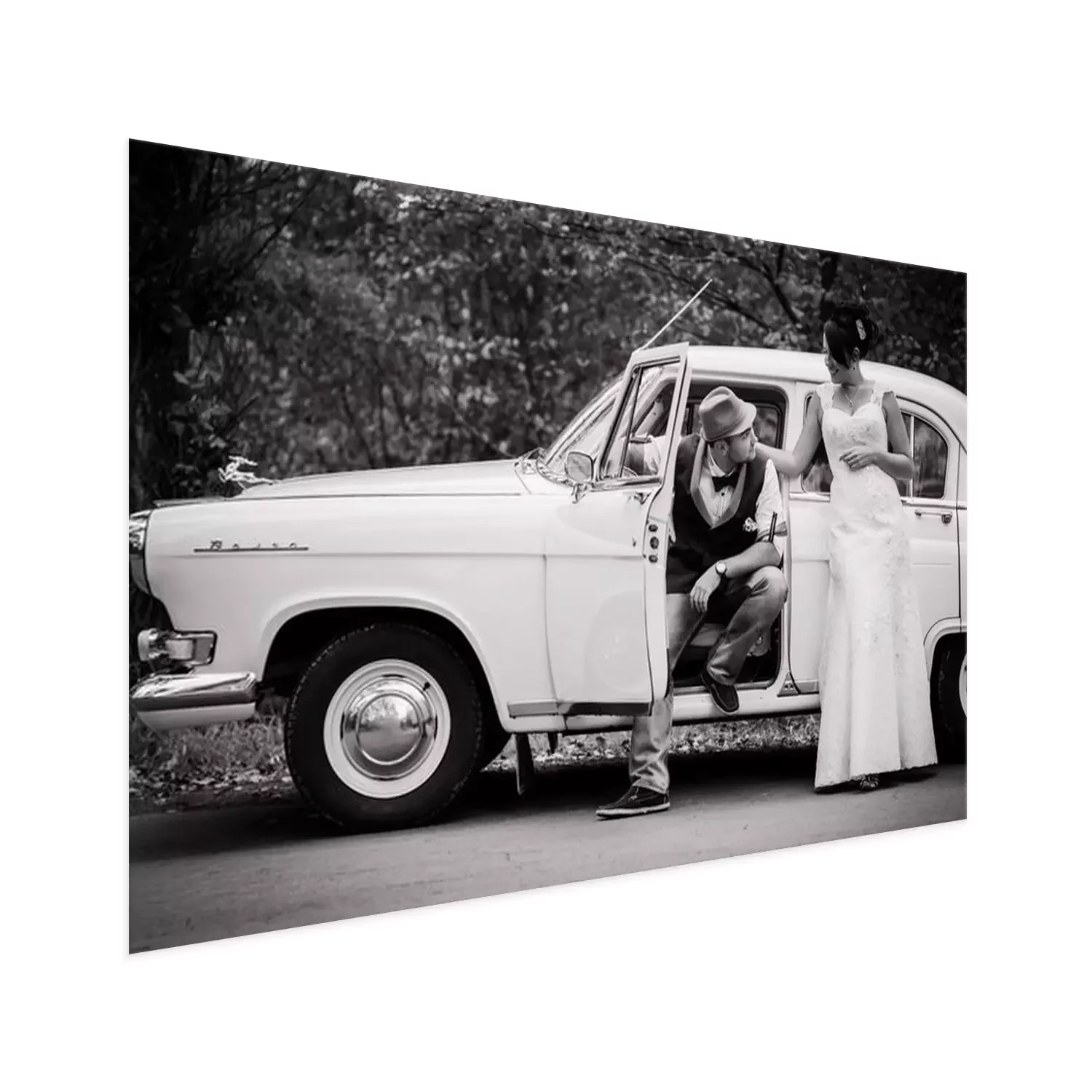 Poster: Retro-Hochzeitsauto
