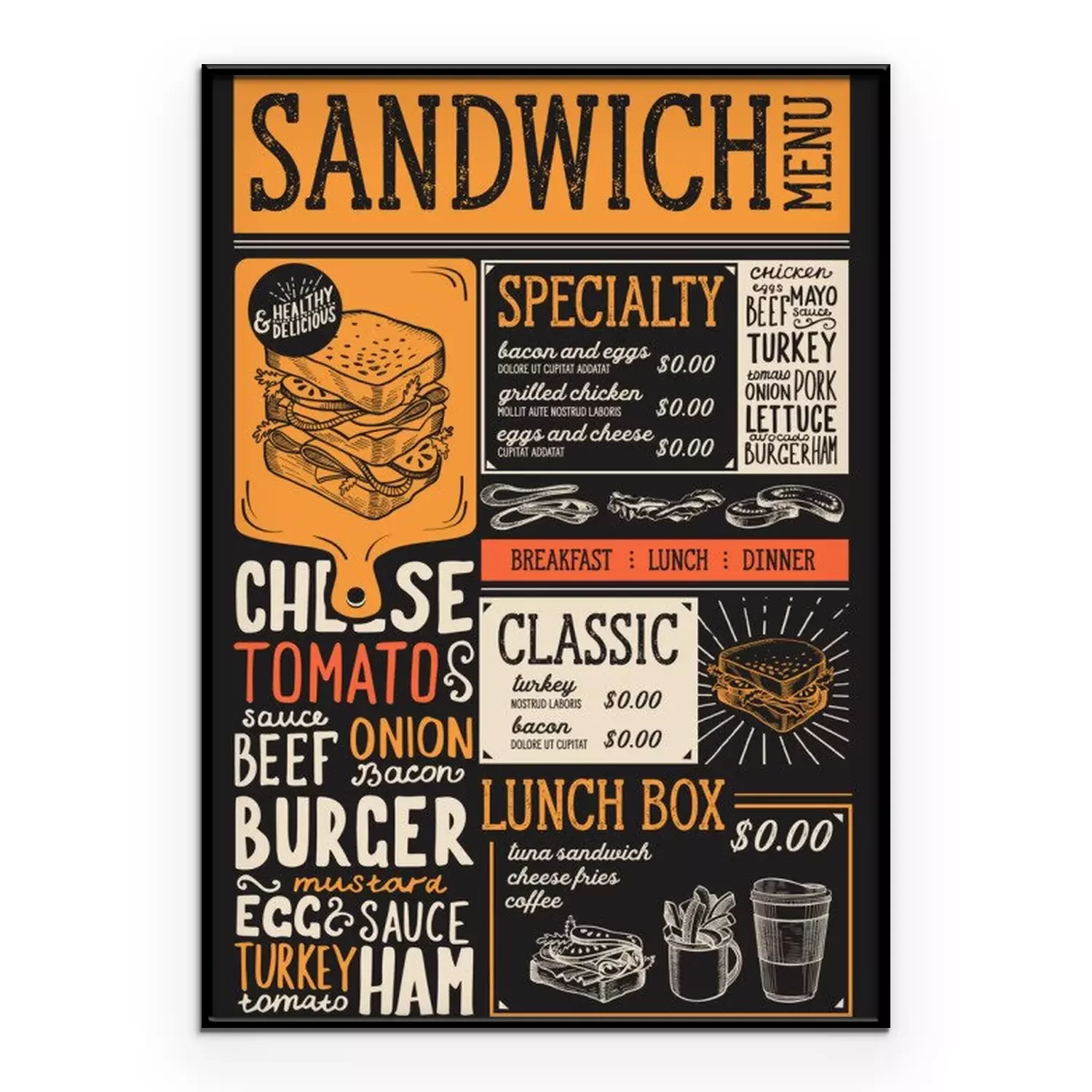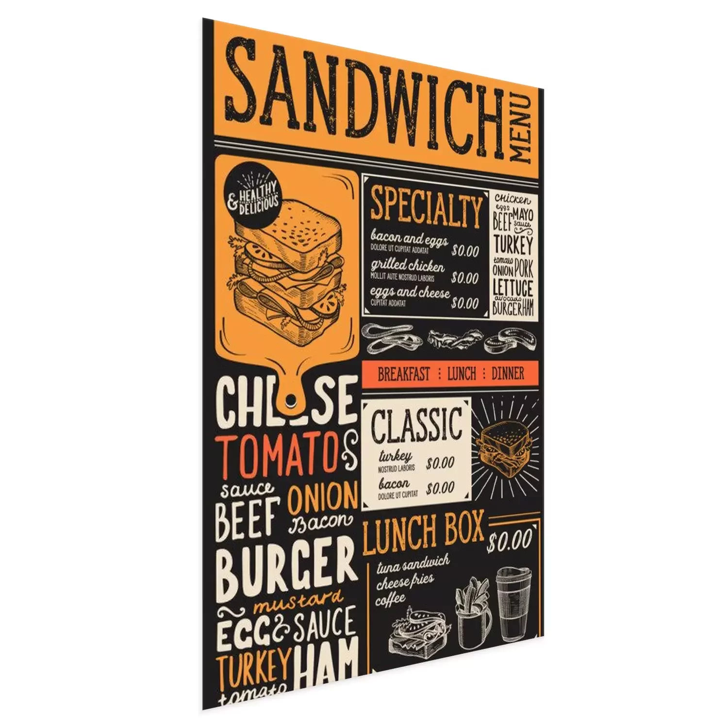 Poster: Retro-Menü in einem Restaurant