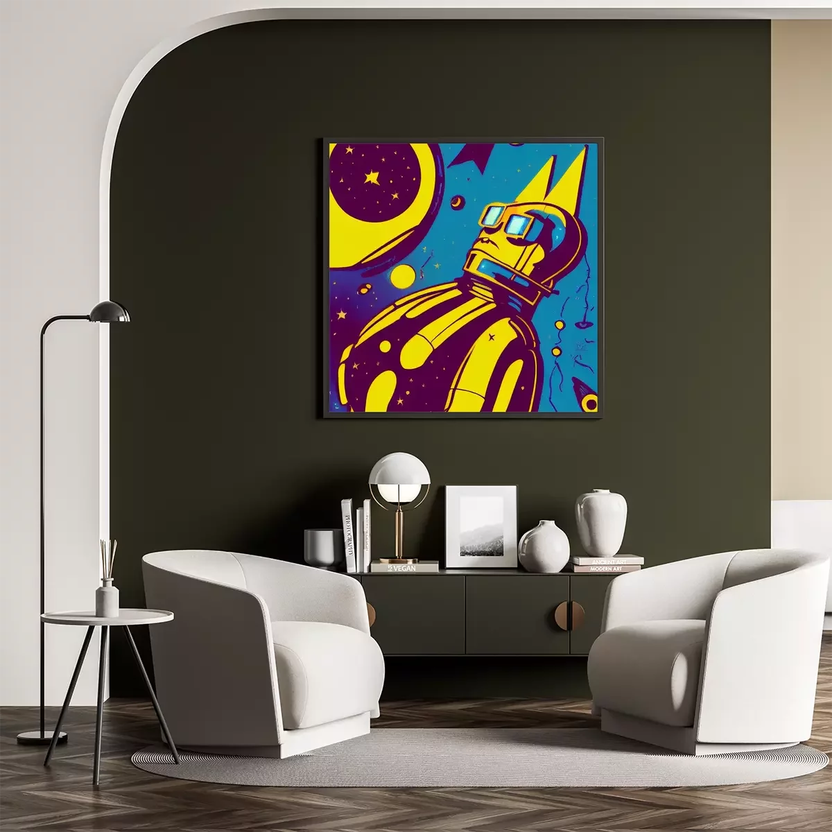 Poster: Retro-Roboter im Weltraum