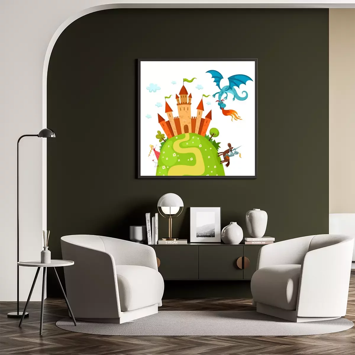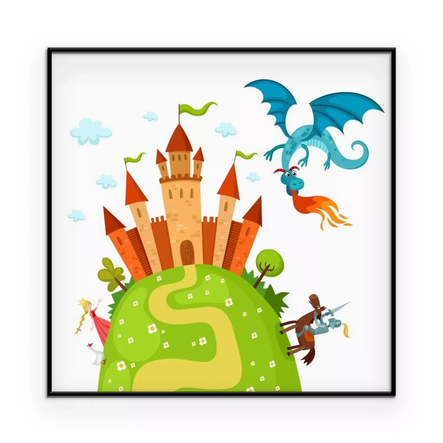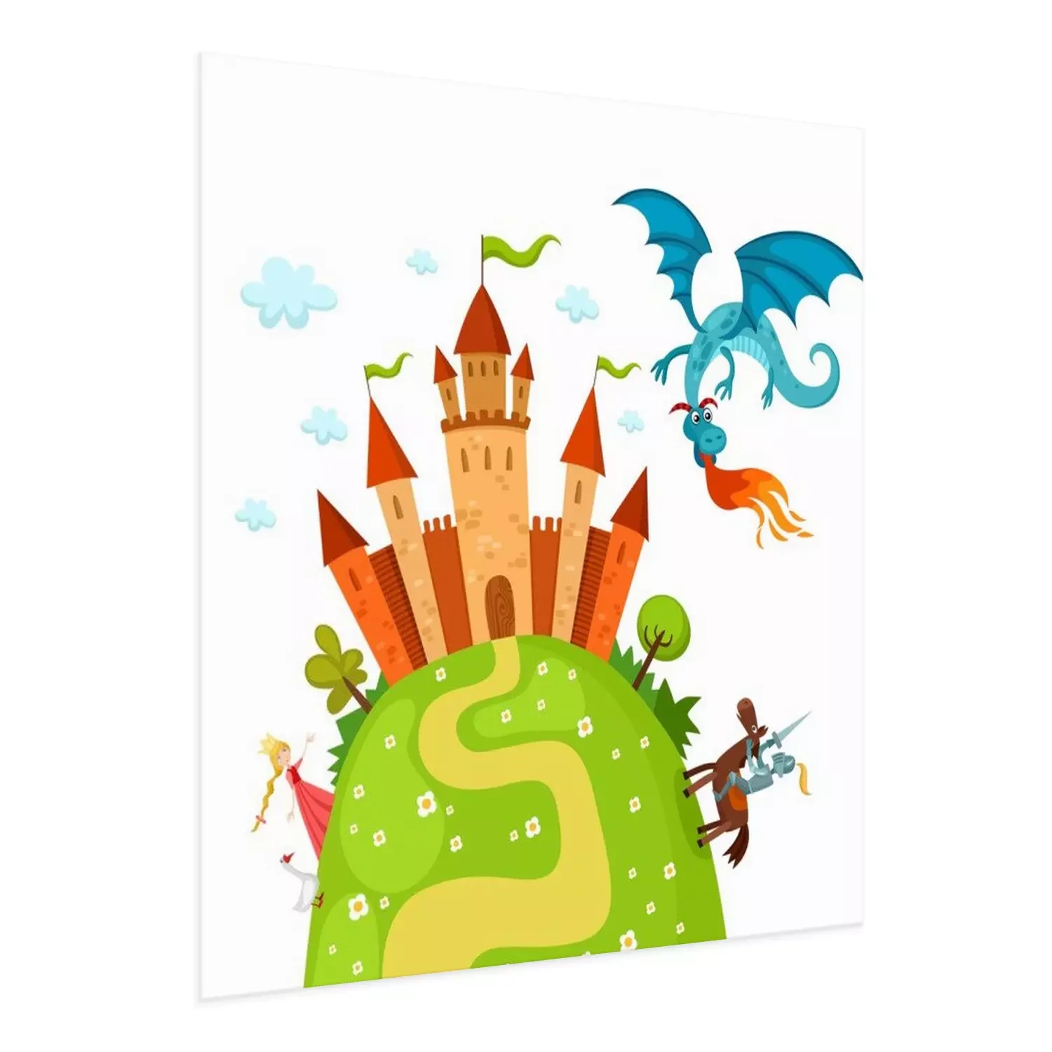 Poster: Ritter, der eine Prinzessin vor einem Drachen rettet