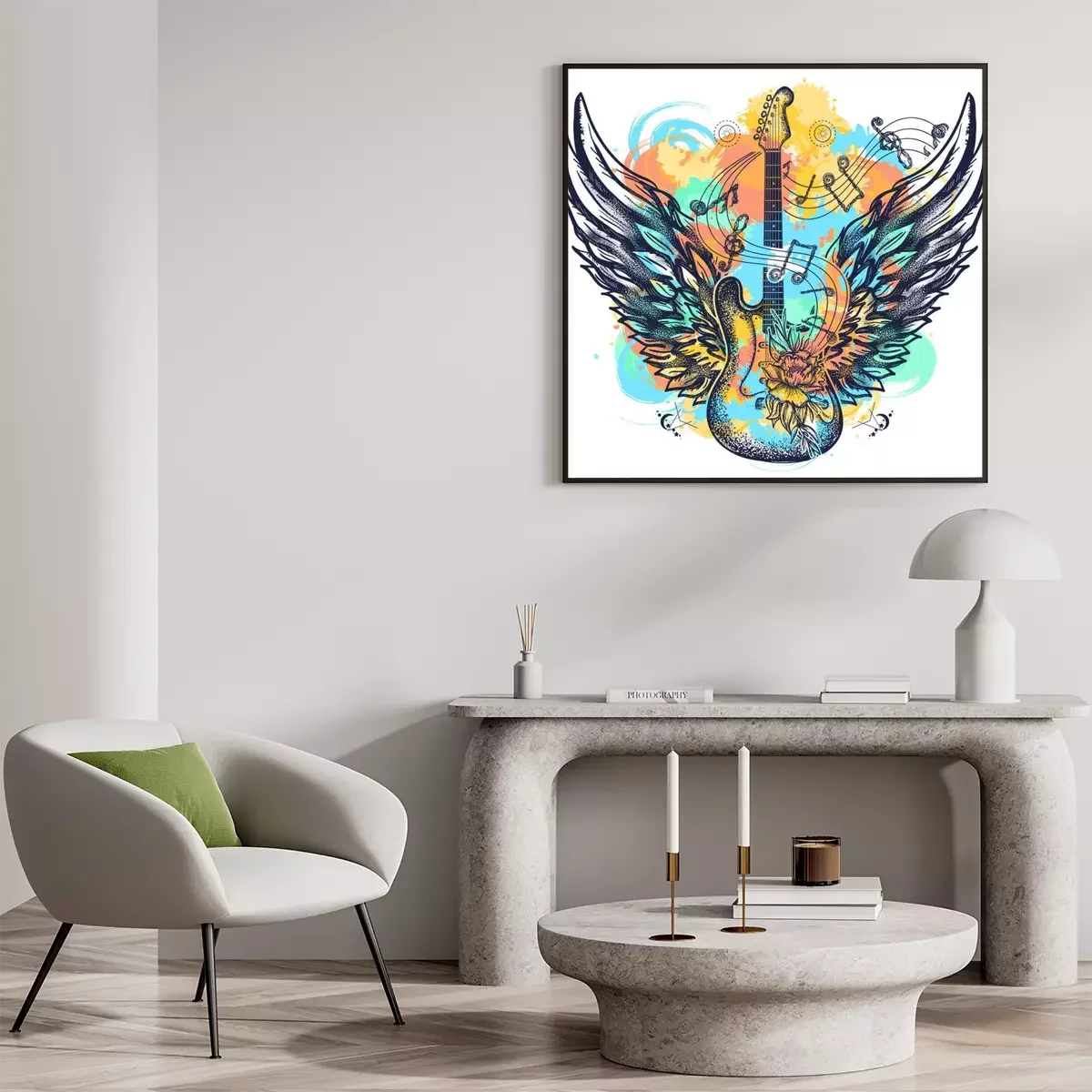 Poster Rock und geflügelte Gitarre