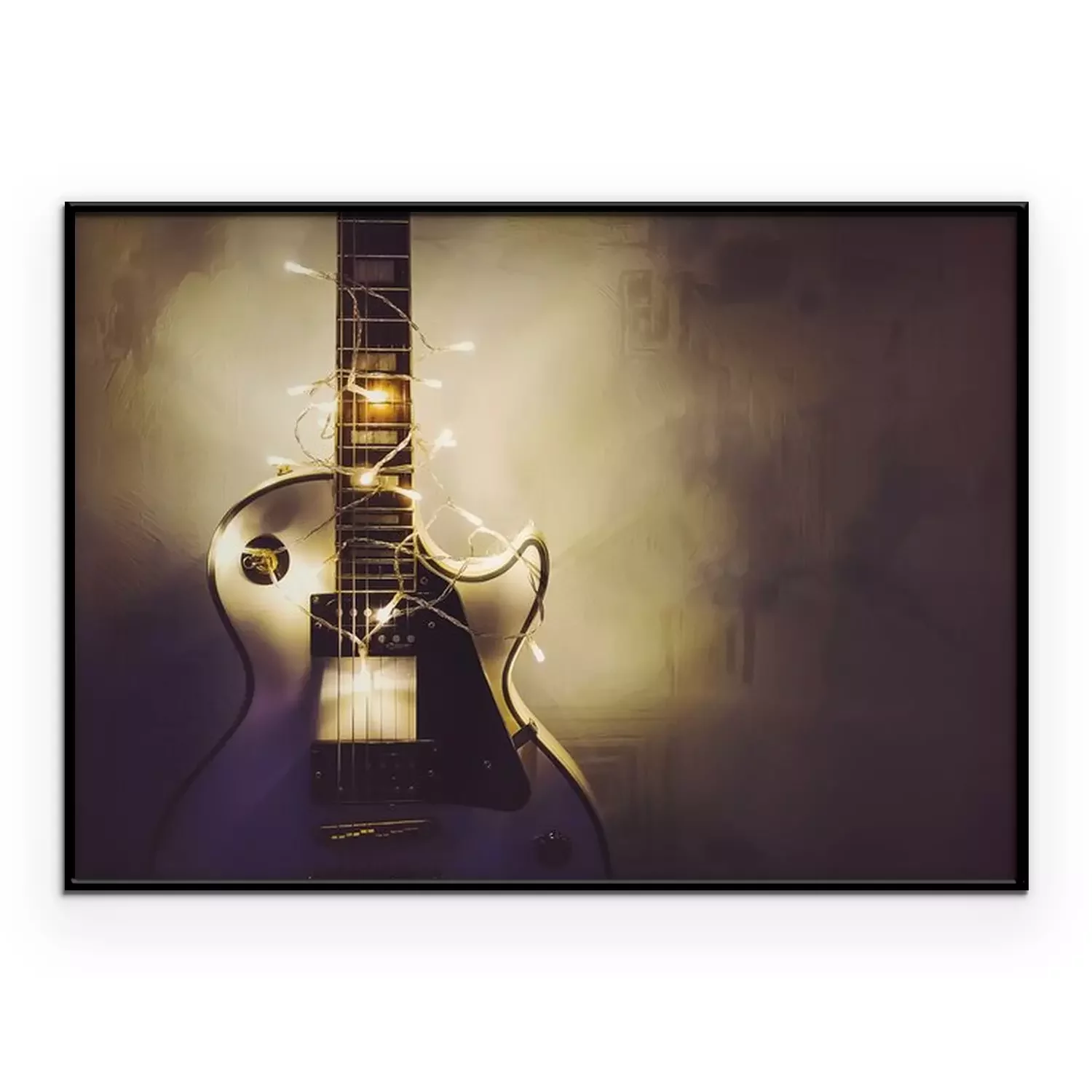 Poster Rockgitarre und Weihnachtsbeleuchtung