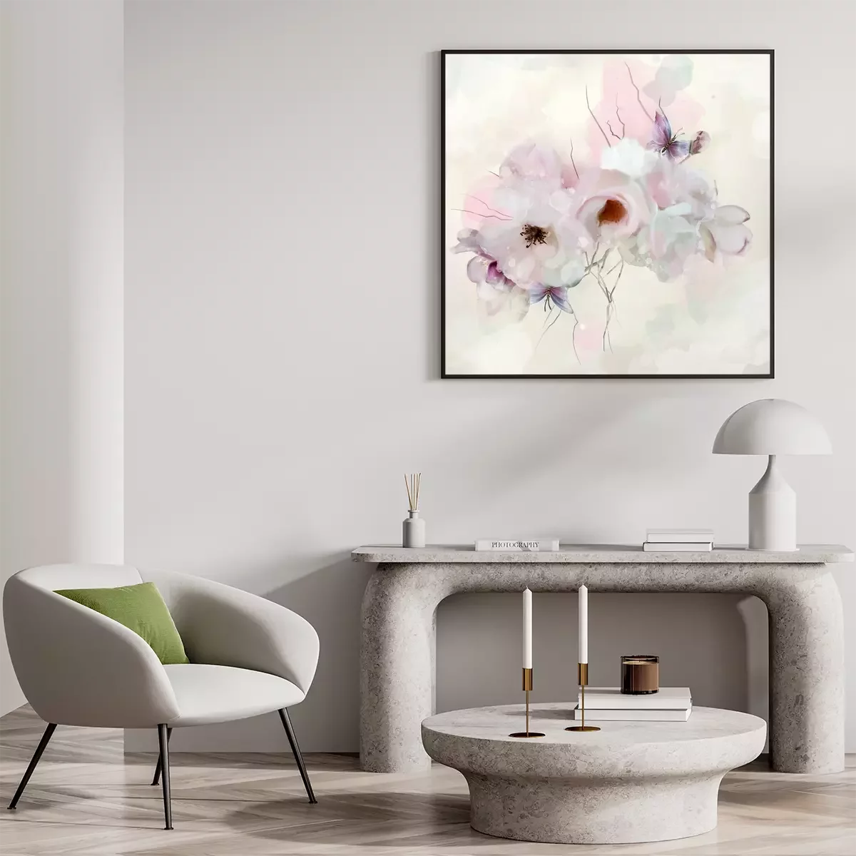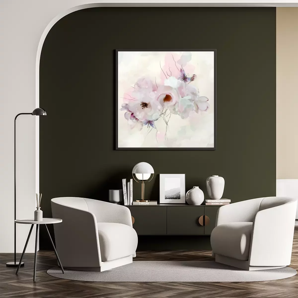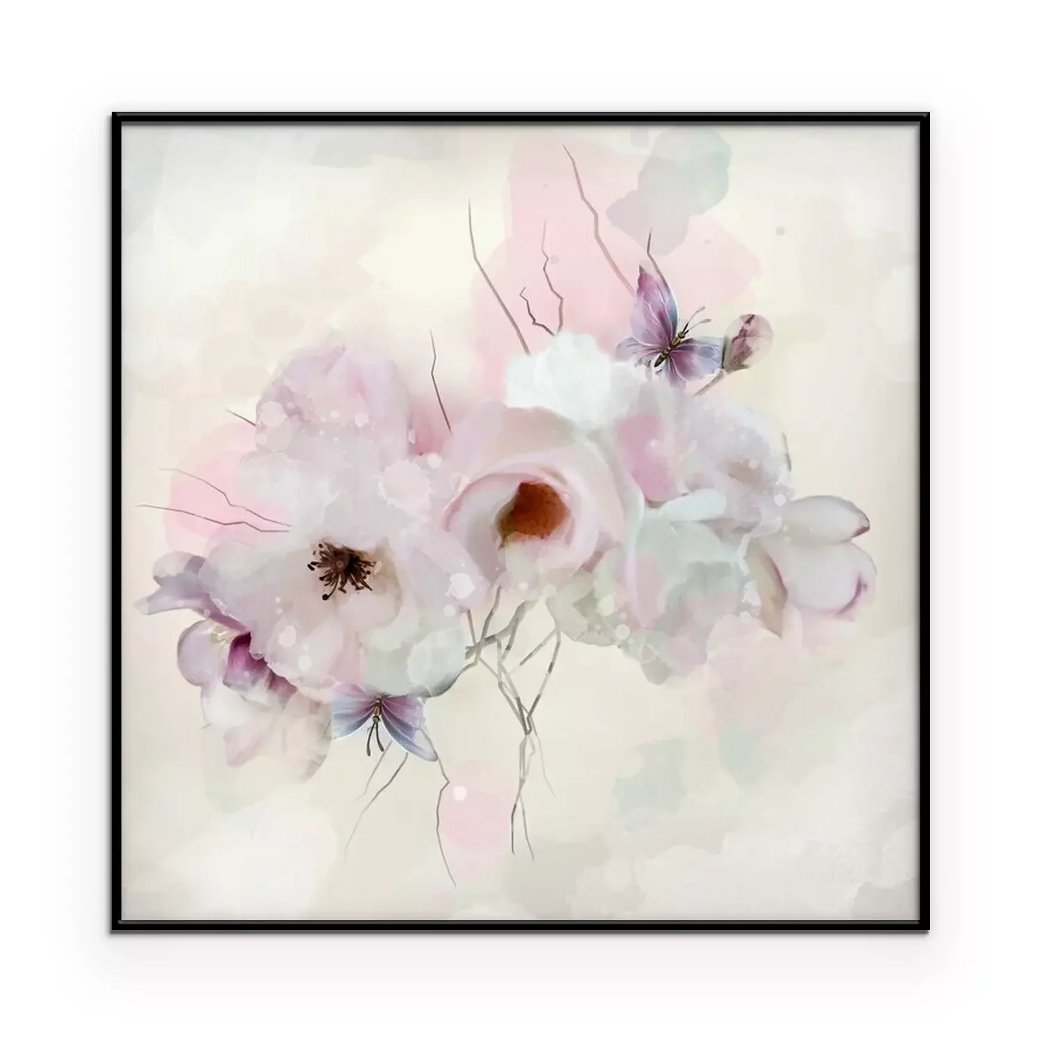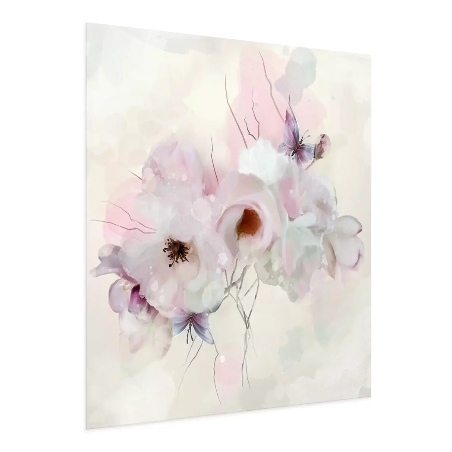 Poster: Romantische weiße Rosen und Schmetterling