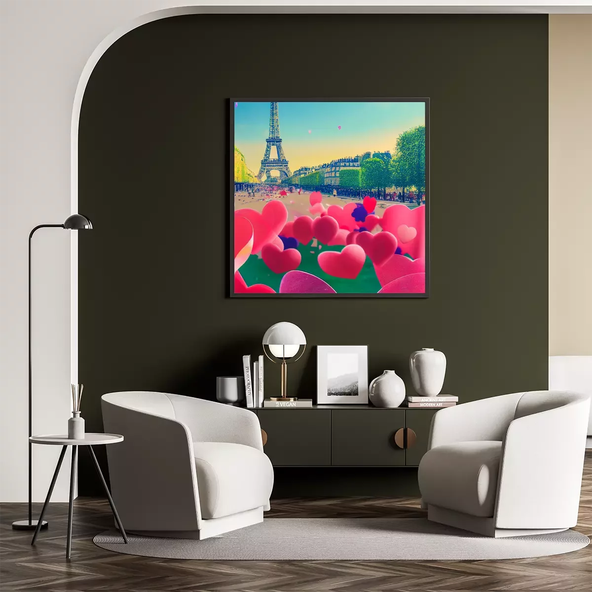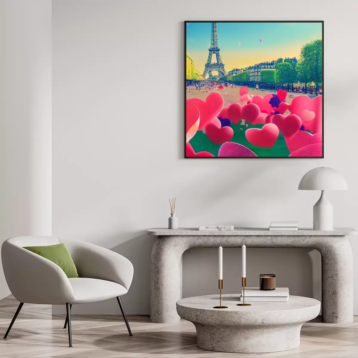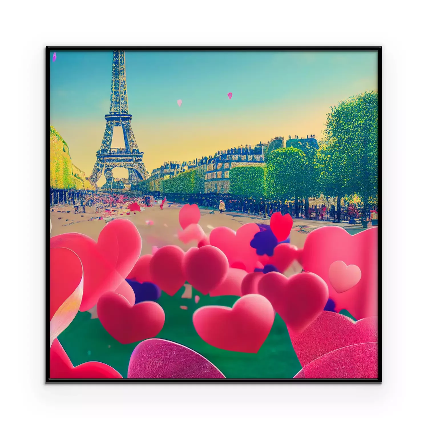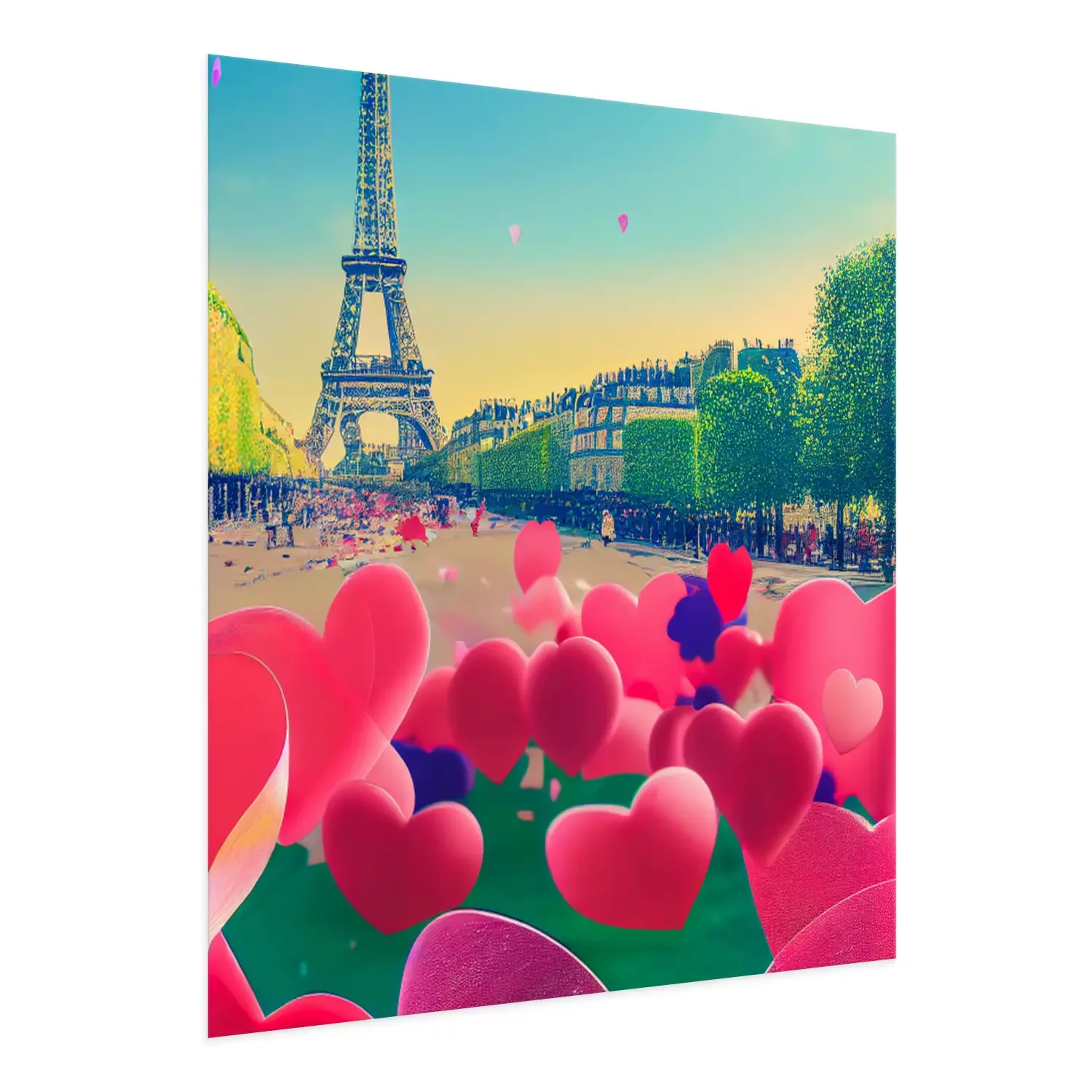 Poster: Romantisches Paris mit Herzen