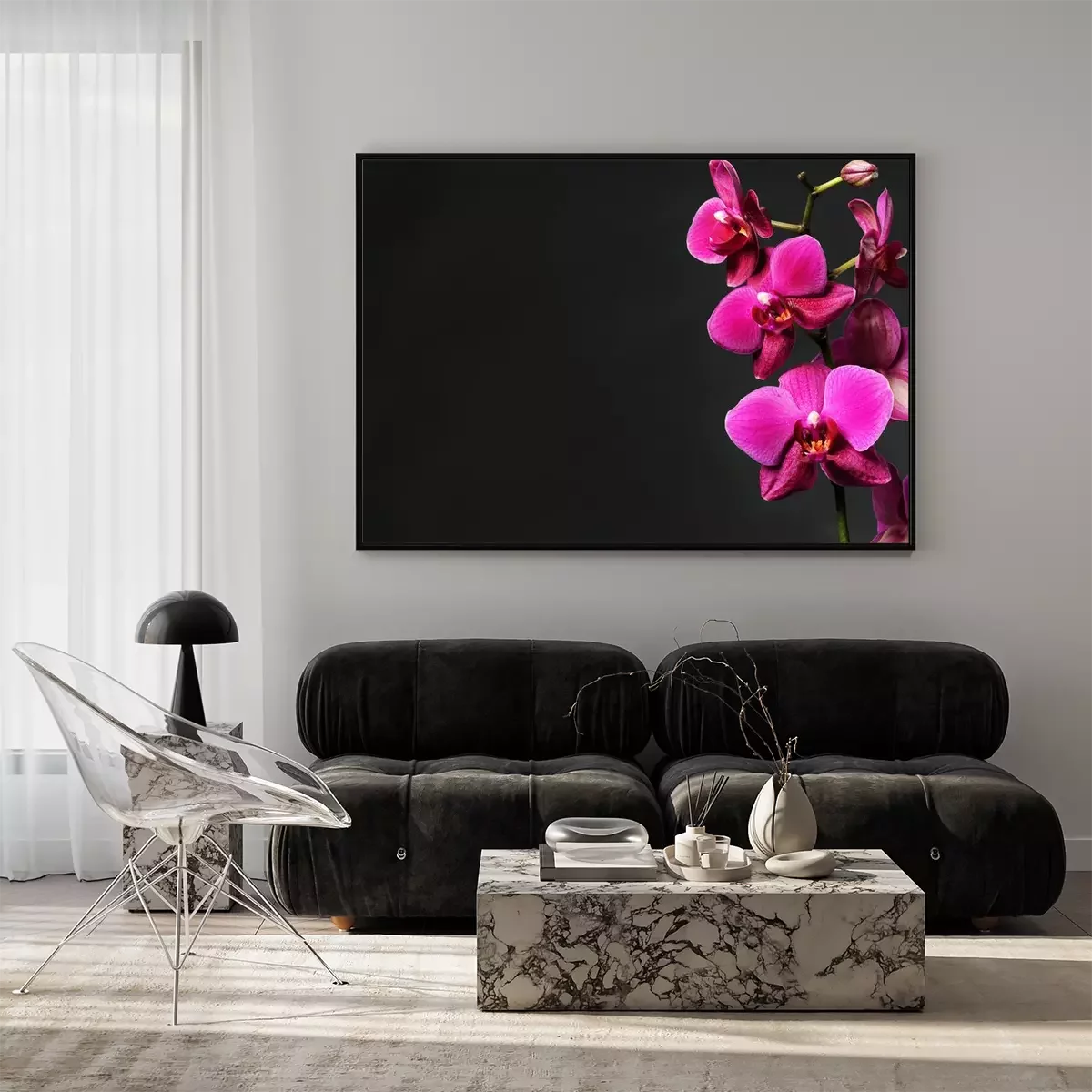 Modische Orchideen auf grauem Hintergrund