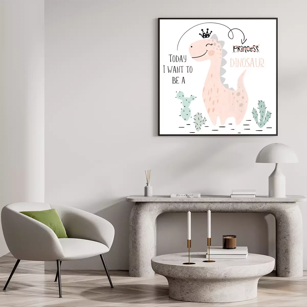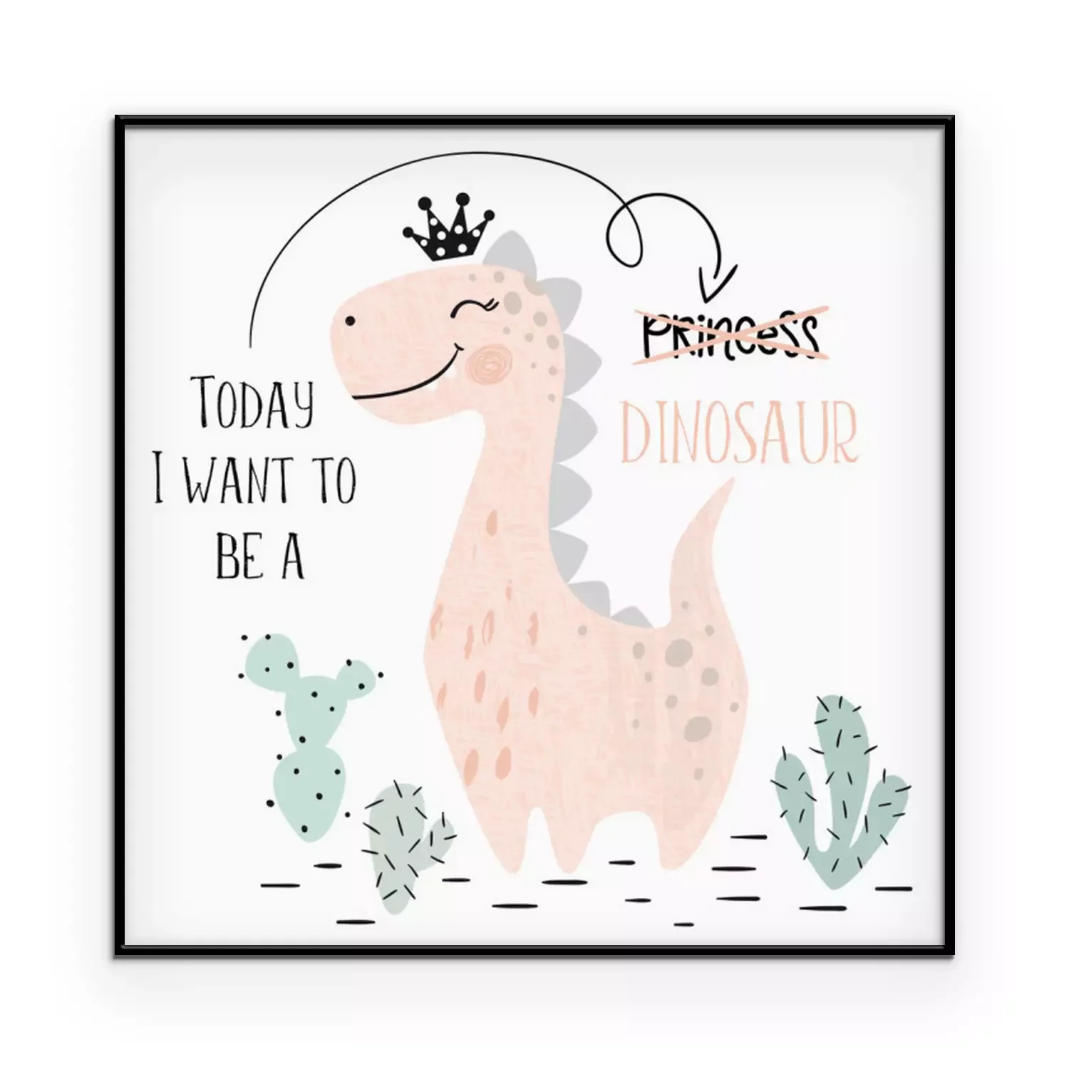 Poster: Rosa Dinosaurier und grüne Kakteen