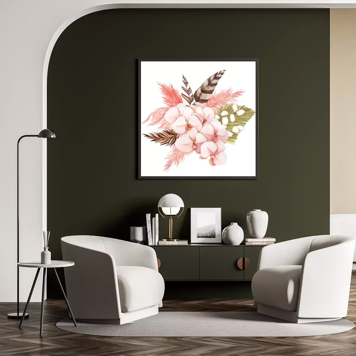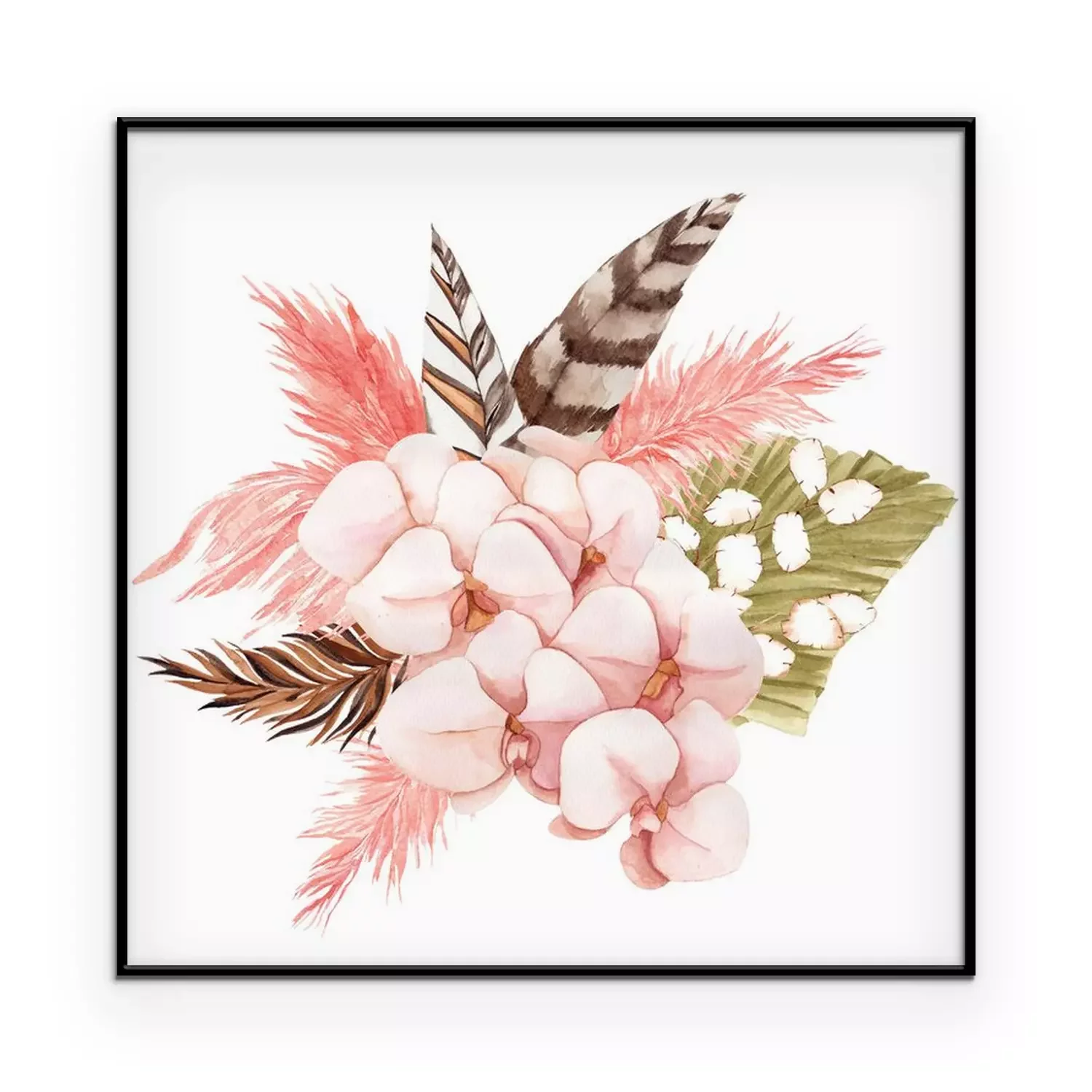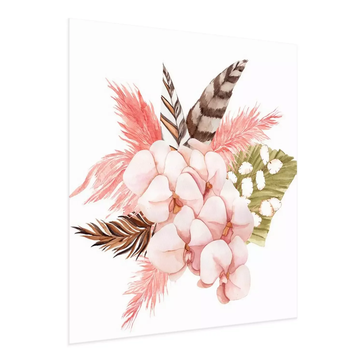Poster: Rosa Orchidee und Boho-Federn